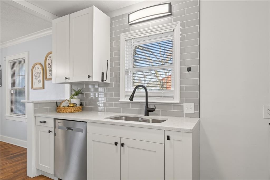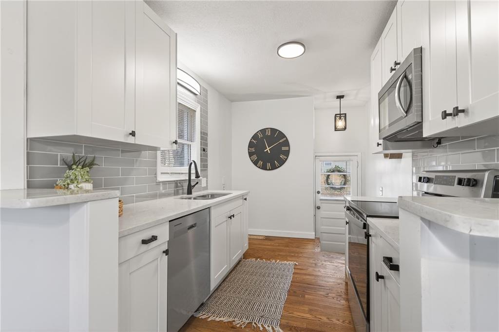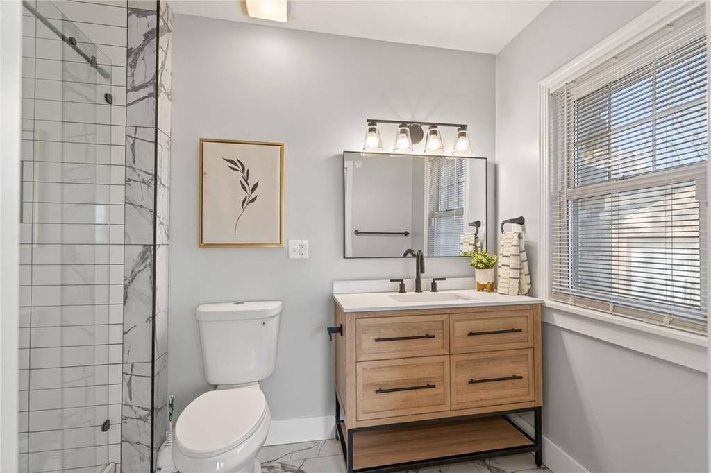 What a truly charming, one-of-a-kind home—definitely not your typical cookie-cutter property. Completely remodeled from top to bottom, this residence is perfect for buyers seeking something unique. The stone exterior, inviting open porch, and spacious treed lot set the tone before you even step inside. Natural light fills the home, highlighting the hardwood floors and detailed crown molding. The kitchen has been fully updated with new cabinetry, quartz countertops, a stylish tile backsplash, and new stainless steel appliances. Both bathrooms feature new vanities, updated shower tile, fresh flooring, and modern lighting. Newer Roof, AC and furnace installed on the main level, and a newer heat pump for the upper level. The hot water heater, plumbing fixtures, and lighting throughout the home are all newer. Laundry hookups are available on both the main level and in the basement. A detached two-car garage completes the property. Enjoy!