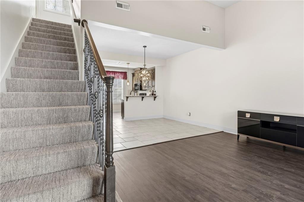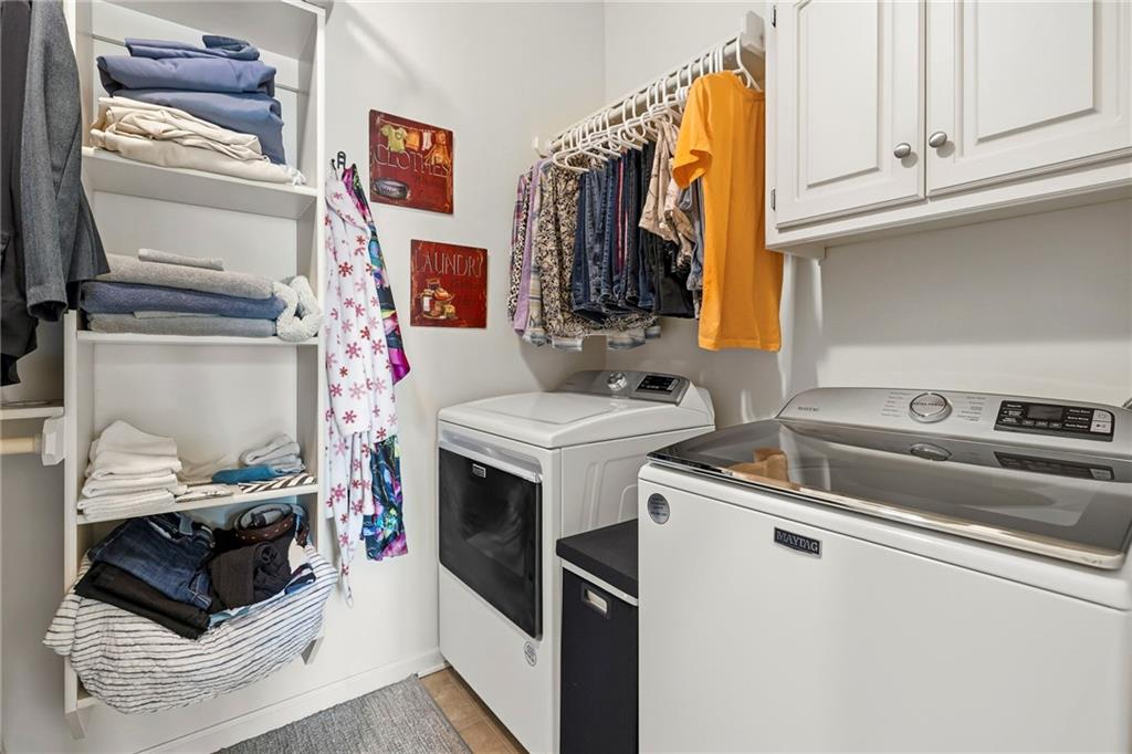 Beautifully cared-for townhome in the Villas of Parkside! So many updates have already been done: fresh interior and exterior paint, granite kitchen countertops, updated light and plumbing fixtures, luxury vinyl wood flooring in the great room, designer stair carpet, new bedroom carpet and even a recently replaced roof. (Check the supplements for the full list of improvements!) Light-filled main level offers a inviting great room with soaring ceiling seamlessly flowing into the dining area and kitchen. Delightful kitchen features timeless stained cabinetry, granite countertops and an eat-in peninsula that’s ideal for casual meals, morning coffee or catching up while dinner’s cooking and ALL APPLIANCES STAY! Convenient half bath—perfect for guests finishes the main level. Upstairs, find two spacious bedrooms—both with walk-in closets. Primary suite is a true retreat with a soaking tub, separate shower, double vanity and the laundry conveniently located right in the closet (no hauling baskets up and down stairs). Oversized garage includes a dedicated storage room, giving you plenty of extra space to stay organized. And the best part? The HOA really does cover it all—lawn care, sprinklers and water, trash and recycling, snow removal, exterior maintenance, plus roof repair and replacement. Low-maintenance living at its best! All of this in a fantastic location just minutes from shopping, parks, dining and easy major highway access! This move-in-ready villa offers comfort, style and convenience without the hassle. WELCOME HOME!