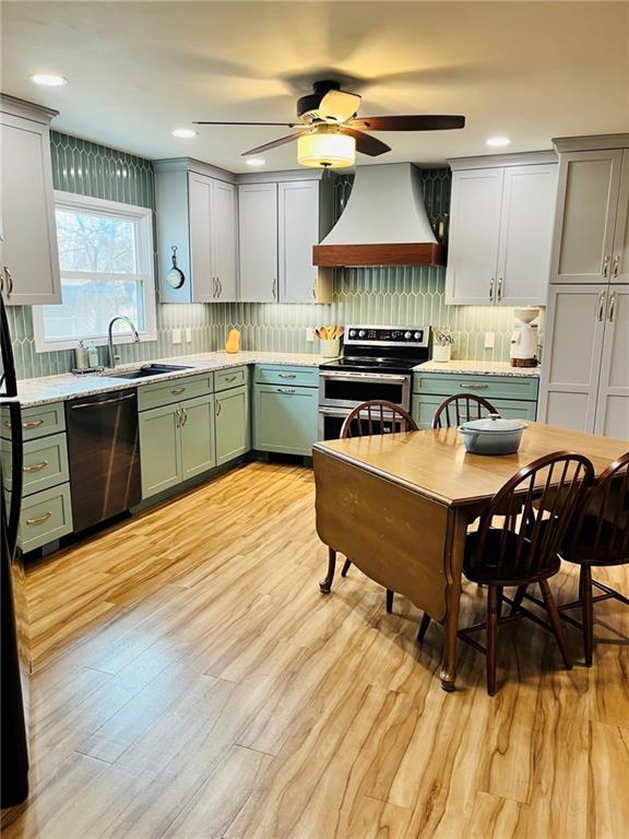 Gorgeous 4 bedroom, 2 bathroom, and 2 living room home maintains original charm with many updates. The chef’s kitchen includes quartz countertops, double oven, pull-out chest freezer, and so much space. New floors throughout the common living spaces add a bright, warm, easy to clean touch. The master bedroom is large and has lots of closet space and an updated adjoining bathroom. The two-car garage is very spacious. The property includes several fruiting plants including pear, cherry, raspberry, asparagus, strawberry and more. The front features a beautiful deck with a ramp for inclusive living. The backyard has a concrete patio, playground, detached shed, mature shade trees, and a chicken coop. Newer HVAC system, hot water heater, roof and appliances. This home is warm, inviting, functional, and move-in ready!