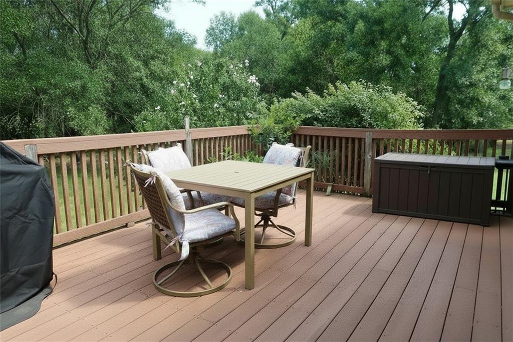 Rare to the current market offerings is this five bedroom, three and half bath home sitting on a manageable 1.38 acres. The main floor offers an open living, dining, kitchen combo that serves entertaining well. Three bedrooms with two and half bathrooms are down the hall, including the master suite. Open the sliding door off the dining room and enjoy the wildlife on the raised deck overlooking your property. Entering from the three-car garage is your combination laundry/mudroom. Driveway has been stained and sealed to provide longevity and curb appeal. The basement includes 2 bedrooms and a full bathroom. Finished areas include a recent application of Polycuramine for easy maintenance flooring. The open area includes a wet bar for additional entertainment environment. This established property gives you room for privacy and inclusion with great neighbors