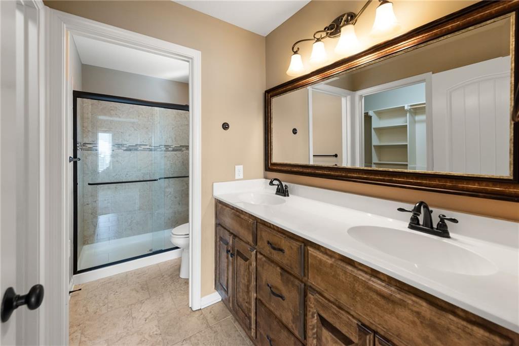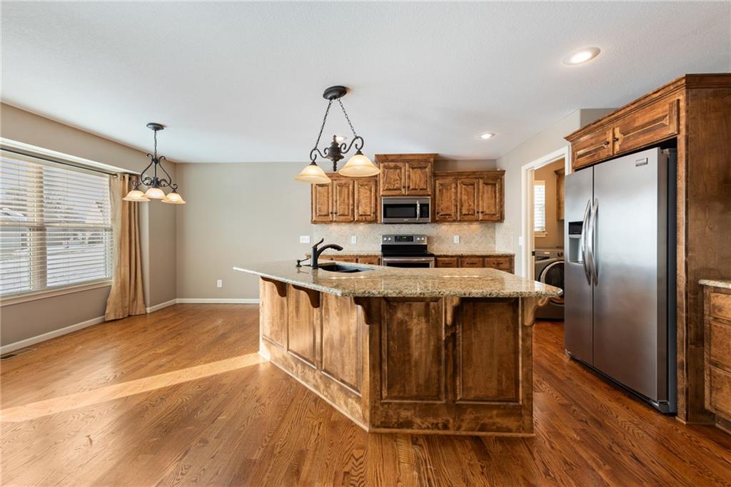 Welcome home to this beautifully maintained, one-owner ranch offering space, style, and low-maintenance living in a desirable maintenance-provided community. With 4 bedrooms, 3 full baths, and a finished lower level, this move-in ready home delivers exceptional value at $429,900. The open floor plan is designed for comfortable living and effortless entertaining. Gleaming hardwood floors span the entry, great room, kitchen, and breakfast area. A striking stone fireplace anchors the light-filled great room, which flows seamlessly into the kitchen featuring granite countertops, center island, walk-in pantry, stainless steel appliances (all stay), and abundant cabinetry and workspace. Step onto the covered deck overlooking a lush backyard with added privacy and no neighbor to one side — the perfect setting for relaxing evenings or weekend gatherings. The spacious primary suite offers a private retreat with dual vanities, custom shower, and an oversized walk-in closet. A second bedroom and full bath are conveniently located on the main level, along with laundry for true one-level living. The finished lower level expands your options with a large recreation room, two generously sized bedrooms, full bath, and substantial storage — ideal for guests, work-from-home flexibility, or multi-generational living. Enjoy lower utility costs thanks to the 96% high-efficiency furnace and 14 SEER heat pump. Located in the Liberty School District just minutes from shopping, dining, Historic Downtown Liberty, and easy highway access for a quick commute anywhere in the metro. Space, efficiency, privacy, and maintenance-free living — this one checks every box.