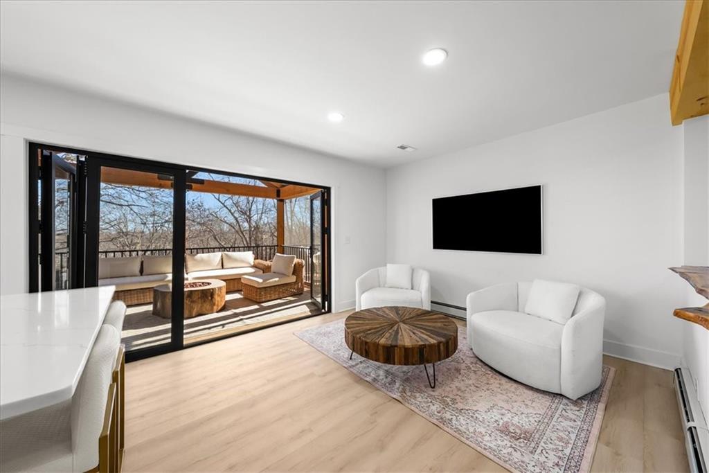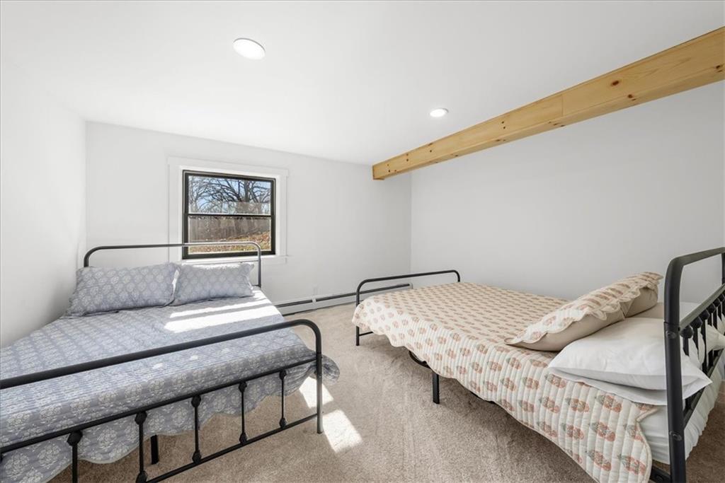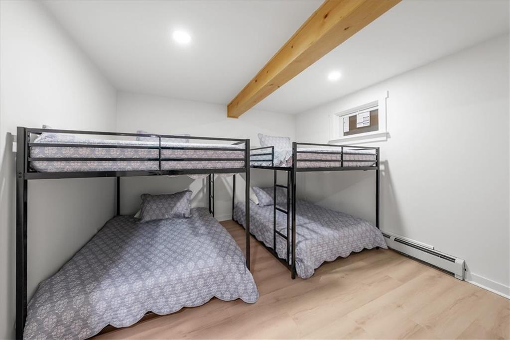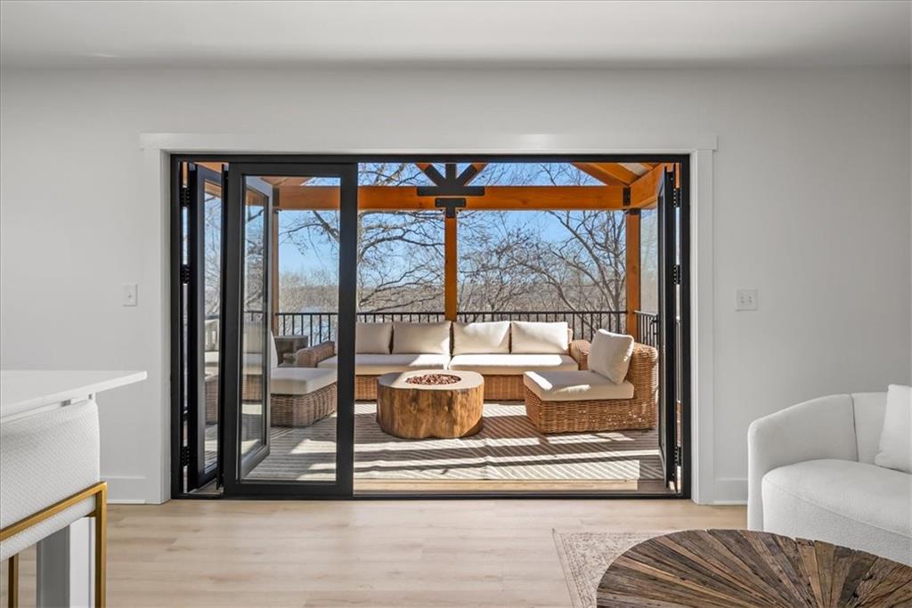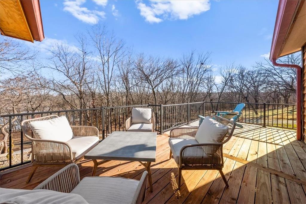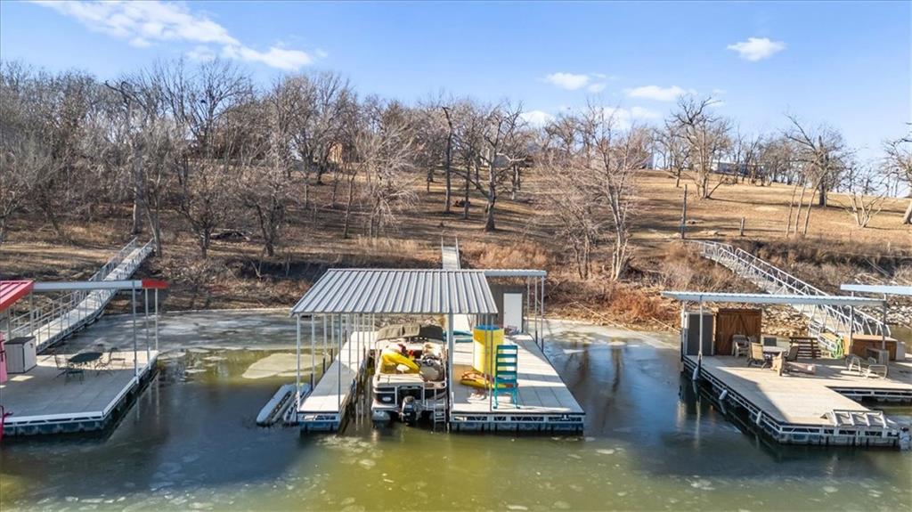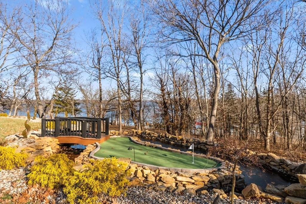 Welcome to your own slice of paradise at the lake! This stunning ranch-style lakefront home at Lake Pomona offers 5 bedrooms and 4 bathrooms, and has been meticulously updated and lovingly maintained. A marble-tiled entry welcomes you into an expansive eat-in kitchen featuring abundant prep space, extensive countertops, and a large center island with seating for four—perfect for gathering with family and friends. Just off the kitchen, a sitting room with louvered folding patio doors opens to a three-season room and onto a renovated deck overlooking the beautifully maintained grounds, complete with a putting green and tranquil pond. The formal dining room is conveniently located just steps away, making entertaining effortless. The main level includes a spacious primary en-suite retreat with a soaking tub, separate shower, and generous vanity. Two additional bedrooms and a full bath with double sinks and a walk-in shower complete the main floor. The finished lower level offers even more living space with a large family room, two additional bedrooms—one currently designed as a bunk room that sleeps eight—plus a full bath and laundry area. Step outside from the lower level to enjoy the fire pit and pathway leading directly to the double dock. Designed for making memories, this exceptional lakefront property is the perfect weekend escape for large families and year-round enjoyment.