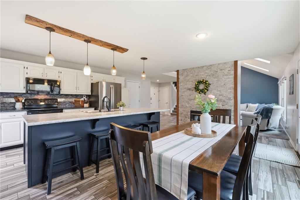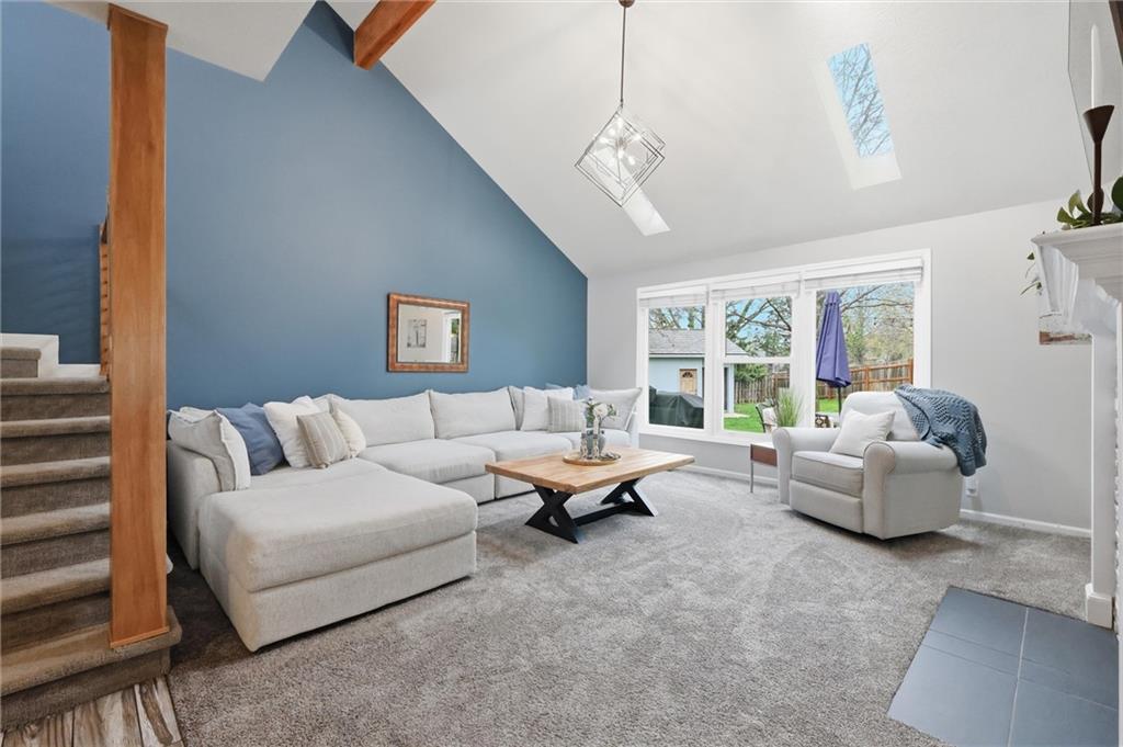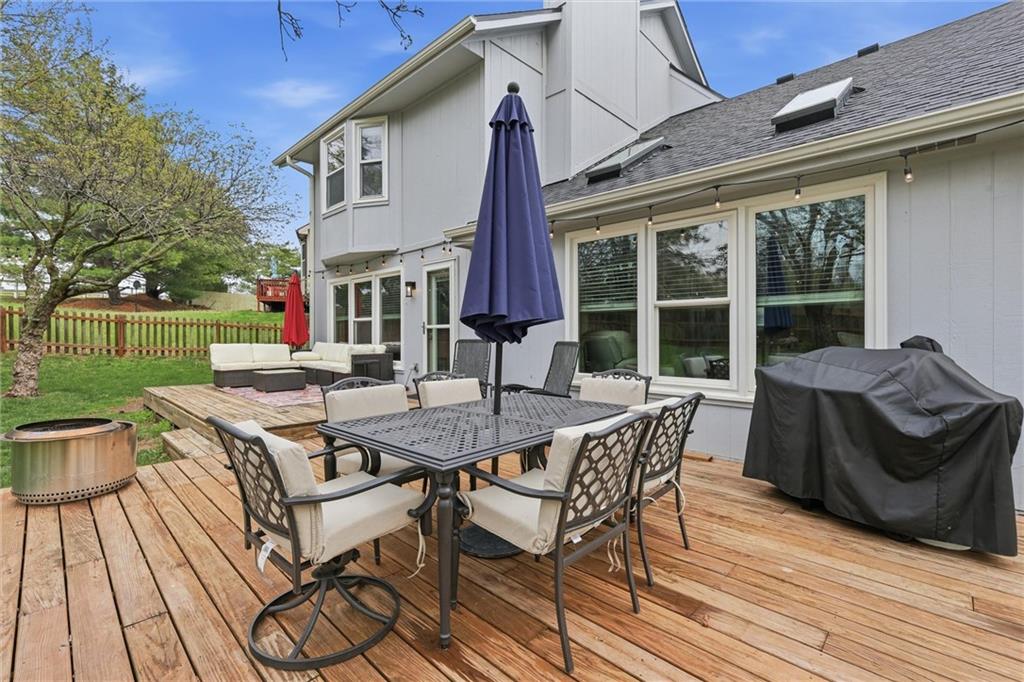 Beautifully updated two-story in popular Frenchmen's Creek! The French Country inspired exterior makes for impressive curb appeal as you drive up the quiet cul-de-sac. Open floor plan with vaulted ceilings, wood beams, see through fireplace, skylights and a wall of windows. Dine formally at the table or casually around the large kitchen island. Bedroom level has a bonus loft space, guest bath with tub, and a spacious primary room with built-ins, fireplace insert, vaulted tray ceiling and walk in closet. Sprawling backyard with a wood deck, fence and a versatile storage shed complete with electricity and a skylight, ideal for a workshop, hobby space, or extra storage. The unfinished basement allows for plenty of storage and is ready to be finished off for additional living space. Great value in a tremendous location!