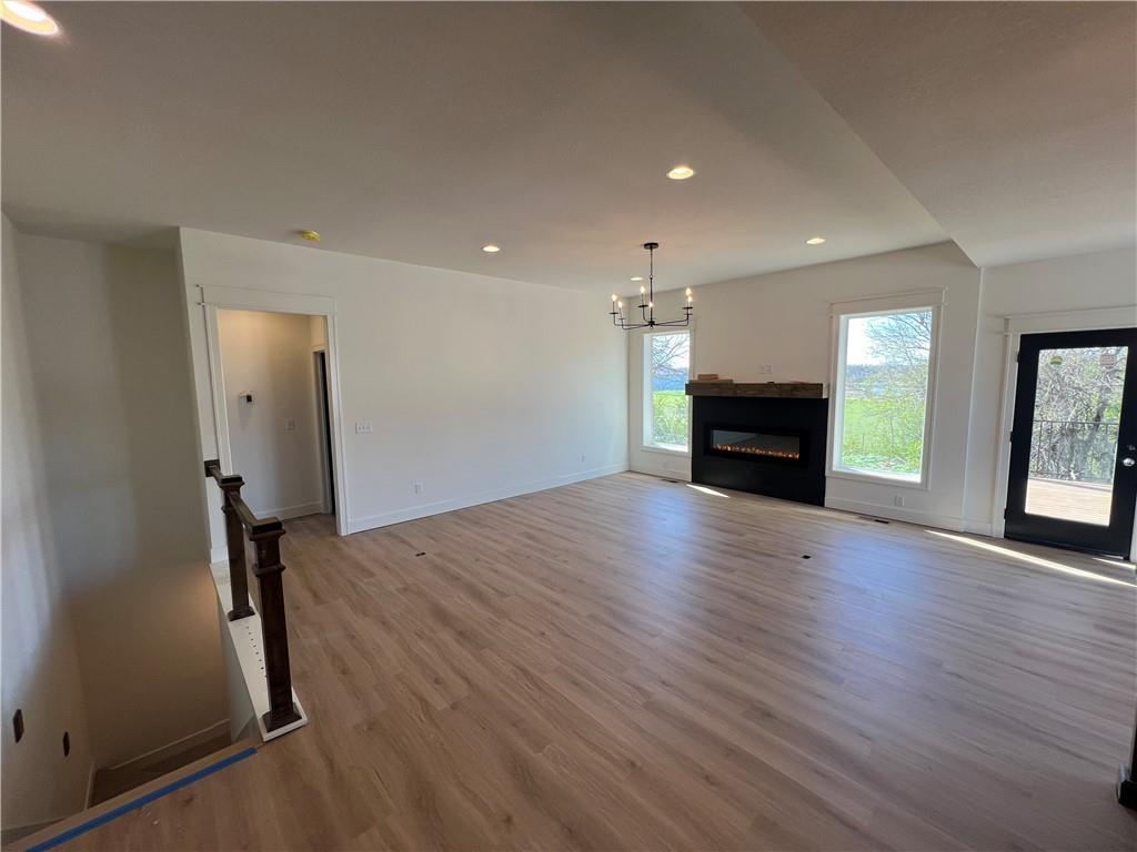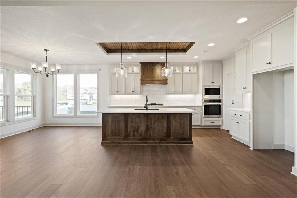 ***ONLY A FEW MISC ITEMS REMAIN ON THE INSIDE, STILL NEED TO POUR THE DRIVEWAY AND LAY SOD AS OF 4/23*** Gorgeous new home in Fox’s Den backing to green space with scenic views of Peculiar Lake! Enjoy true main-level living in this 4-bedroom, 3-bath reverse 1.5-story featuring custom cabinetry, luxury vinyl plank flooring, a spacious kitchen island, and granite countertops throughout. The primary suite boasts a walk-in tile shower, and the walk-in closet conveniently connects to the laundry room. Functional mudroom just off the laundry and garage. The finished daylight lower level offers a large family room with wet bar, two additional bedrooms, and a full bath—perfect for entertaining or guests. Additional highlights include a high efficiency hvac system, 3-car garage, covered deck with stairs to a patio, and a 1-year builder warranty. owner/agent. Pictures are of previously sold model.