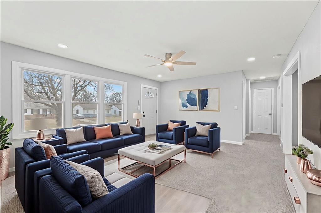 ***Motivated Seller is willing to offer interest rate buy down with acceptable offer*** Completely renovated from top to bottom, this stunning Swope Park ranch is truly move-in ready with everything brand new throughout. Enter from the new front deck and you will see The beautifully redesigned kitchen features stylish shaker cabinetry, quartz countertops, and a custom tile backsplash, creating a modern and inviting space perfect for everyday living and entertaining. This spacious home offers an incredible layout with two large primary suites, each designed for comfort and privacy. You’ll also find four fully updated bathrooms, all showcasing contemporary finishes and thoughtful design. New luxury vinyl plank flooring, plush carpet, and fresh interior and exterior paint provide a clean, modern feel from the moment you walk in. The finished lower level expands your living space even further with a generous recreation room—ideal for game days, movie nights, or gatherings—plus an additional full bathroom for added convenience. With its extensive updates, flexible living spaces, and exceptional value for the price, this beautifully remodeled home offers an incredible amount of space and style in a prime Swope Park location.