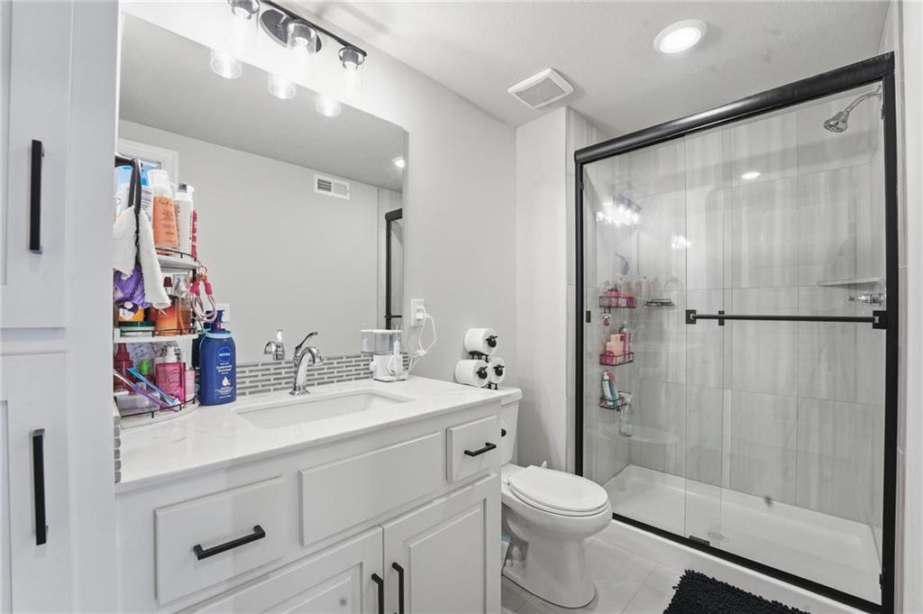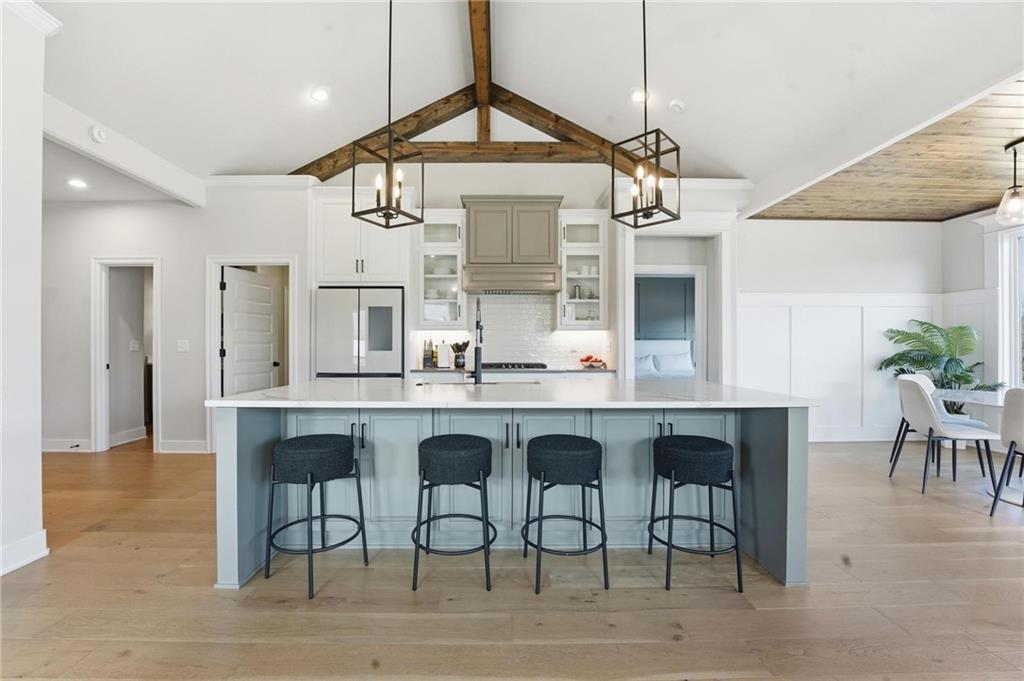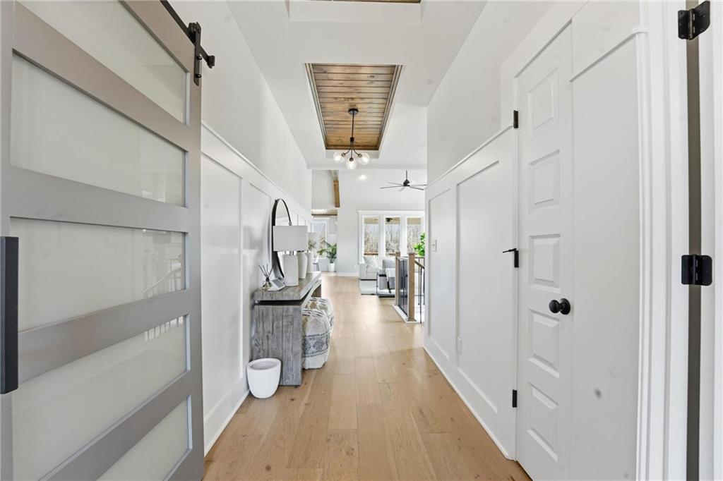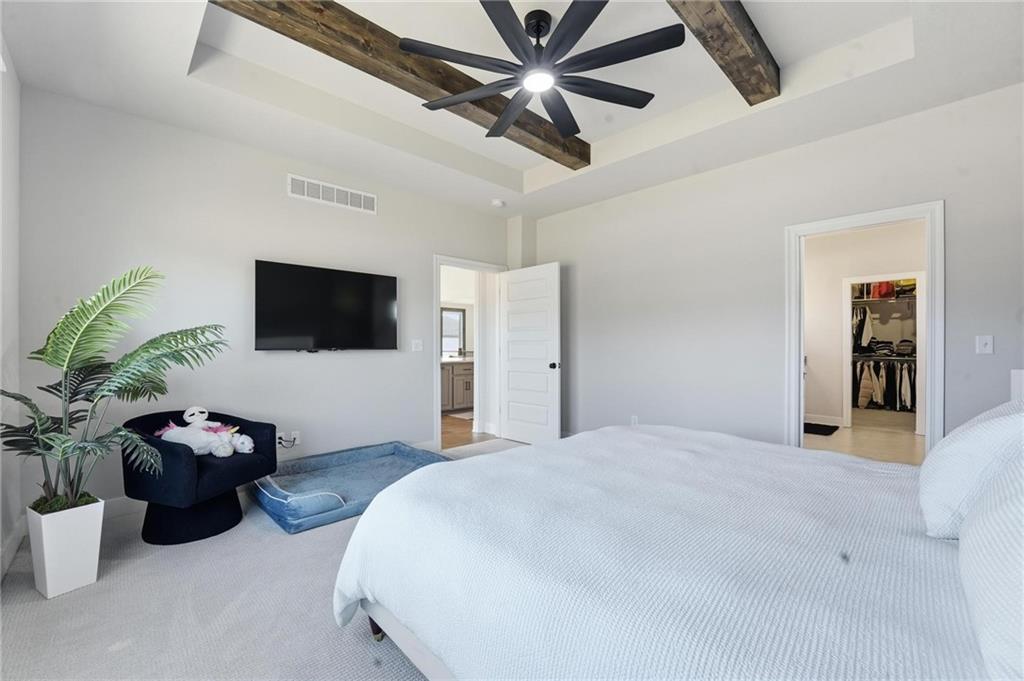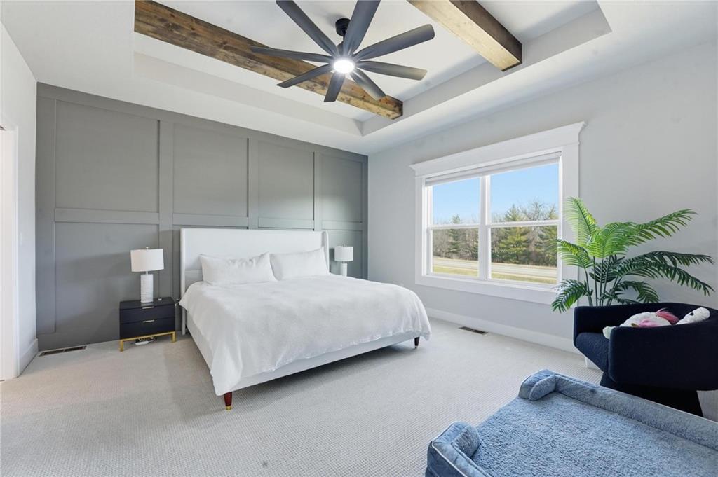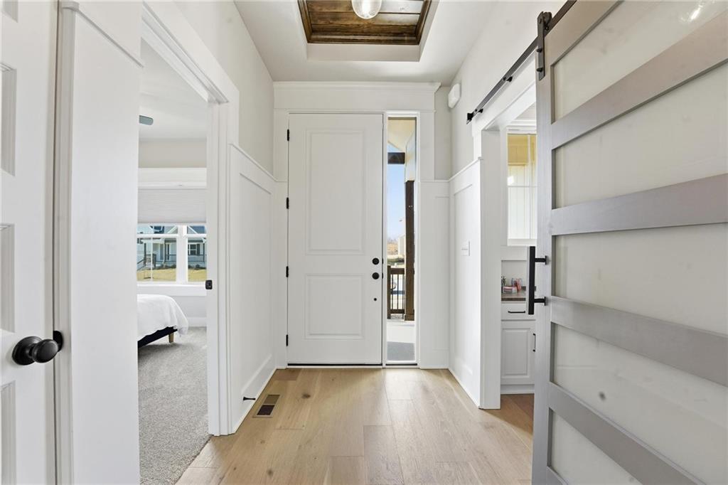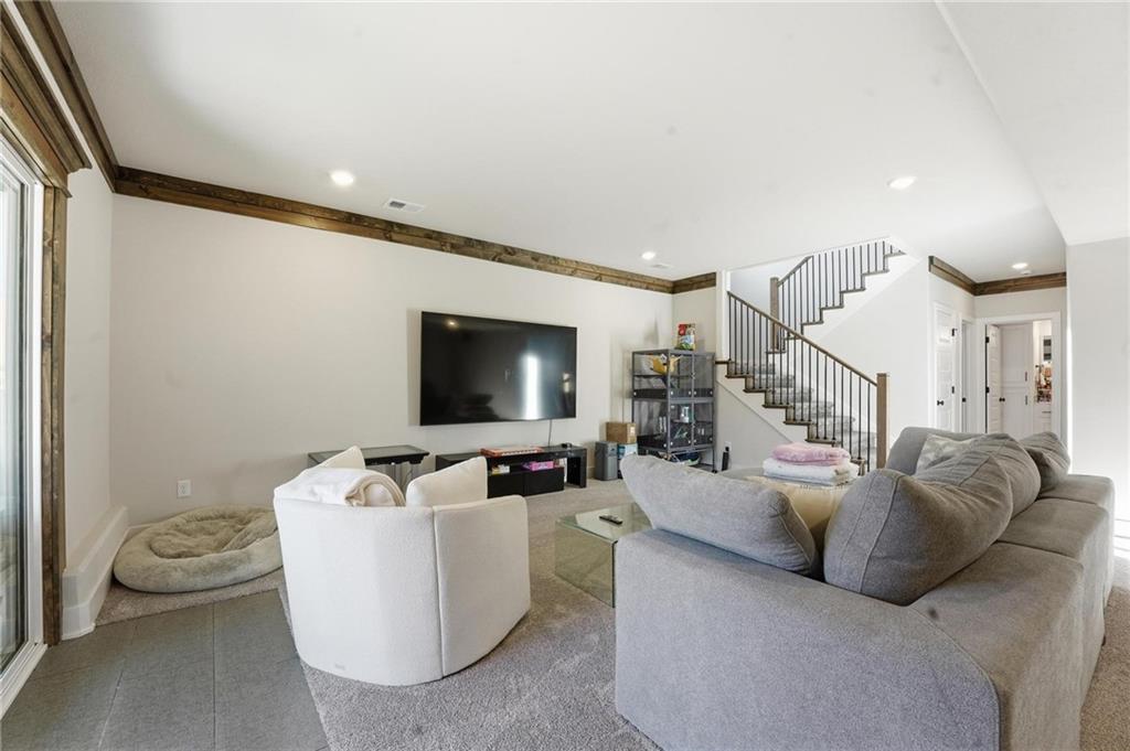 Better than new in this barely lived in TruMark Custom Home... This is the Kyle IV with loads of beautiful finishes and upgrades! No need to wait for new... deck steps installed, custom blinds are installed and home is fully furnished (if you desire) and ready to move into! The layout is perfect! Floorplan is open! Finishes are beautiful! Meticulously maintained, front pocket office with built-in shelving. Front, spacious bedroom flooded with daylight and it's own full bathroom with beautiful tile finishes and quartz countertops - Perfect for a 2nd main level primary suite! Greeted with an oversized welcome entryway. Unique features, including wood beams, wood ceiling finishes. floor-to-ceiling stone fireplace, custom blinds, hardwood floors, nice lighting and hardware and more! The TVs stay for convenience. Kitchen and dining areas are perfect in size, come with loads of quartz counter space, huge island, a butler's pantry, walk-in pantry, under cabinet lighting, boot bench and access to laundry room. Primary Suite with gorgeous ensuite that you must see! Separate soaking tub and tile shower and stylish double vanities! Bathrooms come with quartz countertops and quality finishings. Covered deck with stairs down to yard and lower level walkout. The lower level has 3 more conforming bedrooms, recreation room, full bathroom and storage area. Security system and sprinkler system are already installed. Why wait for new when this flawless home is waiting just for you! A New Kyle IV with similar upgrades is listed for $795k... Take a look today!