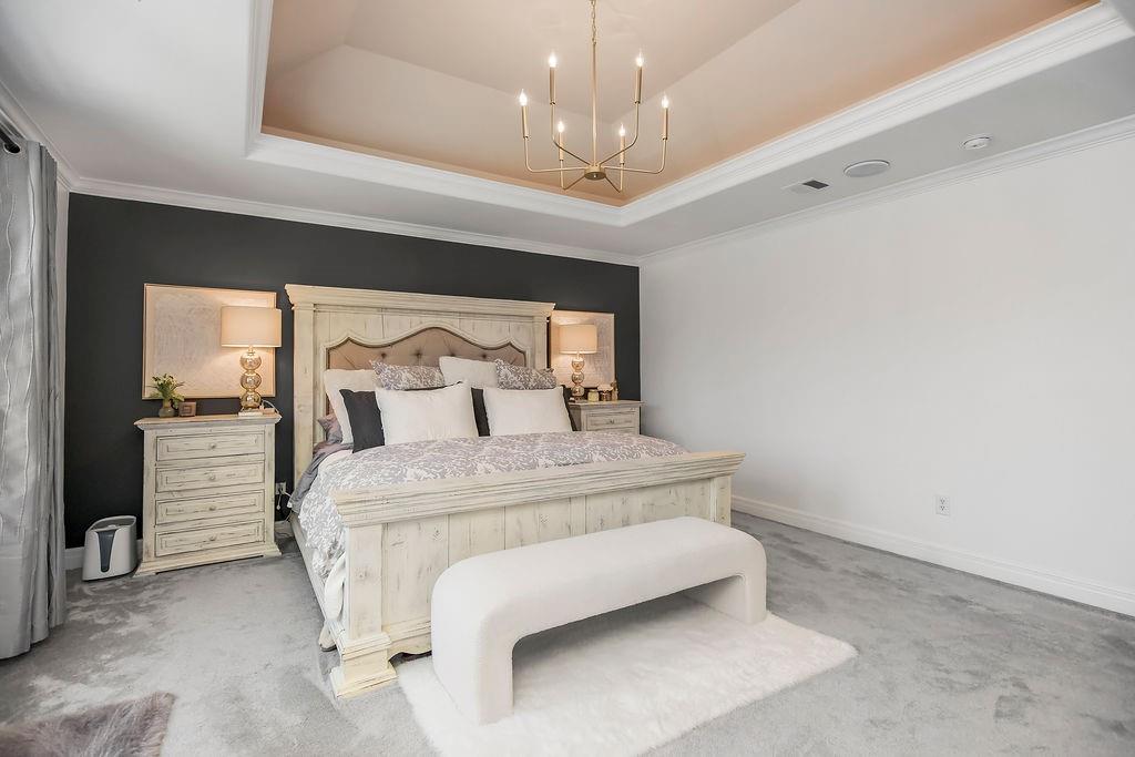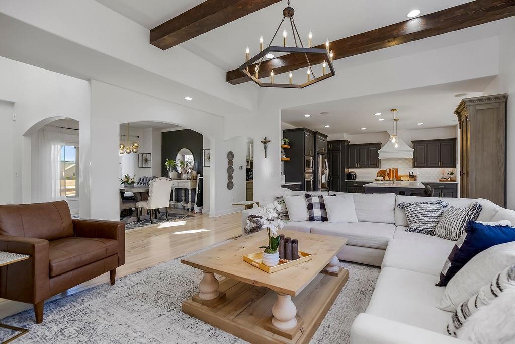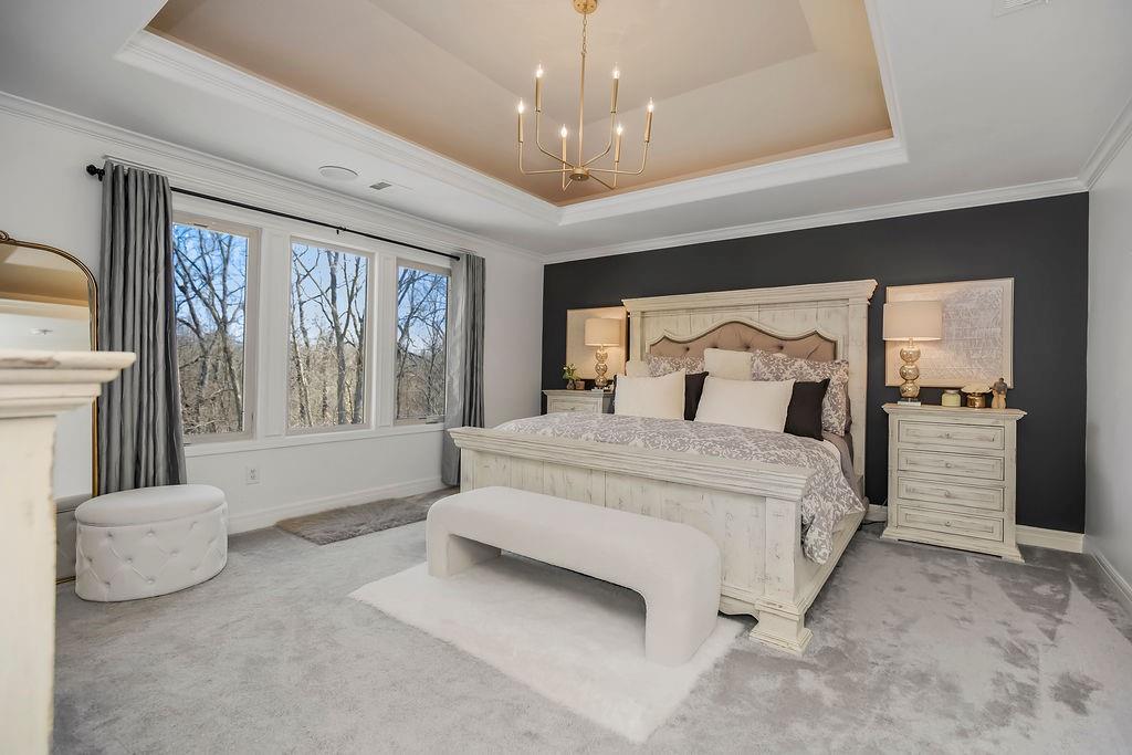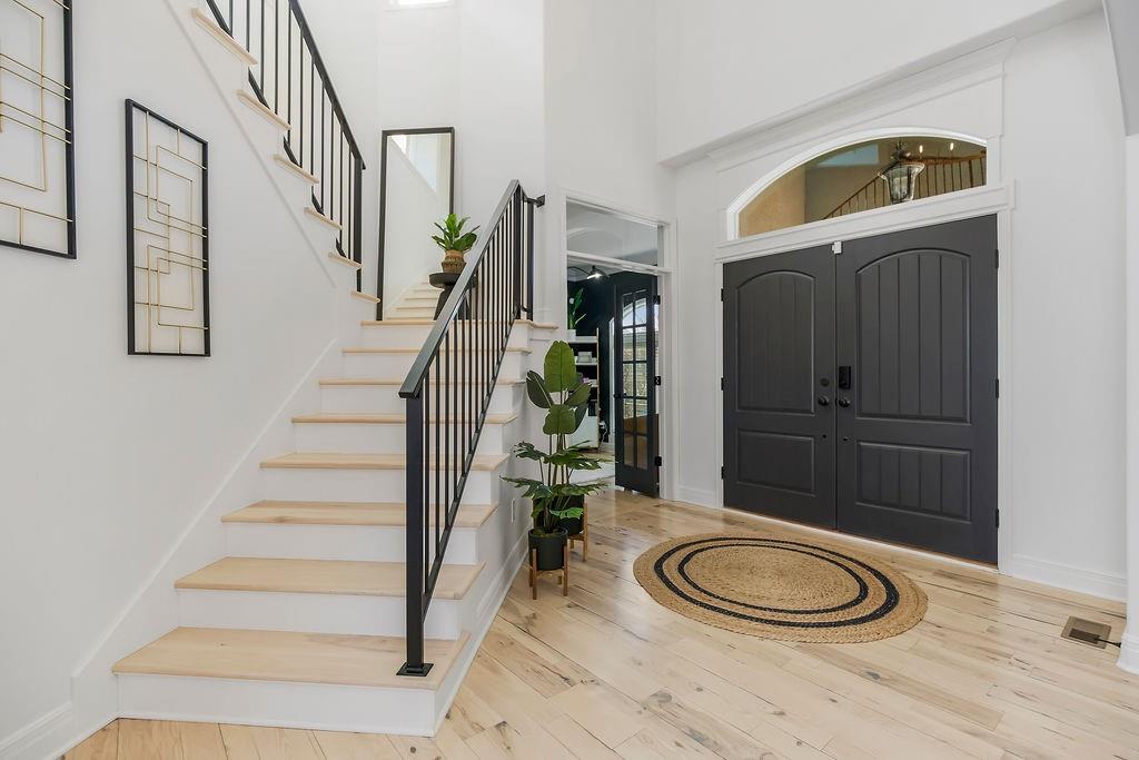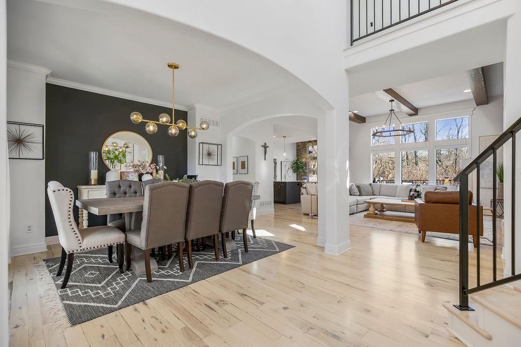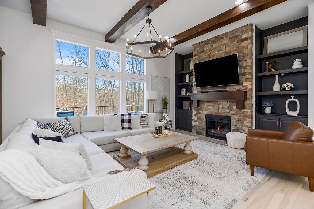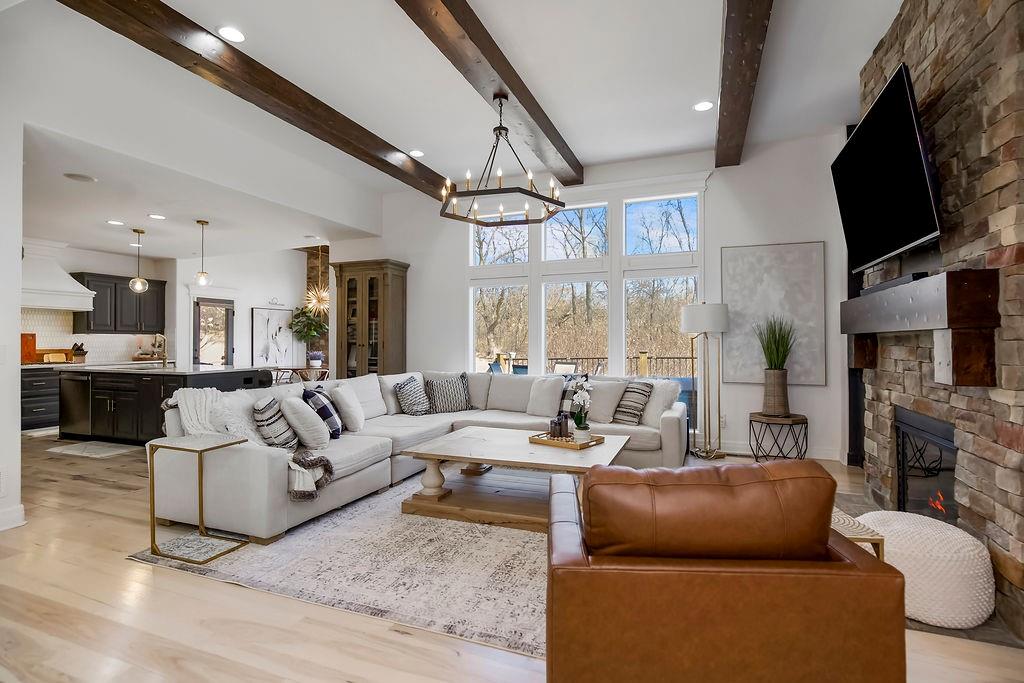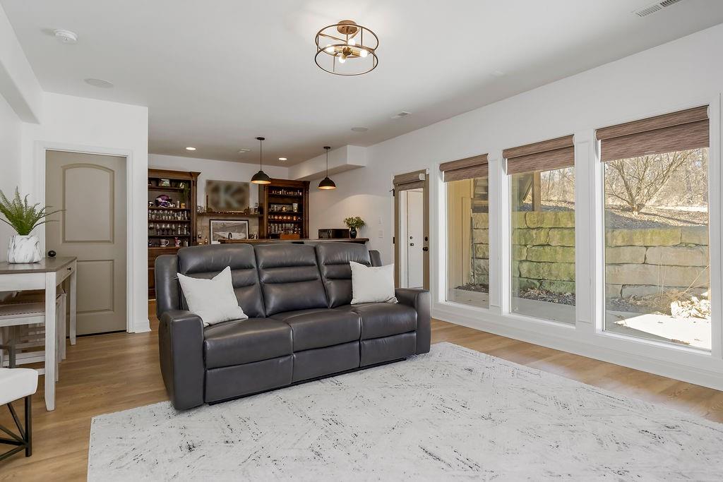 Only 10 minutes from Liberty or Kearney in the perfect location, this immaculate home on a little over 1 acre is in Kearney Schools. This is the home you have been waiting for! 6 bedrooms total with the primary bedroom upstairs, and 5 bathrooms and all newly updated and remodeled in the last 3 years! This home has a beautifully landscaped yard, two decks 1 covered patio w/ outdoor fireplace, and a second lower patio from the walk-out basement! The living room features custom box beams, brick fireplace w/ built-ins & windows overlooking the private treed backyard. Gourmet kitchen equipped w/ top-line s/s appliances, custom cabinets, large walk-in panty, island, granite tops, breakfast room & formal dining. Spacious master suite w/ private deck access, whirlpool tub, tile shower, double vanity & large walk-in closet. Finished walk-out basement w/ fireplace & full wet bar. This home has speakers and sound system throughout, a state-of-the-art security system, a brand new AC unit, a true storm shelter, and plenty of room to build your dream outbuilding/shop. Don't sleep on this home!