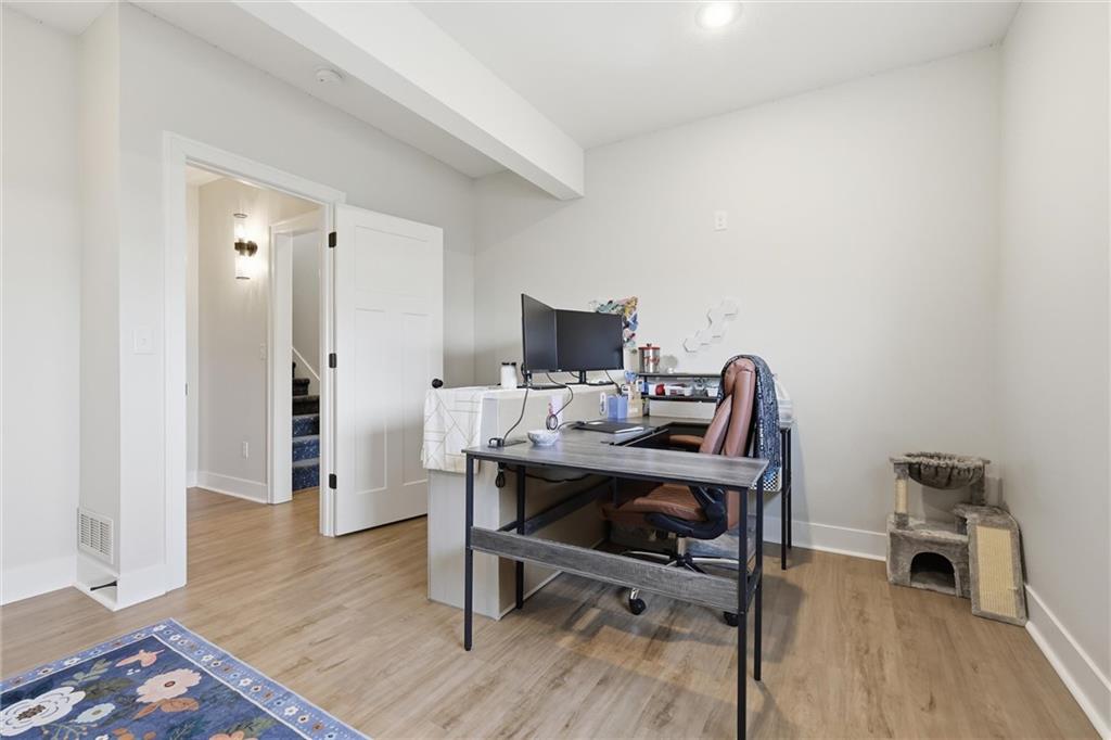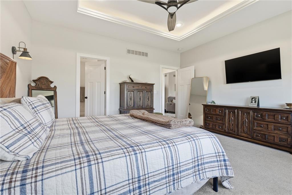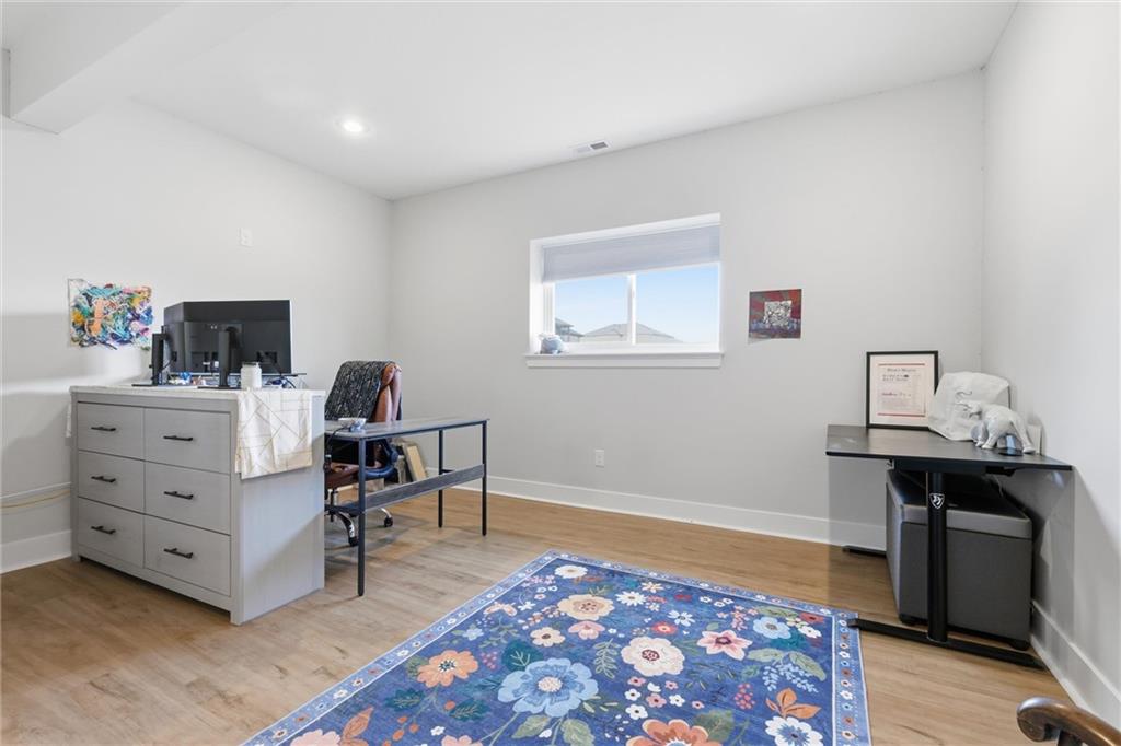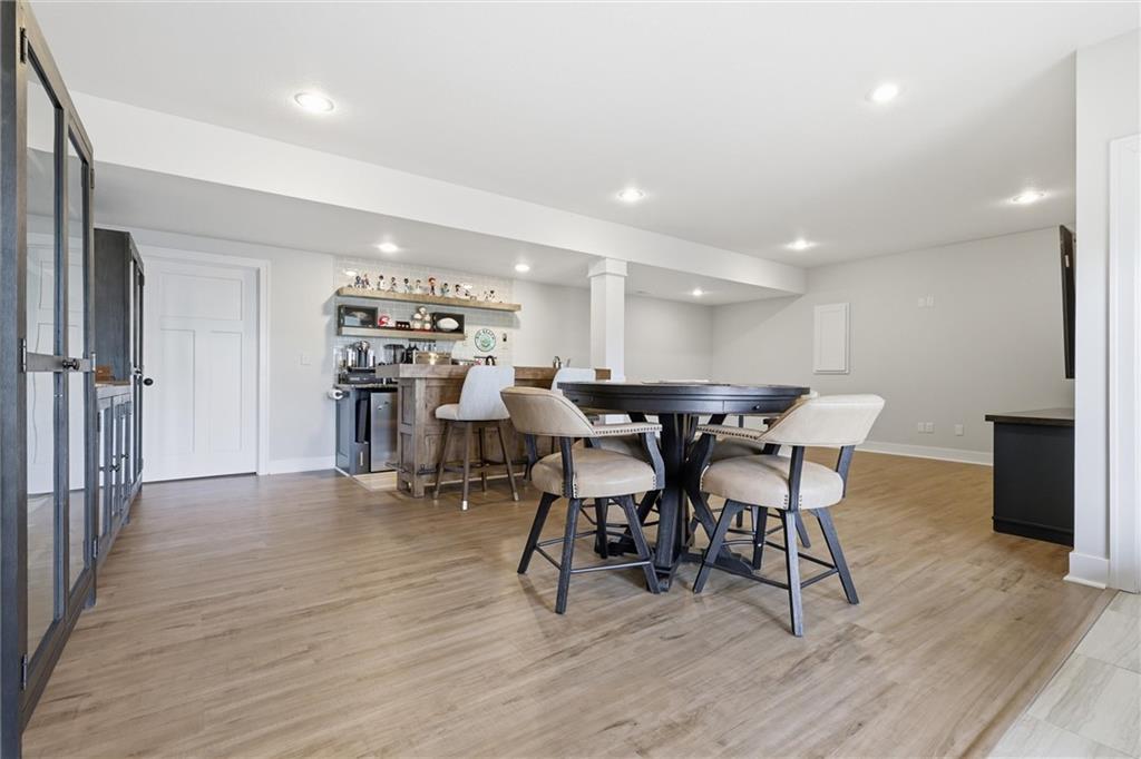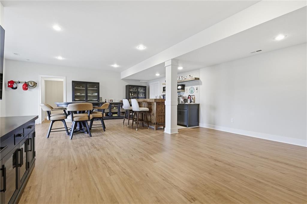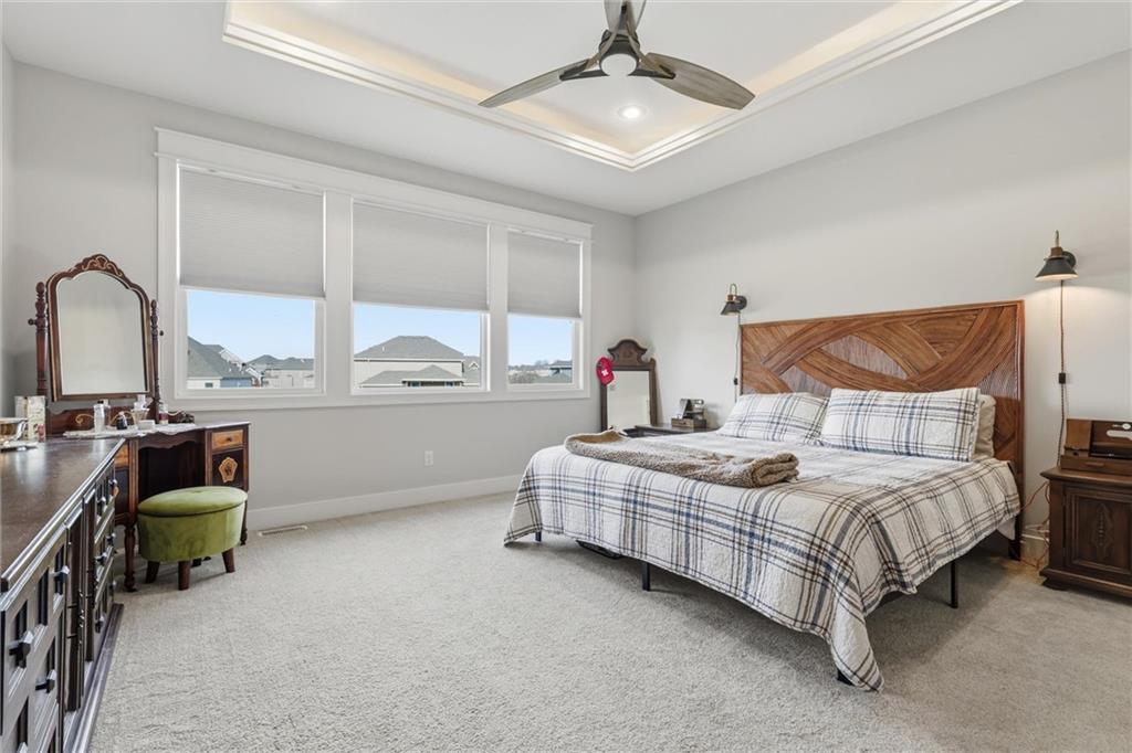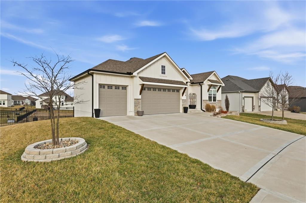 Welcome home to this beautifully upgraded property that perfectly blends style, comfort, and functionality. Step inside to find gorgeous wood floors throughout the main level living space, creating a warm and inviting atmosphere. The spacious living area features a stunning electric fireplace with color-changing LED lights, offering both cozy ambiance and a modern focal point. The kitchen is designed to impress with an oversized island, gas range, double ovens and granite countertops throughout — ideal for entertaining and everyday living. Thoughtful upgrades continue into the bathrooms, where you’ll find floor-to-ceiling tile in every shower/bath. The luxurious primary suite features a zero-entry shower with dual shower heads and corner seat, combining elegance and convenience. The lower level is perfect for entertaining with a designated bar space, LVP flooring was added in May 2025, and for added peace of mind, air ducts were professionally cleaned in October 2025. Additional improvements include buried downspouts and french drains to enhance drainage and functionality. Outdoor living truly shines here. The fenced, walkout lot backs to a shared green space and offers peaceful lake views. Enjoy morning coffee or evening sunsets from the large covered deck with Trex decking, built for durability and low maintenance. The stocked lake provides fishing opportunities just steps from your backyard — a rare and special feature. This home offers upgraded finishes, thoughtful improvements, and an unbeatable setting — the perfect place to relax, entertain, and enjoy life.
