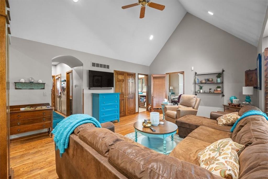 This stately 7200 SF home has great curb appeal. Original owner built the home 39 years ago with two major additions. The three-acre lot provides secluded living while having easy access to the whole KC Metro. Features include a main floor Primary bedroom plus a second Primary bedroom upstairs. The 5-bedroom 6-bathroom house is ideal for families. Fenced backyard for your dog too. The house is ideal for work from home, with his and hers offices, in different parts of the house. Entertaining spaces galore with Family rooms on the main floor and in the basement. A walk out basement also includes a massive game room. There is additional room in the basement for another bedroom and to add a shower to the existing half bath. The roof is a stone coated steel roof for fire resistance and durability. Construction quality is excellent. Mechanical system are 8 years old or newer in three separate zones. A new serpentine driveway adds to the curb appeal. Seller is providing a home inspection and survey. Seller is planning an estate sale for June 6-7. Possession can occur after June 9th , 2026.