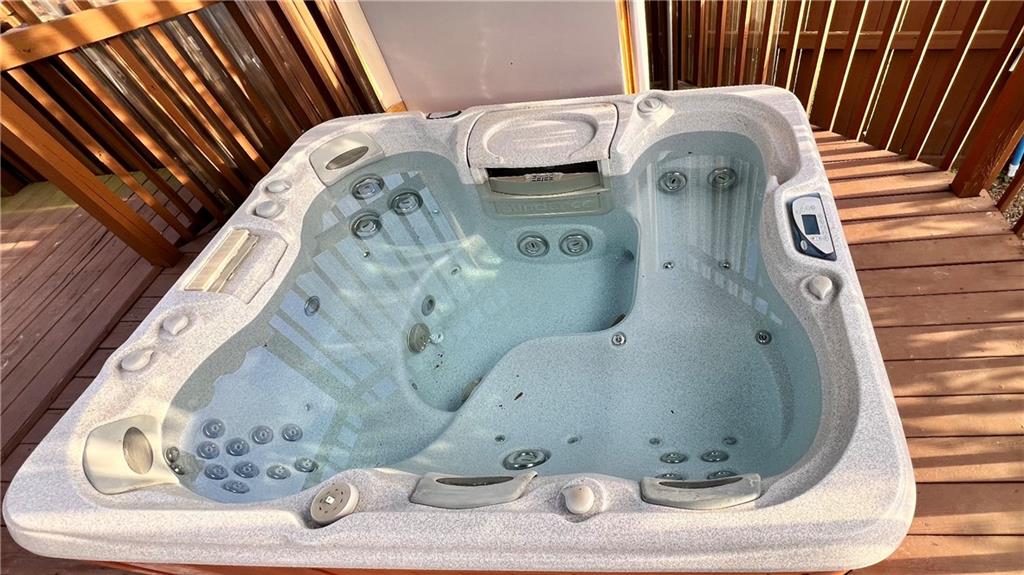 If you're wanting space to stretch out, this "Stay-cation" home is perfect. Situated on about 1.6 acres, this 5,000-square-feet home has room to enjoy, inside and out. 5 bedrooms and 3.5 baths gives room for family or guests. It's like having your own private resort: a full in-ground swimming pool, hot tub enclosed in a gazebo, trickling fountain, fire pit, and a huge expansive deck give you peerless outdoor enjoyment. Large solar arrays outside keep utility costs extremely low. Inside, a large lower-level great room includes a home theater area plus much more space for a game room or living space. Your primary suite is so large that it should have its own zip code! Add to that a climate-controlled wine cellar and workshop and you have the complete package. Back on the market with a $10,000 price improvement plus some new carpet!