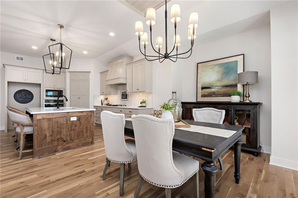 4 Car Garage, backs to Greenspace! Open floor plan built to maximize space. Custom kitchen cabinets, gas cook top, quartz tops, large walk-in pantry and plenty of kitchen storage. Convenient laundry off master, walk in shower (two head) plus tub. His and her closets unlike any reverse plan at this price. No more fighting over closet space. Unique, dry bar off family room, custom beams in family room with stone fireplace. Lower level is a full daylight for natural light. Large rec area has wet bar. Hallway to two more private bedrooms. Wonderful, covered deck, Sprinkler system. Photos are representation of home under construction. Actual home has 4 car front entry. All room sizes are estimate and subject to verification.