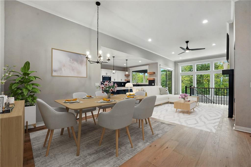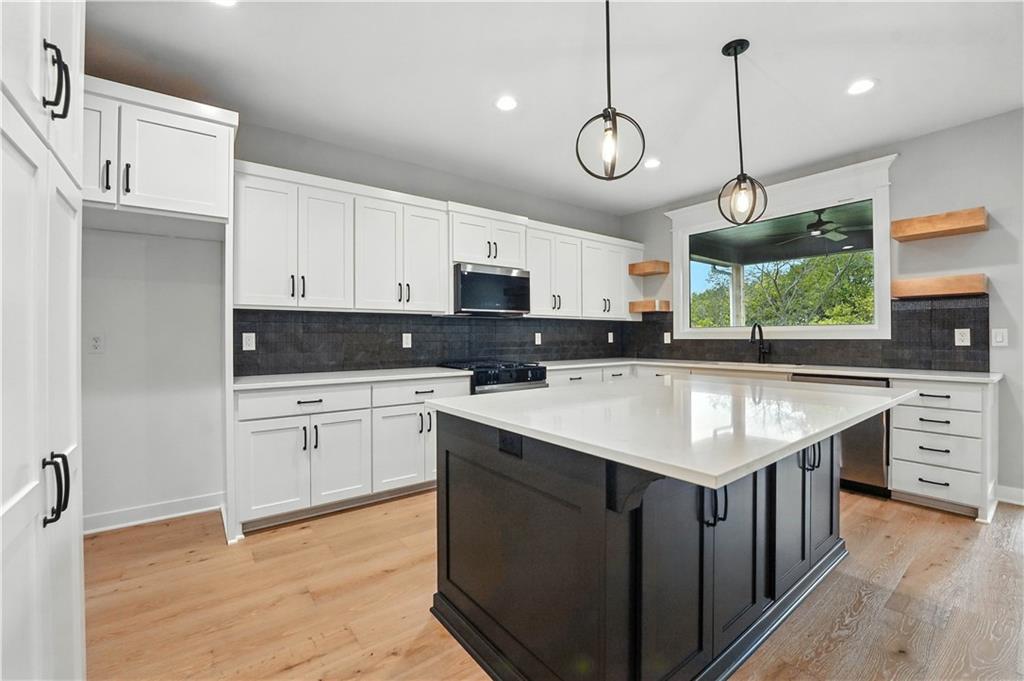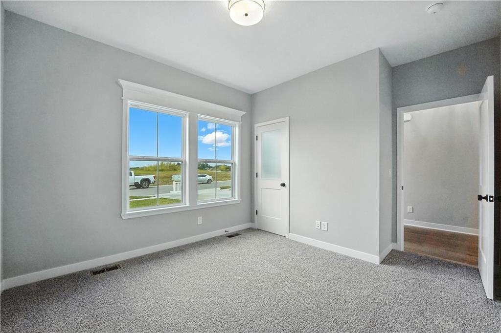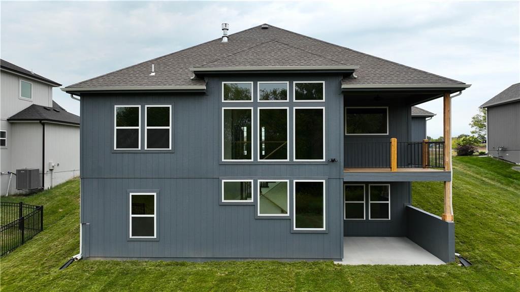 Experience refined main-level living in the Truman by Patriot Homes, located in Cadence a Hunt Midwest community. This move-in ready new construction home blends timeless design with elevated luxury details, offering the ease of living without sacrificing space or style. Step through the impressive 8-foot front door into a light-filled entry with soaring 12-foot ceilings, elegant trim work, and a striking chandelier that immediately sets the tone. Hardwood flooring flows through the main living areas, creating seamless connection between the dining space, designer kitchen, and inviting great room perfect for both everyday comfort and effortless entertaining. The kitchen is truly the heart of the home, featuring expansive quartz countertops, a large center island, custom shaker-style cabinetry, and stainless-steel Samsung appliances. The adjoining great room offers a warm yet sophisticated atmosphere with a gas fireplace, built-in bookshelves, floor-to-ceiling windows, and an 8-foot sliding glass door opening to a covered composite deck an ideal spot for morning coffee or hosting friends. A private hallway leads to a luxurious main-level primary suite designed for relaxation, complete with a freestanding soaking tub, zero-entry walk-in shower, Bluetooth audio, and a spacious walk-in closet with thoughtful storage features. A secondary main-level bedroom and full bath provide flexibility for guests, office space, or additional living needs. The finished walkout lower level expands your living and entertaining options with a generous family room filled with natural light, two additional bedrooms, a full bath, and two unfinished areas offering exceptional storage or future customization possibilities. Additional highlights include a three-car garage with 8-foot doors, irrigation system, high-efficiency 96% Lennox furnace, whole-house humidifier, and 50-gallon electric water heater — all reflecting the unmatched quality and craftsmanship Patriot Homes is known for.