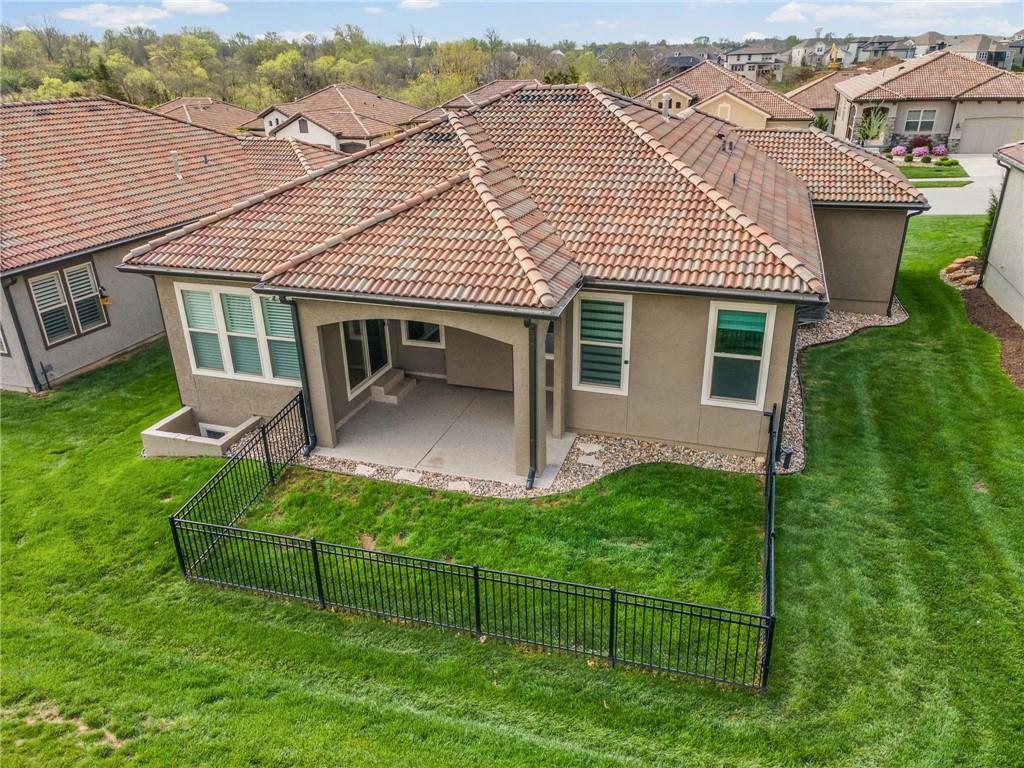 Imagine coming home to pure elegance & zero hassle – this is the incredible value you've been waiting for in one of Lee's Summit's most sought-after villa communities! A striking stucco exterior topped with a durable tile roof delivers timeless curb appeal. Step through the grand entry with its show-stopping intricate ceiling details and sleek modern light fixture – the same sophisticated style flows seamlessly into the main-level primary suite, bathed in warm ambient tray lighting for that perfect retreat vibe. The heart of the home, a jaw-dropping Kitchen that's built for entertaining & everyday luxury: rich stained cabinetry on the oversized island, a stunning marble-inspired herringbone backsplash, premium upgraded appliances & a massive walk-in pantry that makes meal prep a breeze. The primary bath is your personal oasis with a luxurious zero-entry shower (frameless glass door for that open, airy feel), deep soaking tub & gorgeous granite countertops. Plantation shutters and stylish shades that give you effortless control over privacy and sunshine. Step outside to your covered front porch or expansive rear patio, both featuring sleek, epoxy-coated floors built to last. The oversized garage with its own epoxy-coated floor for that showroom shine. Outside, the automatic sprinkler system keeps the lawn lush & green with zero effort on your part. The partially finished basement is a bonus bonanza: a second living area, convenient half bath, egress window ready for a potential third bedroom or guest suite, plus tons of storage. All this low-maintenance bliss comes with a super-affordable $143/month fee covering lawn care and snow removal. The $1,100 annual HOA unlocks resort-style perks: a pool, clubhouse, pickleball court, walking trails & trash. Prime location puts you minutes from shopping, dining, and the charming downtown Lee's Summit. Buyer & Buyer's Agent to verify all info including square footage, zoning, taxes & room sizes during the Inspection Period.