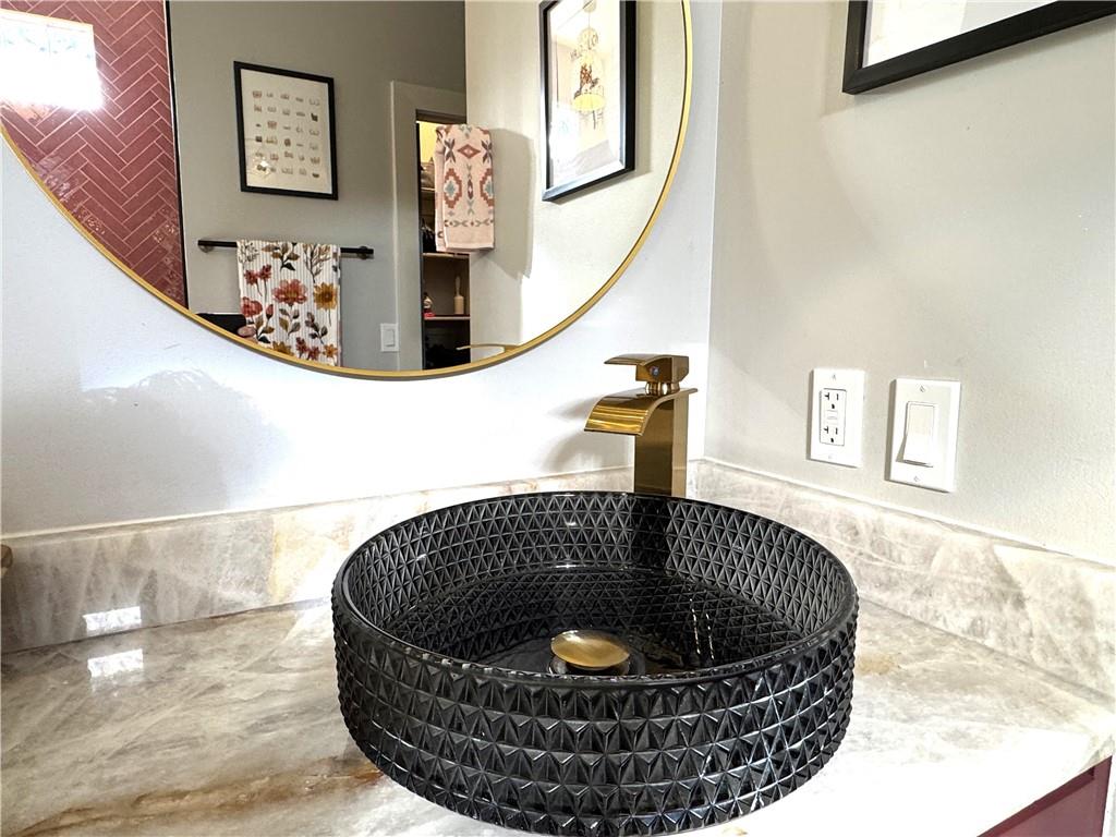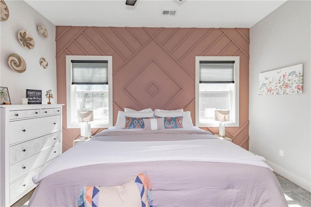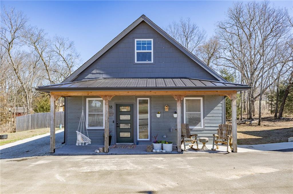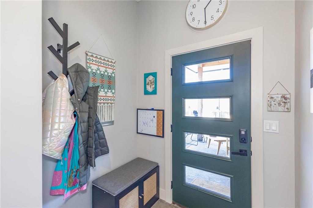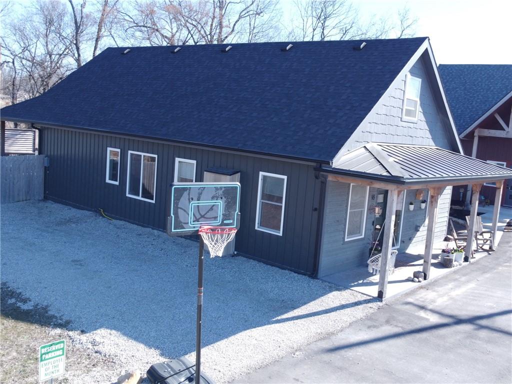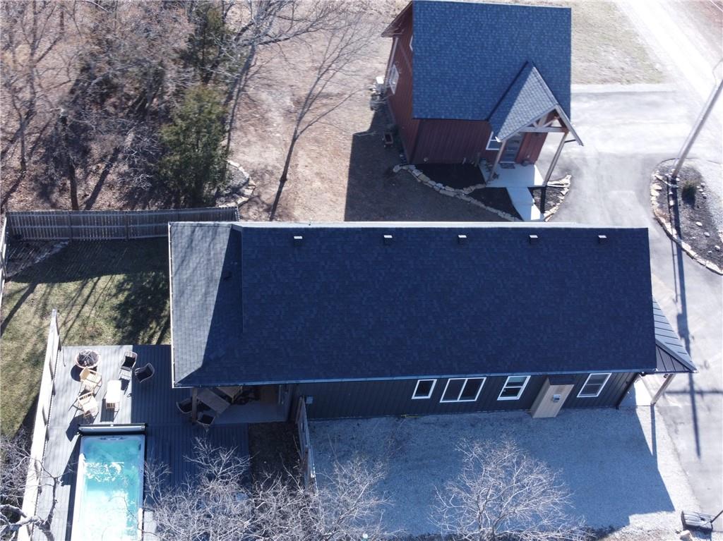 This is truly a custom home, located within the gated community of Linn Valley Lakes. Nothing about this home is builder grade including design, quality, features, or style. Enter the home and you are treated to a beautiful gas fireplace with a stone face, concrete floors, and designer fixtures. 10 ft ceilings provide the open look and feel throughout the entire main level. The chef's kitchen includes high-end stainless-steel appliances, a gas stove, custom cabinets with brass handles and stunning green quartzite countertops. The quartzite is heat resistant has the look of marble, yet it is easier to maintain. Four can sit at the island, but there is room for a small table if you wish. The backsplash is black subway tile laid in a herringbone pattern on one side and a beautiful gold and black hexagon pattern on the other. As you leave the kitchen and head to the back door, there is a large pantry, a laundry room, and a mudroom. Get ready to feel pampered in the primary suite. The large bedroom has a feature wall and lots of natural light. The primary bath includes a quartzite vanity with double sinks and beautiful brass lighting. The shower is a work of art with 4 different tiles that blend to create something beautiful. A bidet? You bet! The main bath and the second bedroom are also on the main floor. Going up the stairs, you have gray carpeting and white wood trim with black iron balusters. The 3rd bedroom is a loft, and it has a walk-in closet. The fully fenced backyard has a resort feel with over 200 sq feet of covered porch and then decking extending out to the large swim spa. The jets can create a water flow for swimming, and it feels more like a pool than a spa. The detached garage has a bonus room upstairs that is heated and cooled by a mini split and makes a great office, craft room or simply a get-away space for kids (or adults). It would be impossible to re-create this home for the list price, so make plans to see this special home soon!