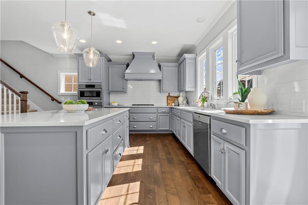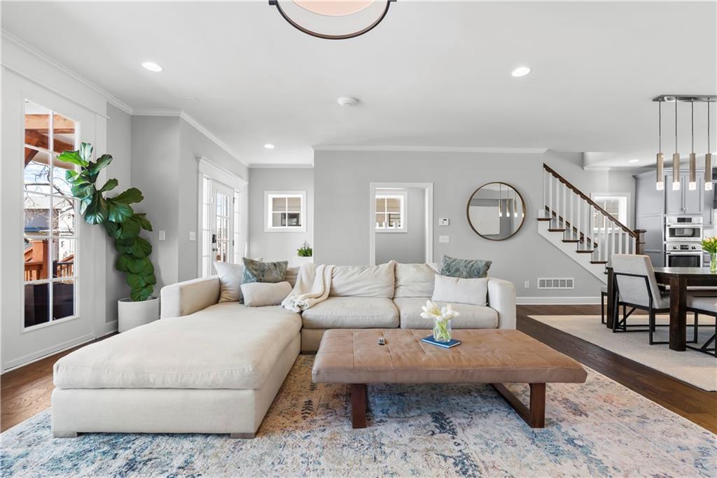 This exquisite custom-crafted 2-story residence by renowned James Engle Custom Homes offers the ultimate in sophisticated urban living in the highly desirable Plaza Heights. A highly sought after neighborhood blending modern new construction with historic charm, just blocks from the iconic Country Club Plaza. Enter to a grand, light-filled open floor plan crafted for effortless entertaining and everyday elegance. Gleaming hardwood floors span the main level, highlighting a sophisticated living room with a sleek tile-surround fireplace and French doors opening to a spacious front porch, ideal for morning coffee or evening relaxation. The seamless dining area flows into a show-stopping gourmet kitchen featuring premium designer finishes, luxurious solid surface countertops, and a full suite of Bosch stainless steel appliances (built-in microwave, wall oven, gas range, dishwasher, refrigerator). An oversized island anchors the space for prep and casual dining, complemented by a butler's pantry and walk-in pantry. Upstairs, the luxurious primary suite offers a spa-like en-suite w/ dual vanities and a walk-in tiled shower. Two additional bedrooms, a full bath, and laundry closet provide ample comfort. What truly distinguishes this home is its rare, fully finished lower level—delivering exceptional extra living space with a versatile living room, 4th bedroom, additional half-bath, and 2-car garage access, don't miss the epoxy floors! Step out to your private backyard oasis with a gracious deck for outdoor enjoyment, plus a private driveway and elegant gated entrance for added privacy and convenience. Nestled in Plaza Heights, you're steps from the Country Club Plaza’s premier shopping, dining, and entertainment. The monthly HOA handles front and side yard lawn mowing, so you can focus on the lifestyle. Timeless sophistication meets vibrant city energy in one of Kansas City’s most sought-after locations. This standout gem, demands to be experienced in person.