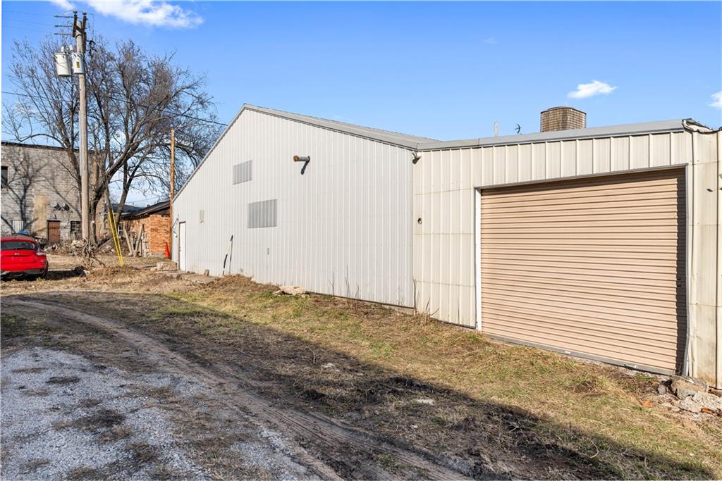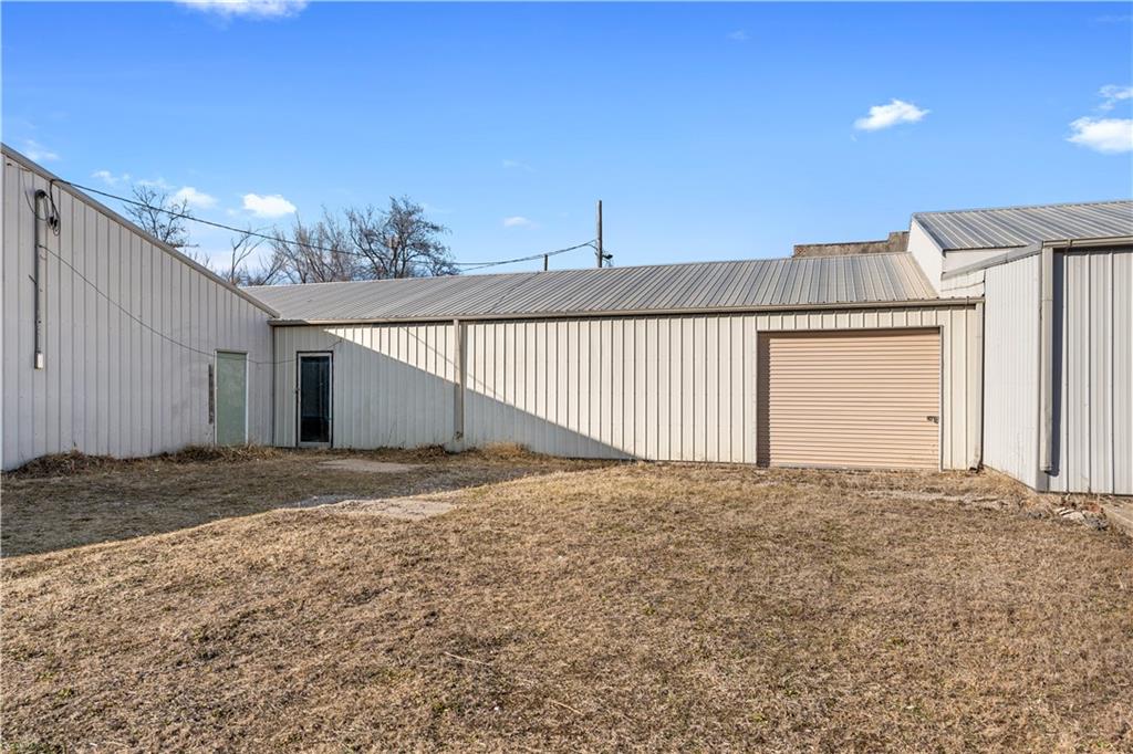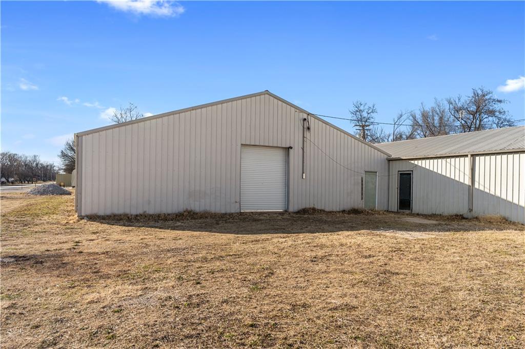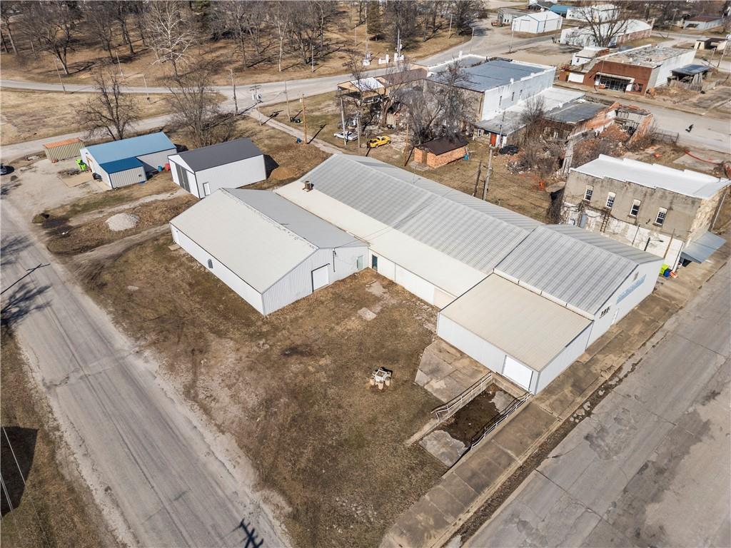 Industrial warehouse and manufacturing property for sale in Rich Hill, Missouri offering just over 14,500 square feet of total improvements located in Bates County less than one mile from I-49. Built in 1991, this commercial facility consists of two connected industrial buildings functioning as one cohesive production and warehouse operation. The structures feature clear span steel truss construction, high ceilings, insulated interior, and concrete floors throughout, providing flexible space for manufacturing, fabrication, assembly, storage, or contractor operations. Functional access is supported by three overhead doors measuring 25' x 15', 20' x 10' with sloped clearance, and 8' x 10' with 10' to 12' ceiling height, in addition to one 10' x 8' dock-height door. Equipped with 3 phase electric service to support industrial power demands. Previously utilized for custom fabrication and assembly services, the facility demonstrates proven operational functionality for light manufacturing and production businesses. Situated on a 130 x 175 corner lot, approximately 0.52 acres, the property features metal exterior construction, alley access, and street frontage on two sides for improved truck access and maneuverability. Located in Rich Hill, MO along the I-49 corridor, approximately 1 hour south of Kansas City and approximately 2 hours north of Bentonville and Fayetteville, Arkansas. Close proximity to I-49 provides convenient north-south interstate connectivity. This property offers strong potential for an owner occupant, expanding manufacturer, contractor business, or commercial investor seeking industrial space in Bates County.
