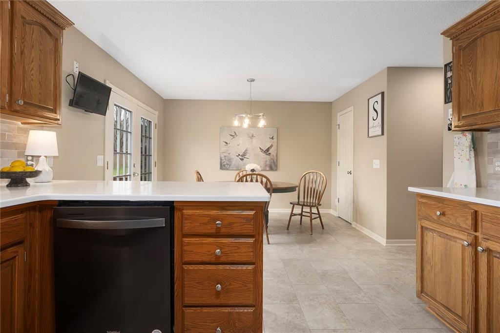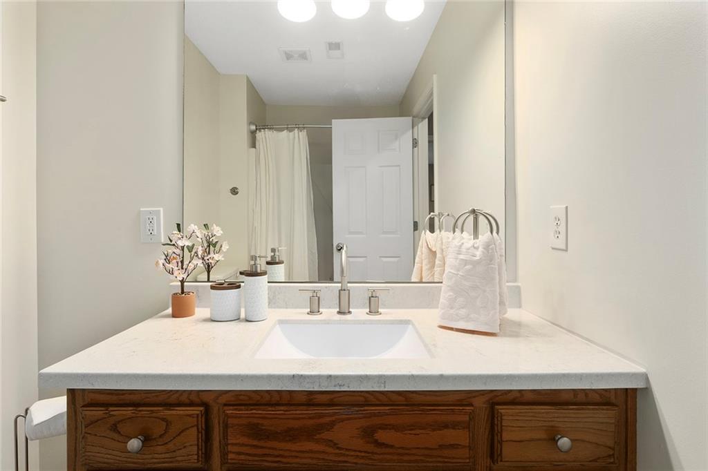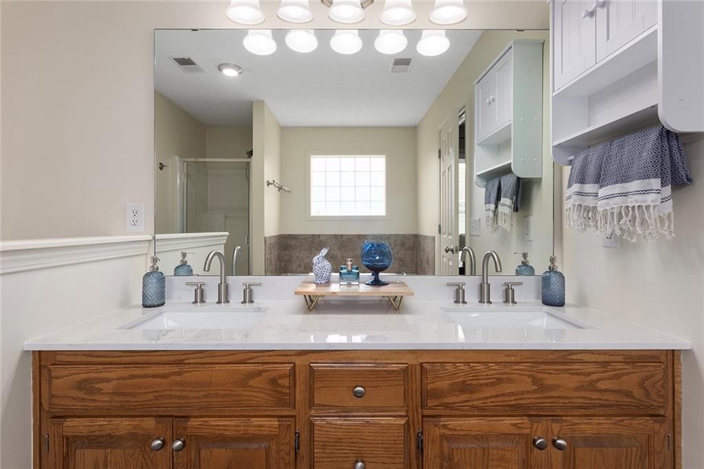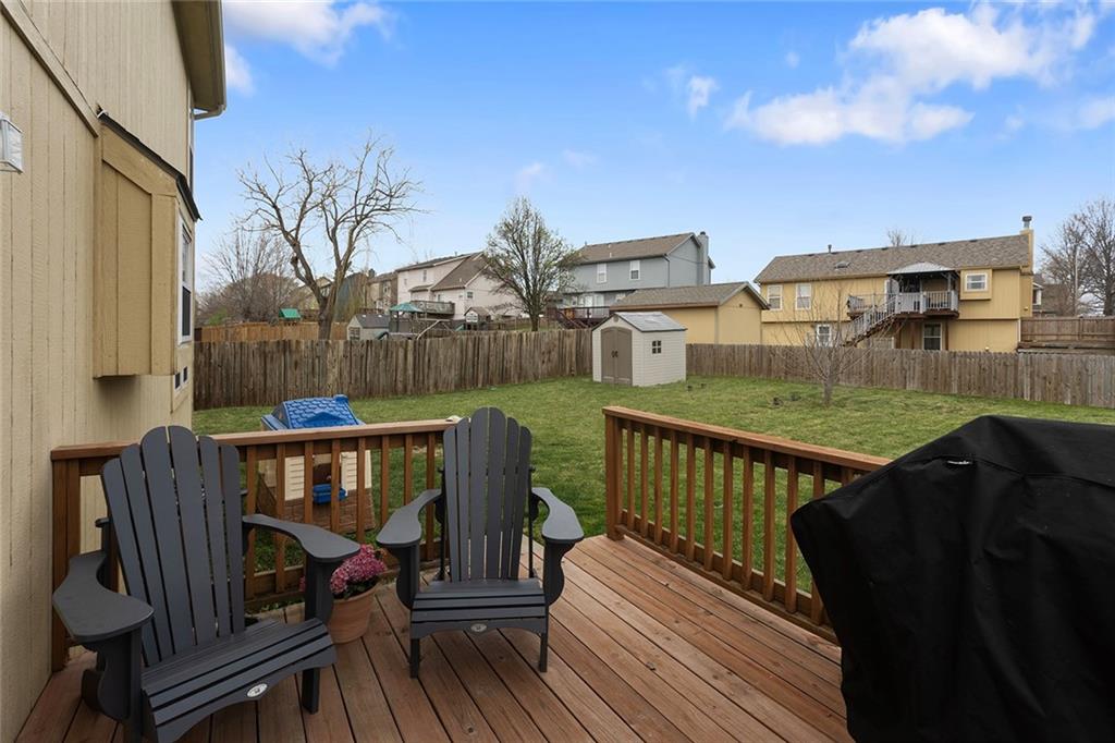 PRICE IMPROVEMENT - Located in the highly sought-after Bristol Highlands within Bristol Park neighborhood, this beautifully maintained 2-story home offers stylish updates and exceptional functionality throughout. So many updates to the main and upper level. You enter onto a expansive covered porch and freshly painted front door. The heart of the home is a bright, spacious kitchen featuring modern LVP flooring that extends into the entry and laundry room. New quartz counters, a tile backsplash, and dark stainless appliances provide both elevated style and everyday practicality. A generous kitchen dining area and walk-in pantry add convenience, while the drop zone off the garage keeps coats, backpacks, and daily essentials organized. French doors lead off the kitchen to the deck. The main level also includes a welcoming living room with vaulted ceilings, a stunning fireplace, and brand-new plush carpet, along with a dining room featuring wood floors and large windows that bring in abundant natural light. Upstairs, the primary suite impresses with a vaulted ceiling, walk-in closet, and a spacious ensuite complete with double vanity, shower and jetted tub. Three additional generously-sized bedrooms and an updated hall bath complete the upper level. All bathrooms (2 full, 1 half) have been refreshed with new vanities, fixtures, and fresh paint. The upper level has the same brand new plush carpet as living room and stairs. The finished lower level offers a versatile recreation space divided into two functional areas, along with a convenient half bath. Major systems—including HVAC, water heater, and roof—are approximately five years old and have been recently serviced. Outside, enjoy an updated deck, refreshed landscaping, storage shed, and a flat lot perfect for outdoor living. The HOA supports 2 swimming pools, playgrounds, and shelters. Google fiber available. With thoughtful updates, solid mechanicals, and move-in ready appeal, this home is a must-see.