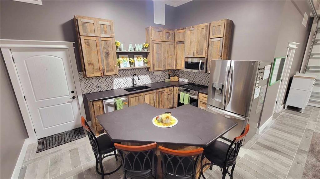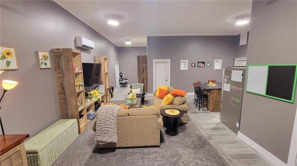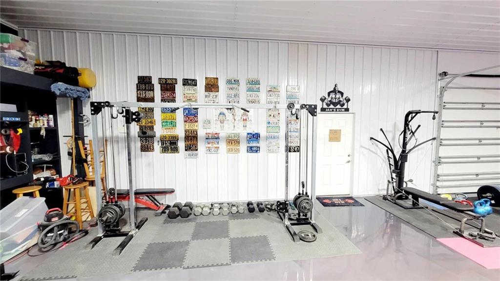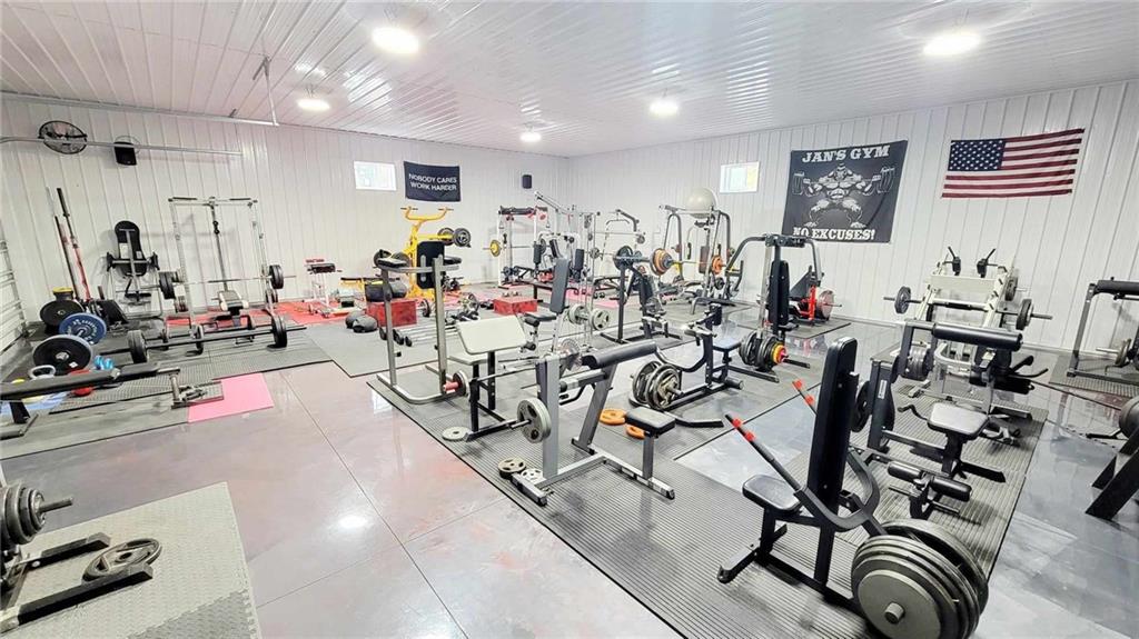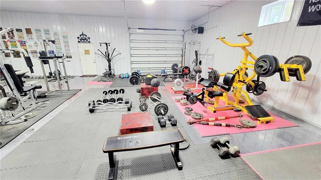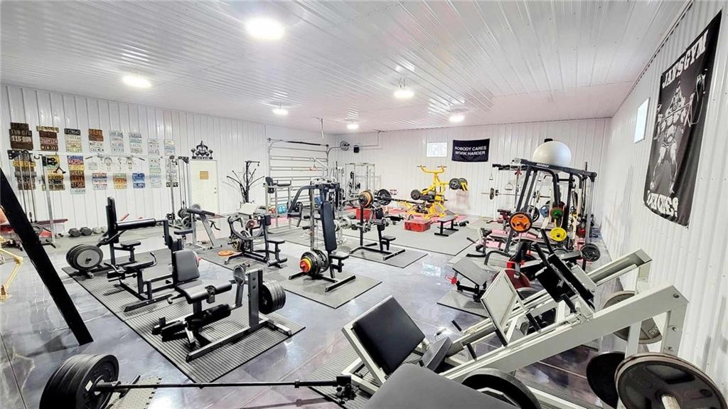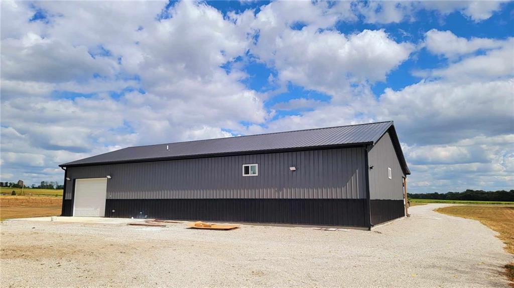 Impressive 40x72 Brand New Barndominium on 5 acres. The interior is custom finished, featuring a huge shop area with epoxy floors, metal-clad walls, and more. Currently outfitted as an impressive gym space. The 26x40 finished living space is equally impressive with custom built-ins throughout. This 1-bed, 1-bath has one-of-a-kind custom ornate wood kitchen cabinetry and beautiful stone countertops. The living room is open and inviting with a huge roll-up west door. If you want to park your Harley inside, you can. Whether you are a minimalist or love the lifestyle of maintenance-free living, this place is perfect for you. The property has one small pond, approximately 50 yards west of the home, highway frontage, and a football field length of privacy off the main road. You will be hard-pressed to find a Barndominium nicer and turnkey, move-in-ready. **Taxes are estimated.