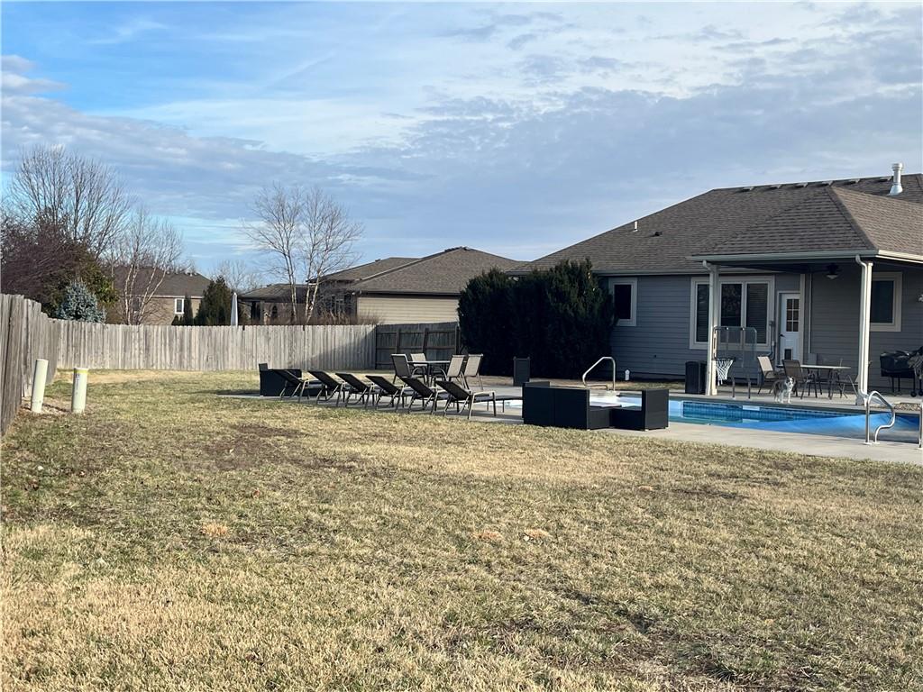Experience the simple life of cul-de-sac living with this amazing property in the highly coveted Fox Chase South subdivision, including a dream backyard (one of the largest in the subdivision) with a large, heated swimming pool and automatic safety cover, plenty of yard space for other activities and a very nice neighborhood. With a beautiful living space, this six bedroom/four bath home is situated in the upper part of the cul-de-sac with three bedrooms, including the Master, on the main level and three bedrooms downstairs. Includes four full bathrooms and a three-car garage. Floor plan provides an open living area that connects the kitchen, dining room and living room. Master bedroom includes a large walk-in closet along with its own Master bathroom that includes a beautiful stone walk-in shower with dual sinks and a luxury vanity. The basement includes ample living space along with a designated kitchen area, including dishwasher and microwave. All bedrooms in basement are equipped with fire escape steps. This property includes sprinkler system and surround sound throughout the house. Also included is a high-quality basketball goal that is adjustable down to 5ft. This property feels like an all-inclusive residence that allows everyone to relax and enjoy the neighborhood, covered outdoor patio/grill area, evening dinner by the swimming pool and end the day by watching the sun go down on the large patio connected to the pool. This location allows for a quick drive to Clinton Lake and Rock Chalk Sports Pavilion along with very easy access to K-10 for KC or Topeka commuters. This cul-de-sac has a reputation for being super fun, while reducing stress for residents with minimal traffic, making this a perfect fit for anyone.