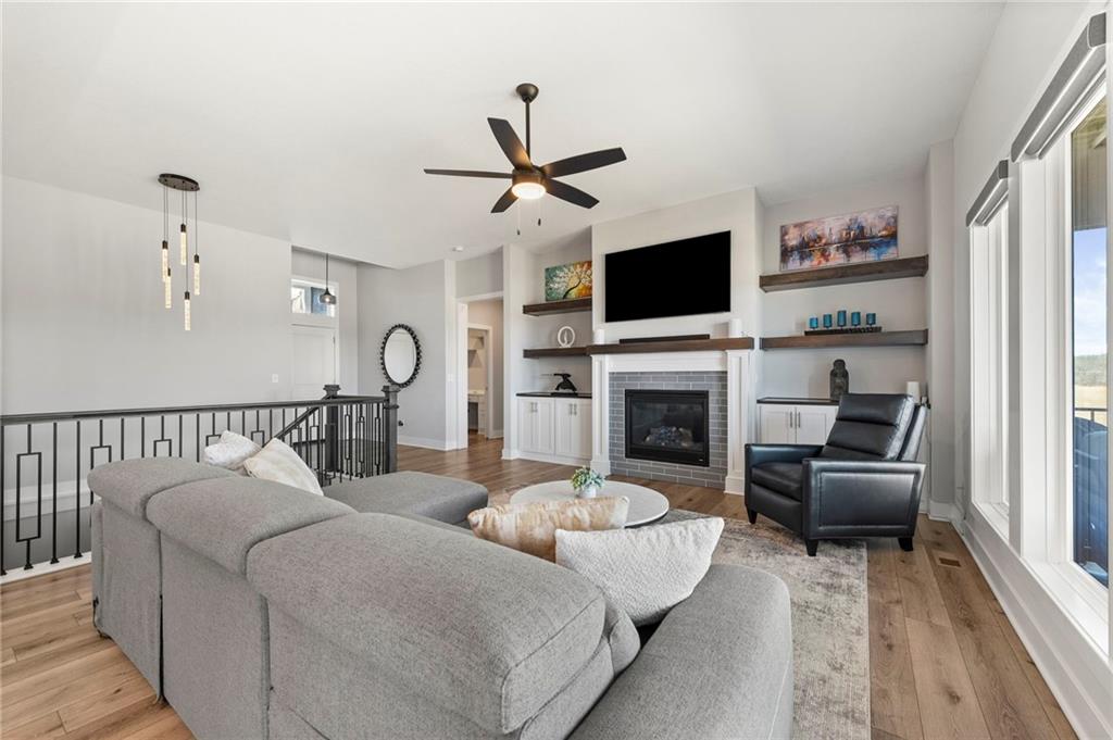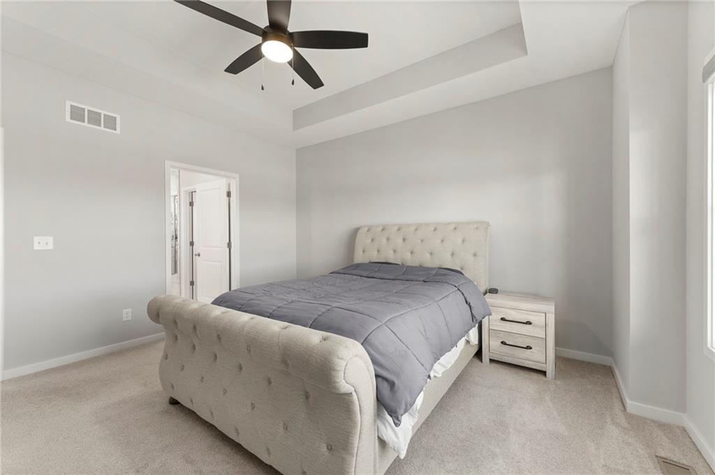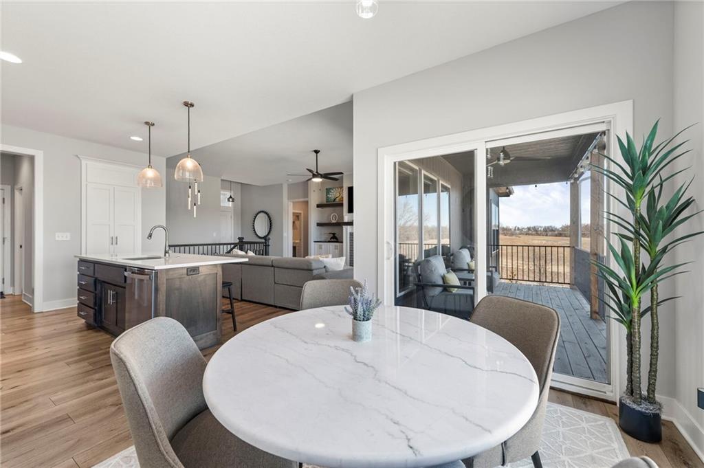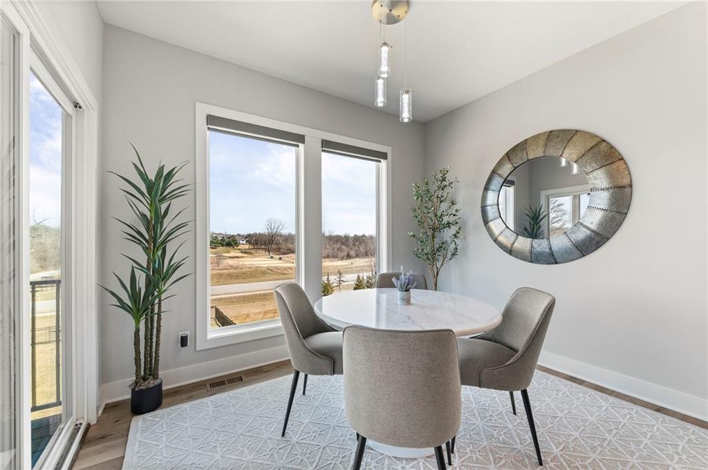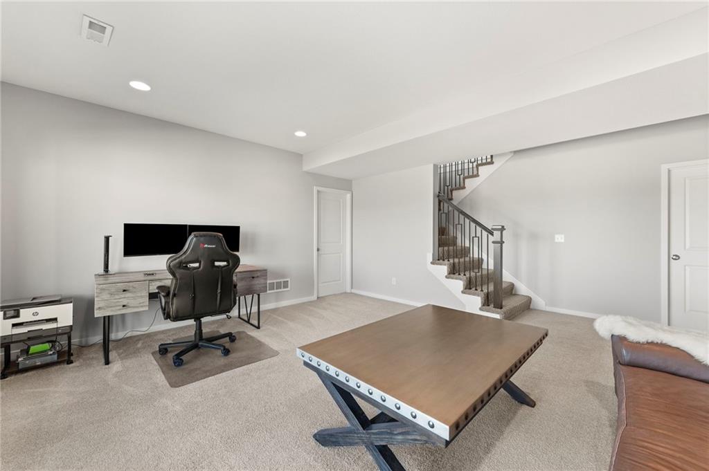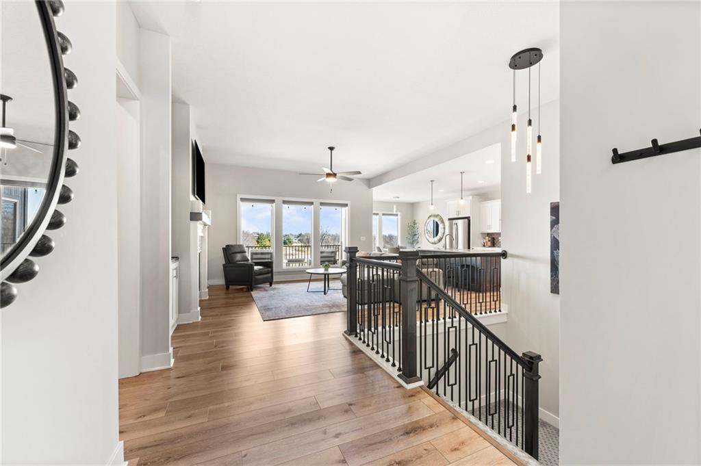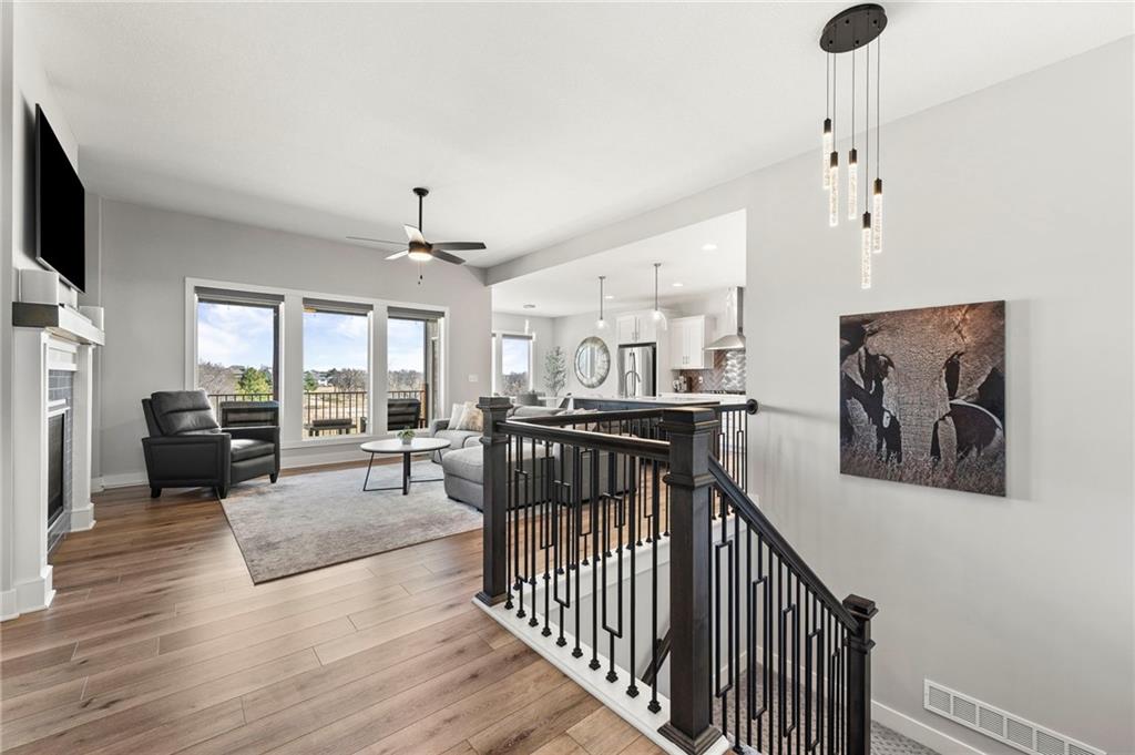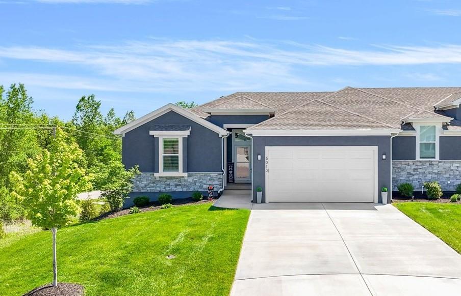 Stunning View of the Golf Course! From Tee Box to the Green par 3 View! Walkout lot on a cul-de-sac! This reverse 1.5 story home has everything you need on the main level. Enter into the great room and instantly see the spectacular view of Hole 17! Electric blinds in the Great Room and Dining Room. Kitchen with walk-in pantry and quartz counters. Drop Zone/Boot Bench and 1/2 Bath just off the garage and kitchen. Covered deck is perfect for enjoying a cup of coffee while taking in the sunrise and the scenery! Primary suite includes bedroom with LARGE walk-in closet, bathroom with walk-in shower, laundry right off the closet, and office area. Finished lower level Family Room walks out to great fenced yard! Family Room perfect for an entertainment center. Two bedrooms and a full bath as well. Plenty of storage in the unfinished area. Fresh interior paint 2 years. Stained covered Deck. Maintenance includes comprehensive lawn care, snow removal, exterior painting, and replacement of roof and gutters as needed. Also includes access to neighborhood pool, play area, pickleball & tennis courts. Falcon Lakes golf course is a public course with a bar and grill, "The Nest". Highly rated Basehor-Linwood School District! Conveniently located just off K-7 for easy access to all parts of the metro area. Just 10 minutes to the Legends Shopping and Entertainment District and 30 minutes to the airport.