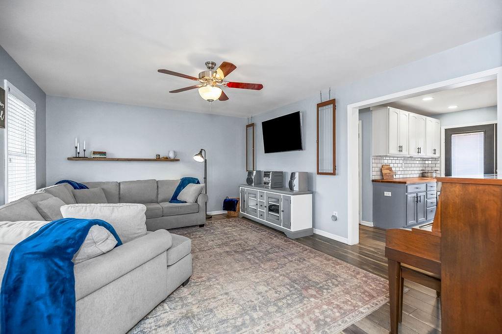 Beautifully updated home offering the perfect blend of modern upgrades, outdoor living, and functional space inside and out! The exterior has been thoughtfully transformed with a newly manicured gravel driveway, extensive rock landscaping, fresh paint on doors, shutters, and garage door, plus sanded and stained wood beams on the front porch. Enjoy outdoor living with a new firepit area, upgraded Deckorators composite decking and railing, and a spacious 15x42 (630 sq ft) deck—perfect for entertaining. A saltwater pool with custom drainage system and a 2,000 sq ft garden add to the outdoor appeal. Located within walking distance to a nature trail near Clinton Lake, this property offers both privacy and outdoor adventure. Inside, the home features a fully repainted interior, new LVP flooring on the main level, and brand-new carpet upstairs. The kitchen is a showstopper with a huge 40 sq ft island, added cabinetry, butcher block countertops, new sink, and updated lighting throughout. Additional updates include re-screened windows, new stair treads and railing, and updated lighting with dimmer switches. The finished basement offers additional living space with an updated full bath and remodeled stairs and railing. Barnboard accents in the dining room and half bath add warmth and character. The barn offers incredible versatility with a new concrete floor, added second level, electric on both floors, painted rafters, and framed workspace. Concrete has also been poured under the overhang for a future three-season room near the pool.