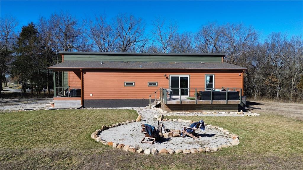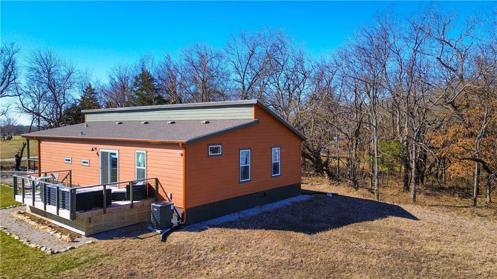 From 69 Highway, take the Mound City Exit (52 Highway) west towards Mound City Continue through Mound City to KS 7 Highway. Turn North onto K-7 Highway. Take the first Sugar Valley Lakes Entrance (Fairway Dr.), turn left at the stop sign onto Clubhouse Lane, go to the end of the road where it Y's, and stay right onto Birdie Lane. You will be driving past greens and fairways. The home sits on the corner of Birdie Dr.