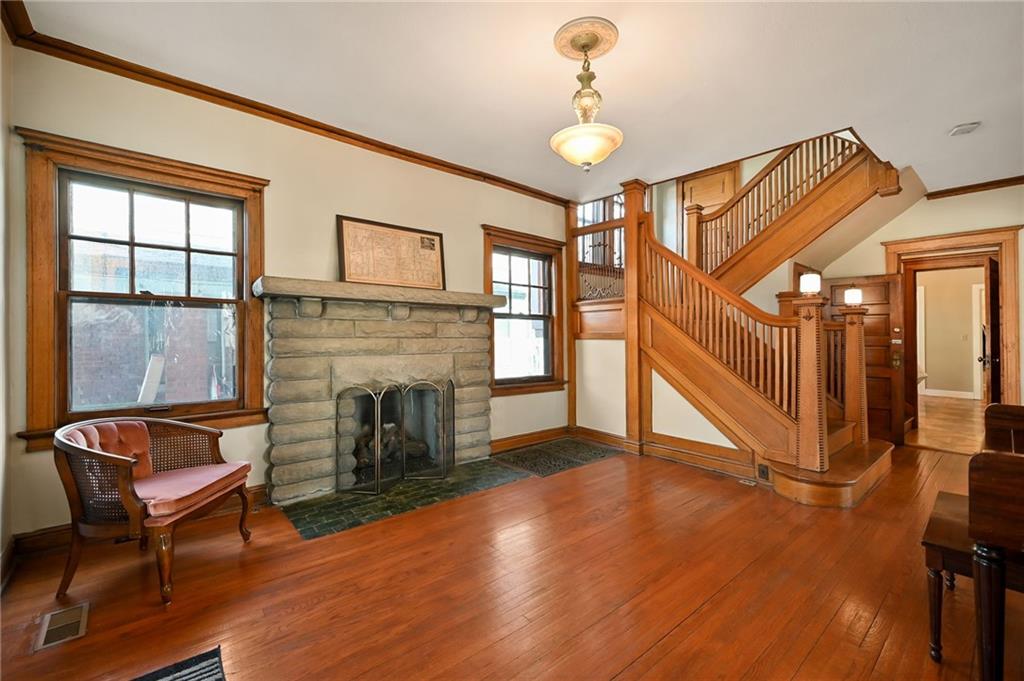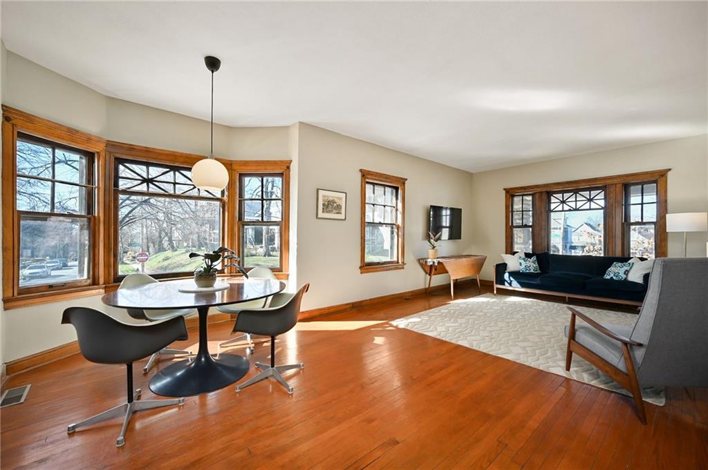 A rare opportunity in historic Hyde Park, this charming home offers 5 bedrooms and 3.5 bathrooms with timeless character and thoughtful updates throughout. Built with classic Missouri limestone shirtwaist construction, the home showcases beautifully preserved original woodwork and windows that highlight its historic craftsmanship. The main floor features two spacious living areas, including one with a cozy fireplace, along with a dining room that flows into a large kitchen complete with marble countertops and an island. A convenient main-floor primary suite with a recently renovated bathroom provides flexible living options. Upstairs, the second floor offers three generously sized bedrooms and a full bath, while the third floor boasts a massive private primary suite with a beautifully updated bathroom. Outside, enjoy the craftsman-style front porch perched high in the neighborhood—perfect for taking in stunning sunset views. A private driveway with a two-car garage adds rare convenience for the area. Ideally located just a short walk to Martini Corner, the Streetcar line, and all the vibrant amenities of Midtown living.