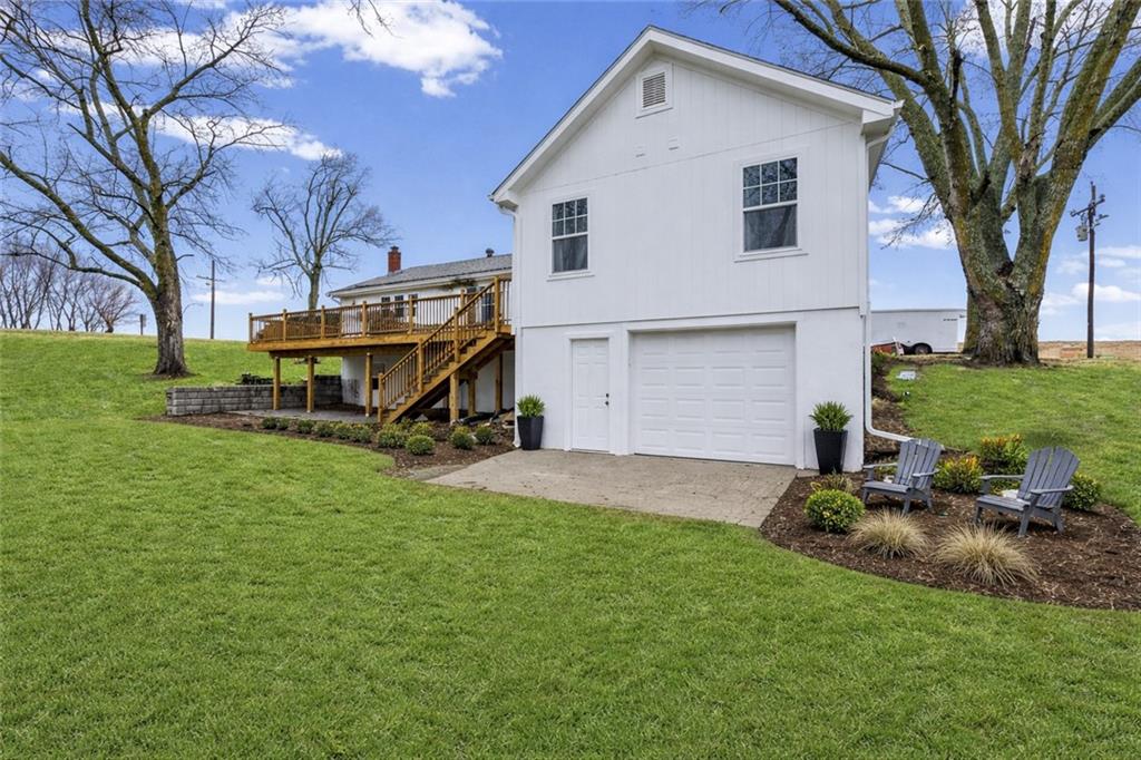 Luxury living meets wide-open space on 1.58 scenic acres in Faucett. Welcome to a home that delivers the privacy of country living without sacrificing style or sophistication. With over 3,400 square feet, 4 spacious bedrooms, and 4.5 baths, this property offers room to breathe, gather, and truly live. From the moment you step inside, you’ll notice the expansive layout designed for both everyday comfort and upscale entertaining. The heart of the home is a stunning kitchen anchored by an impressive 10-foot island, generous prep space, walk-in pantry, and seamless flow into the main living area — perfect for hosting holidays or intimate dinners alike. Natural light pours in, highlighting thoughtful finishes and creating a warm, inviting atmosphere. The main-level suite offers privacy and flexibility, ideal for guests or multigenerational living. Upstairs, additional bedrooms provide comfort and space, while the finished walk-out lower level expands your options — media room, home gym, executive office, or game space. Step outside and experience the true luxury: land. Nearly 1.6 acres of open space offers endless opportunity — outdoor entertaining, a future pool, garden, hobby building, or simply peaceful evenings under wide Missouri skies. The outbuilding adds function to the beauty, giving you room for vehicles, toys, and tools. Located in the sought-after Mid-Buchanan School District with convenient access to major routes, this property combines rural serenity with everyday accessibility. If you’ve been searching for space, privacy, and elevated living — this is it.