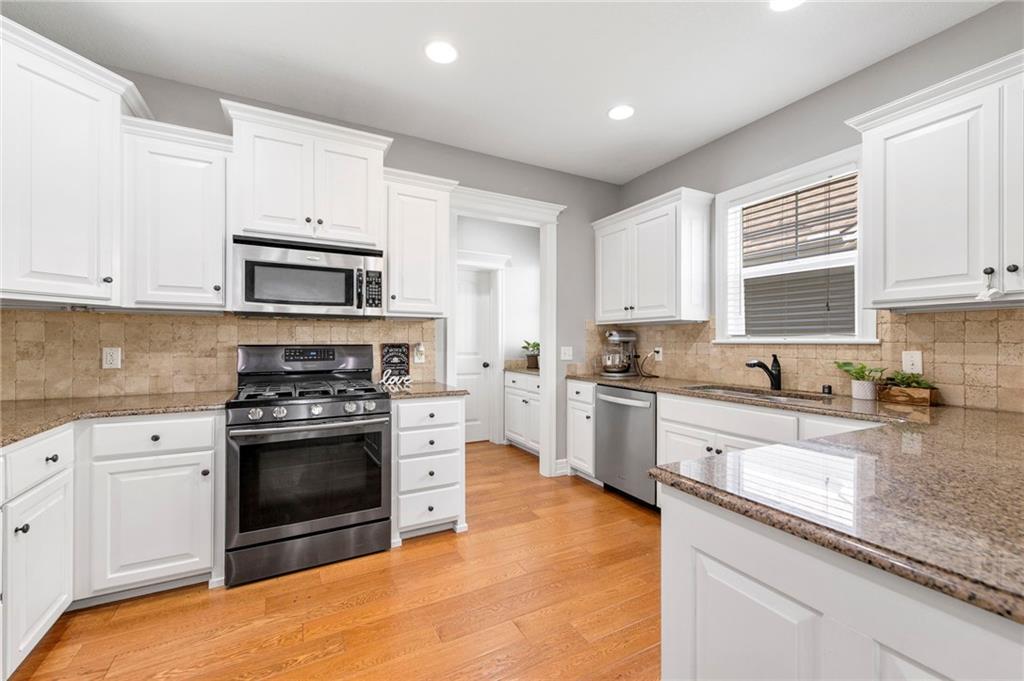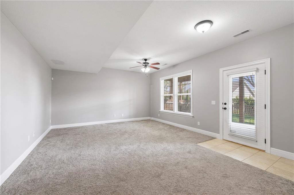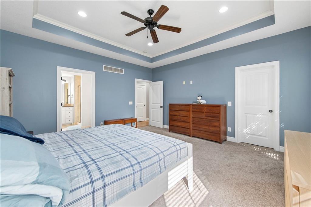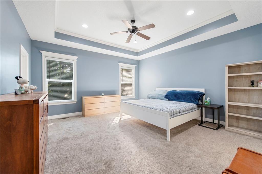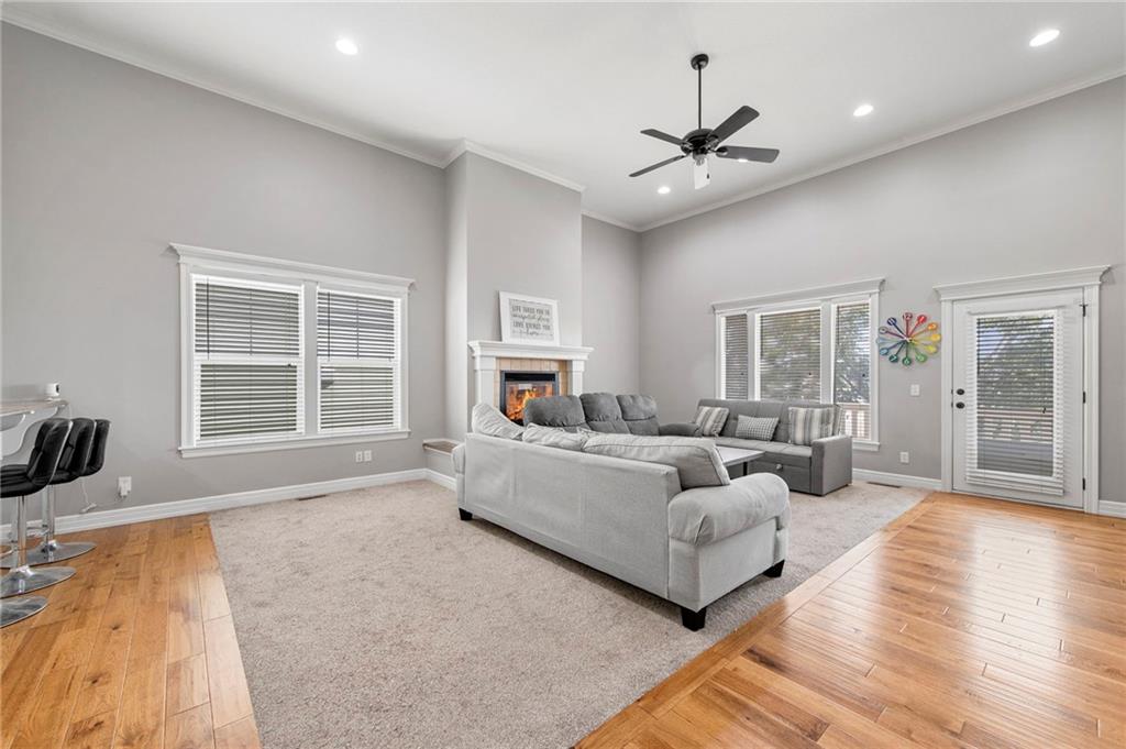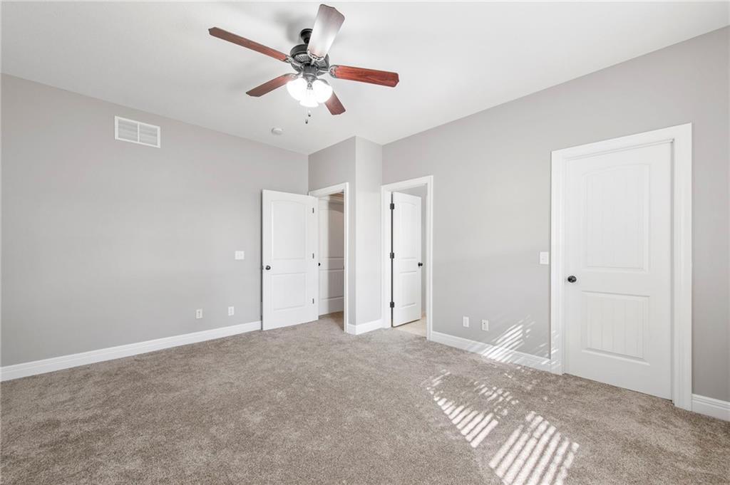 This spacious 1.5-story home in Hutton Farms offers room to gather and spaces to retreat. With over 4,000 sq ft, 5 bedrooms, and 5 bathrooms, the layout balances everyday function with plenty of flexibility. The main level features the primary bedroom, open living and dining areas anchored by a cozy fireplace, while the kitchen offers a pantry and walk-in storage to keep everything organized. Upstairs, 3 generous bedrooms and a second laundry space add convenience for busy households. The walk-out basement extends the living space with a family room, another bedroom, and bath, plus direct access to the backyard. Outside, the fenced yard, deck, and patio provide plenty of room to unwind or entertain, and with lawn care included through the HOA, maintenance is simple and stress-free.