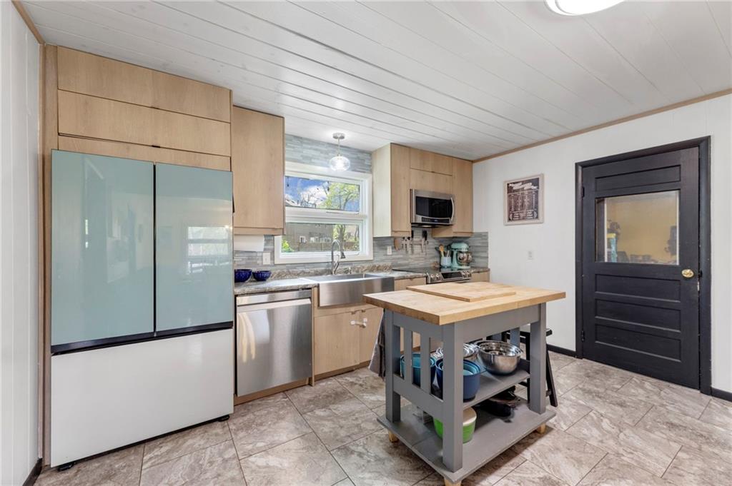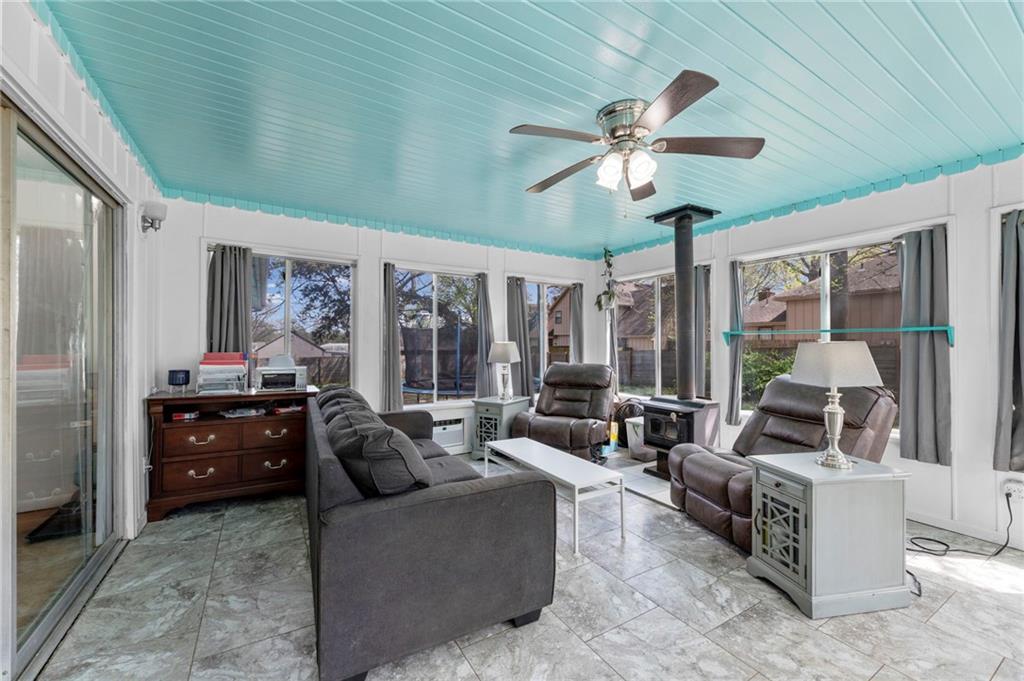 RARE OPPORTUNITY! Beautiful ranch in Overland Park situated on nearly 1 ACRE (M/L)! This sprawling mid-century home welcomes you with an inviting covered front porch and features stylish updates throughout, including a renovated kitchen and fully updated bathrooms. Step inside to a spacious, open Great Room with fireplace—perfect for gathering—and enjoy the light-filled 3-season room just off the main living area. Updated kitchen flows seamlessly into the dining room, making entertaining easy. Primary suite offers a walk-in closet and a beautifully updated en-suite bath with double vanity. Two additional bedrooms, a second full bath and convenient main-level laundry complete the main floor. HUGE finished basement expands your living space with a rec room featuring a wet bar and second fireplace, plus three versatile bonus rooms ideal for a home office, gym, hobbies or non-conforming bedrooms. BONUS: Two staircases—one from the main level and one from the garage—for added convenience and flexibility. Oversized 2-car side-entry garage and a long driveway with extra parking space complete this exceptional property! Unbeatable central location just minutes to parks, dining, shopping and major highway access. WELCOME HOME!