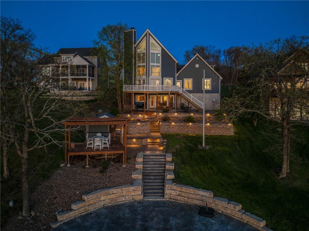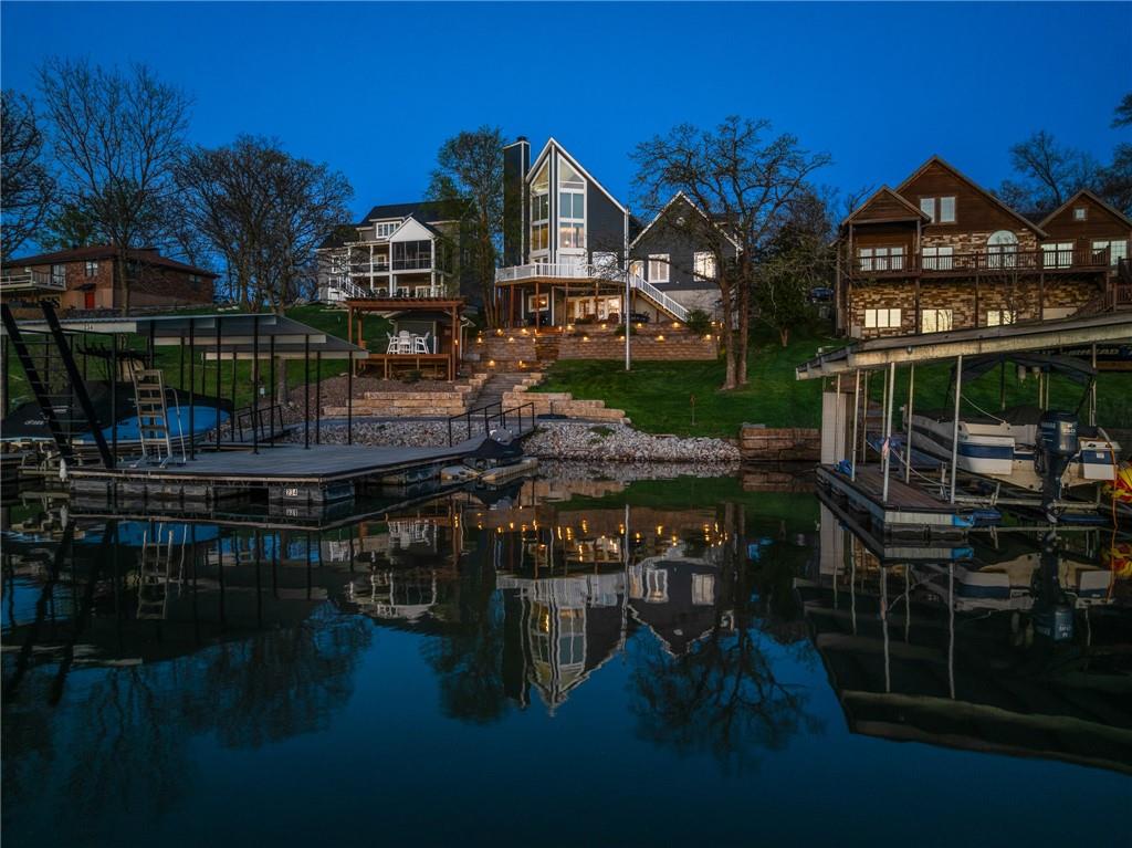 Attention Lake Lovers! Get ready to dive into the ultimate waterfront retreat with this incredible turn-key home featuring breathtaking views and everything you need to start living the lake life immediately. Just bring your suitcase and your lake clothes, the fun starts on day one. This home has been thoughtfully updated with a new roof, new siding, two new HVAC systems zoned for maximum comfort, and some new windows, giving you peace of mind and efficiency year-round. Outside, the concrete boat dock is ready for action with a lift, swim platform, and jet ski port and yes, 2 jet skis are included! A new stone retaining wall frames the lakeside patio, complete with landscaping, a pergola for shaded summer afternoons, and a lakeside shed to store all your water toys. Inside, you’ll find 3 spacious bedrooms plus a bonus bunk room on the main level and a non-conforming 4th Bedroom in the finished basement. With 4 full bathrooms this is perfect for hosting family and friends. The cathedral vaulted ceiling soars 30' high making a stunning first impression, while fireplaces in both the great room and the finished basement create cozy spaces to unwind. The basement wet bar is ready for entertaining after a full day on the water. Need garage space? The nearly 40-foot-deep 4-car garage provides exceptional room for vehicles, boats, and all your lake gear. Beautifully maintained, move-in ready, and packed with upgrades — this lakefront gem truly has it all. Start living the lake lifestyle you’ve been dreaming about!