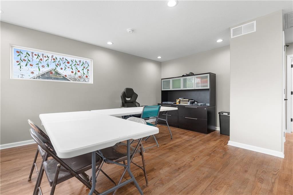 Fully remodeled commercial office building located along high-traffic E 23rd St with strong visibility and access. This property has served the Independence community as a commercial space for over 60 years and has been updated from top to bottom. Recent improvements include new roof, HVAC system, water heater, plumbing, electrical, and all interior finishes. The space features two private offices, updated bathroom with granite countertops, and a kitchen area also finished with granite surfaces. New flooring throughout provides a clean, professional interior suitable for a variety of business uses. Additional features include a garage and storage area below, offering functional space for operations or inventory. The adjacent parcel is included, effectively doubling the lot size and providing potential for additional parking or future use. Located on a busy corridor with consistent traffic exposure. Parking is situated at the rear of the building for convenience.