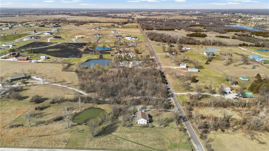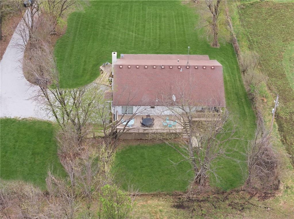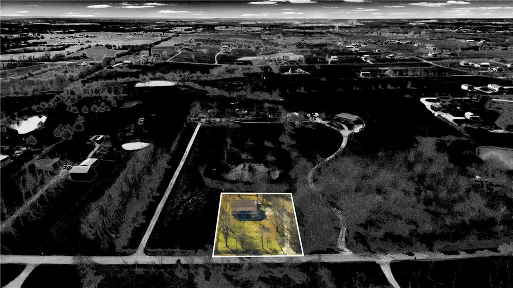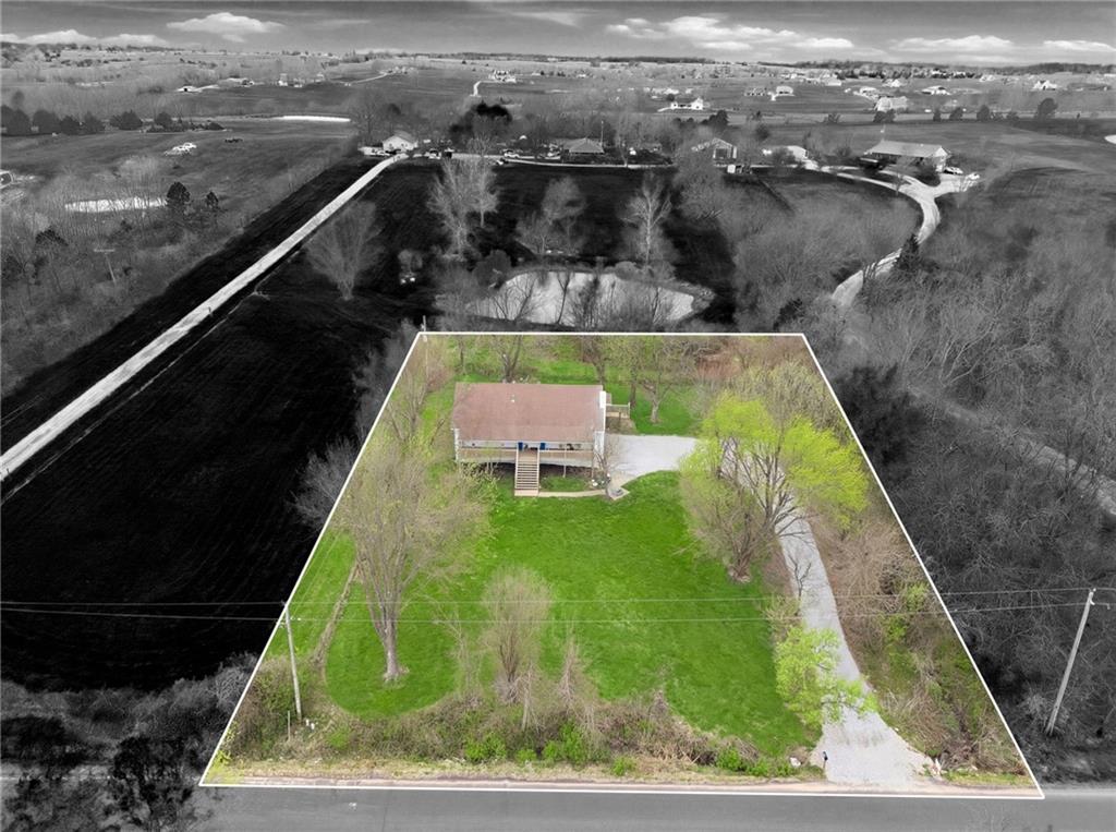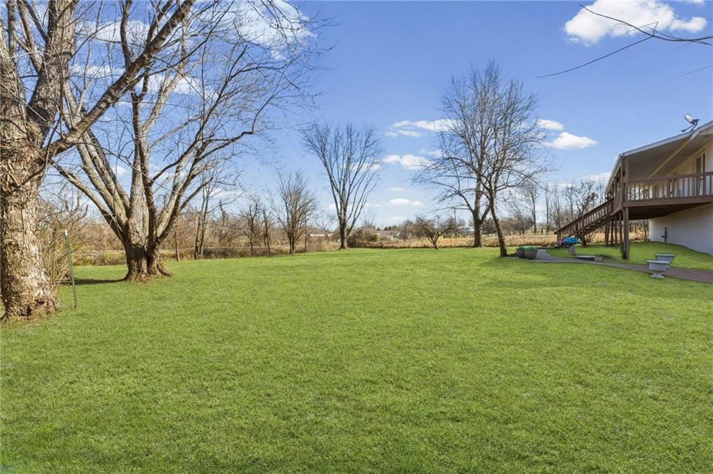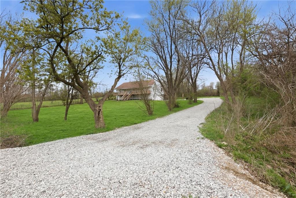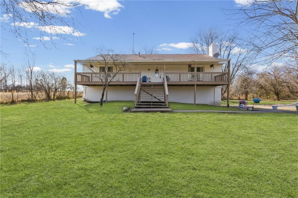NO NEIGHBORS! NO HOA! PERFECT SPOT TO BUILD A WORKSHOP OR OUTBUILDING ON PAVED ROADS! Welcome home to your own private retreat! Tucked back in the trees- sitting on .81 acres, this peaceful property is surrounded by open farmland and shaded by mature fruit trees and berry bushes, offering both beauty and privacy. Enjoy quiet mornings on the massive covered front porch, or entertain on the expansive back deck, accessible from both the living room and the primary bedroom—perfect for relaxing, hosting gatherings, or enjoying evening sunsets. Inside, you’ll find a bright, open floor plan filled with natural light, creating a warm and inviting atmosphere throughout. The home features five generously sized bedrooms, including two on the main level and three additional bedrooms with a full bath on the lower level. The fifth bedroom offers walk-out access, making it ideal for guests, extended family, a home office, second living space, or a private studio—perfect for multi-generational living or flexible use of space. This is a rare opportunity to own a private, nature-filled retreat with room to spread out and enjoy peaceful surroundings. A brand-new driveway entrance will be installed for added convenience. INCREDIBLE LOCATION! Basehor-Linwood School District, Leavenworth County. Minutes from highway access! Country vibes- minutes from everything! Come see this hidden gem for yourself!