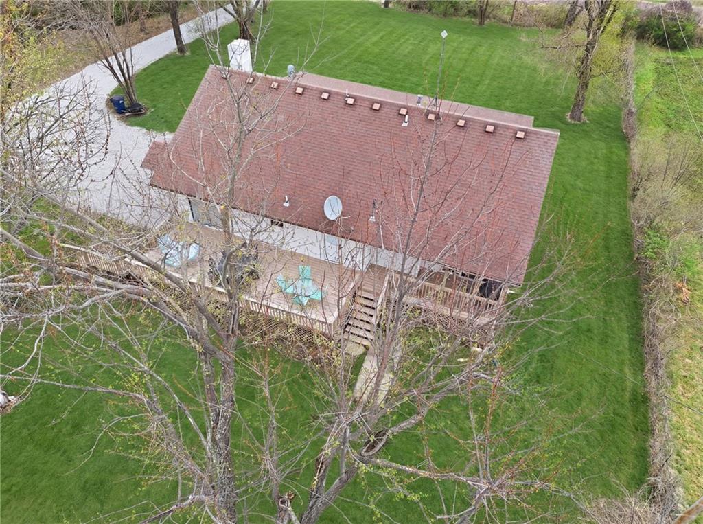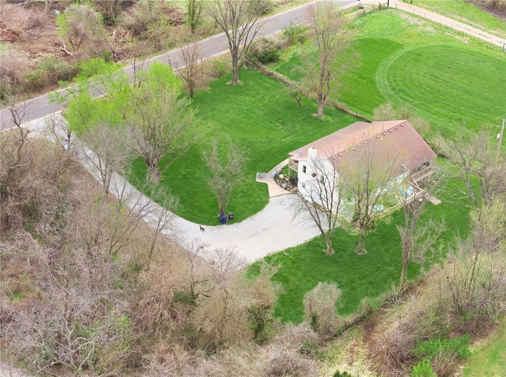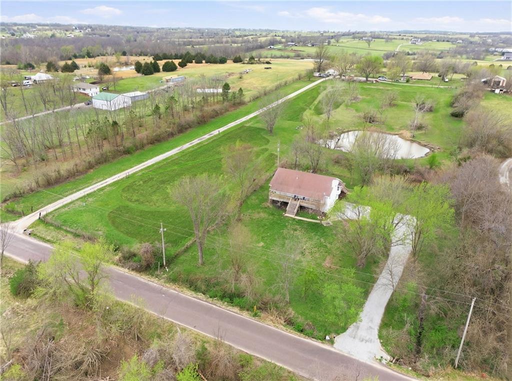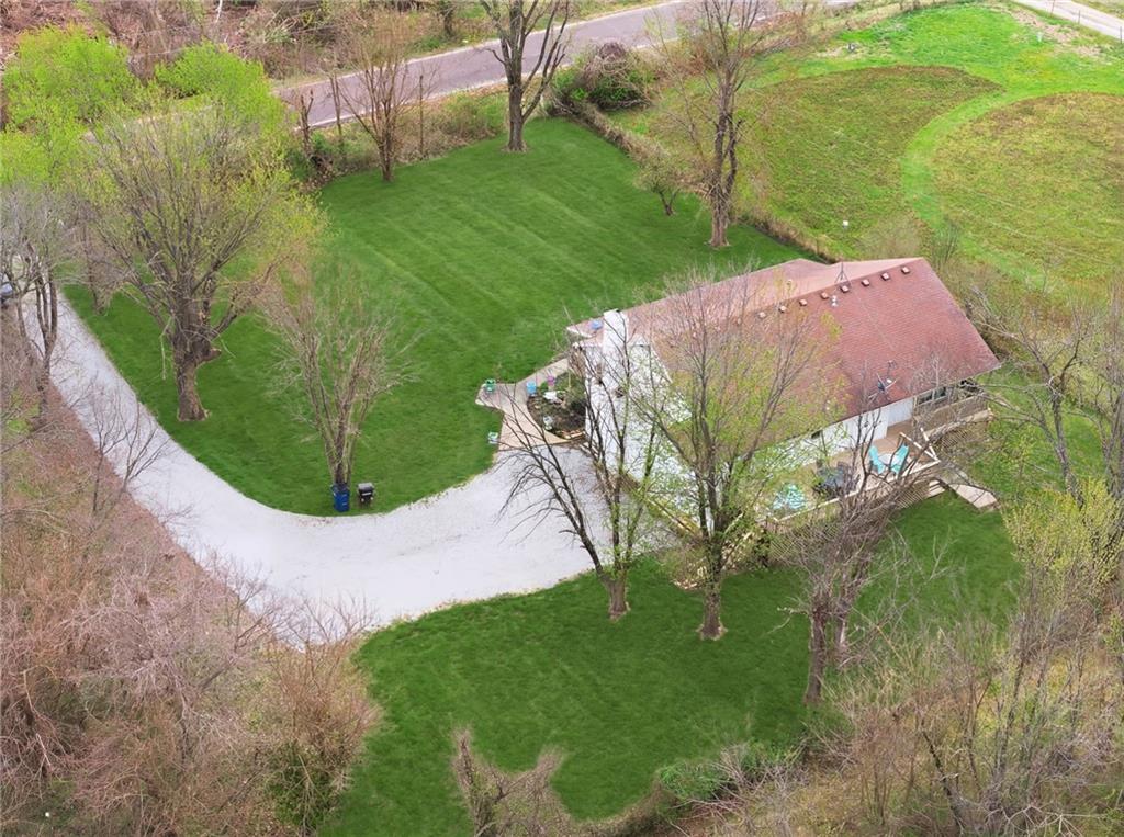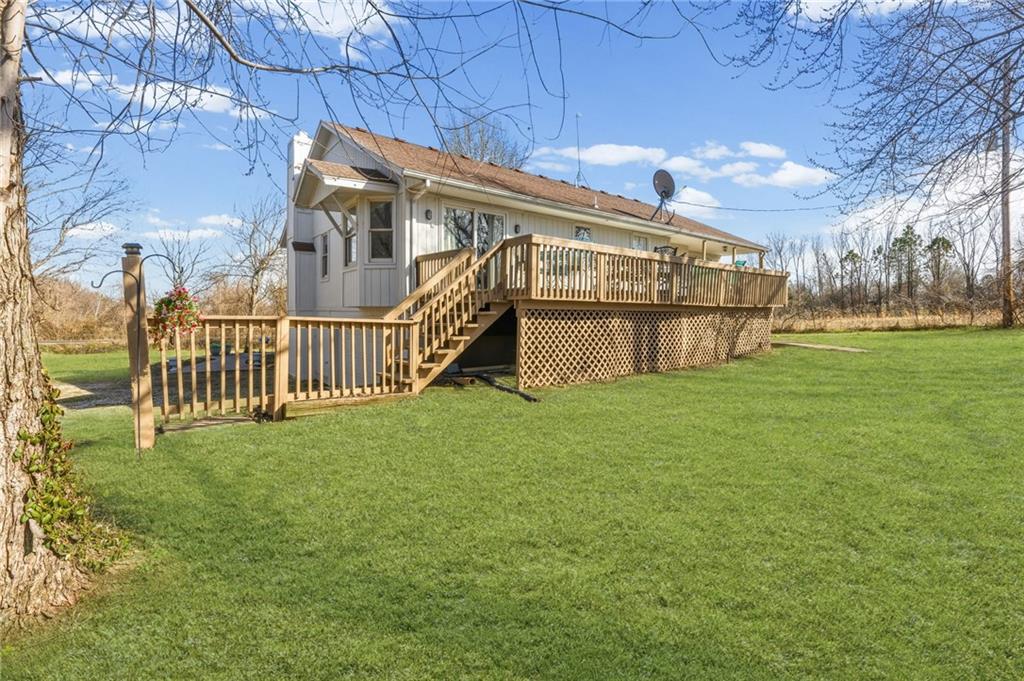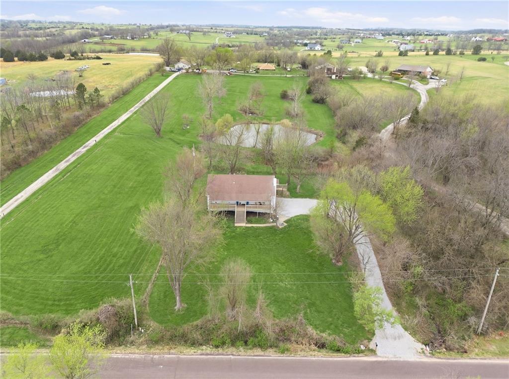 NO NEIGHBORS! NO HOA! PERFECT SPOT TO BUILD A WORKSHOP OR OUTBUILDING ON PAVED ROADS! Welcome home to your own private retreat! Tucked back in the trees- sitting on .81 acres, this peaceful property is surrounded by open farmland and shaded by mature fruit trees and berry bushes, offering both beauty and privacy. Enjoy quiet mornings on the massive covered front porch, or entertain on the expansive back deck, accessible from both the living room and the primary bedroom—perfect for relaxing, hosting gatherings, or enjoying evening sunsets. Inside, you’ll find a bright, open floor plan filled with natural light, creating a warm and inviting atmosphere throughout. The home features five generously sized bedrooms, including two on the main level and three additional bedrooms with a full bath on the lower level. The fifth bedroom offers walk-out access, making it ideal for guests, extended family, a home office, second living space, or a private studio—perfect for multi-generational living or flexible use of space. This is a rare opportunity to own a private, nature-filled retreat with room to spread out and enjoy peaceful surroundings. A brand-new driveway entrance will be installed for added convenience. INCREDIBLE LOCATION! Basehor-Linwood School District, Leavenworth County. Minutes from highway access! Country vibes- minutes from everything! Come see this hidden gem for yourself!