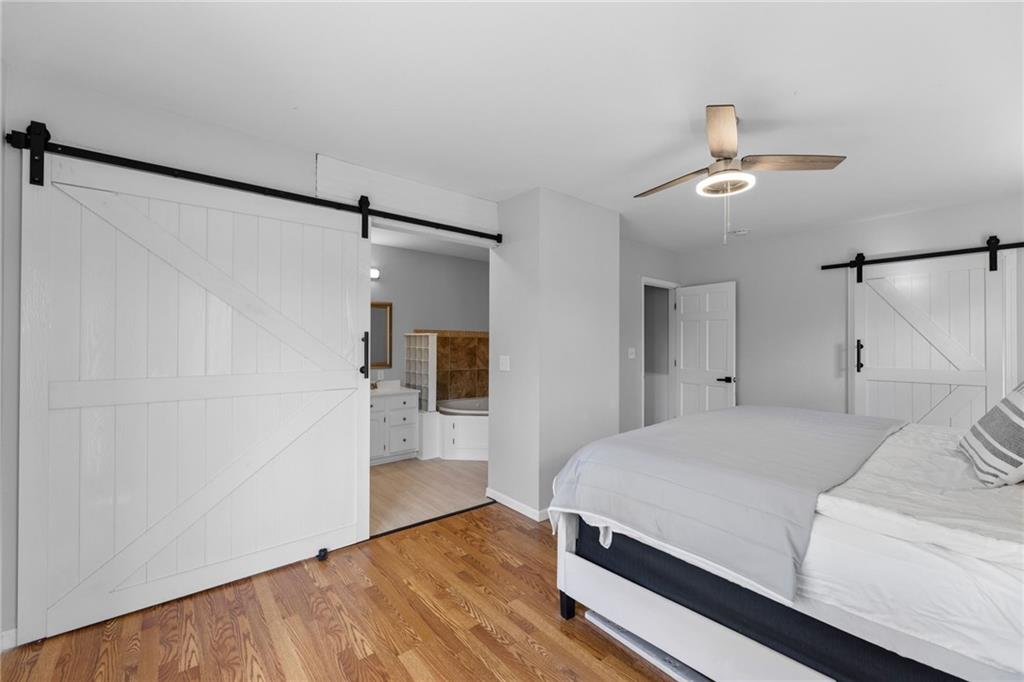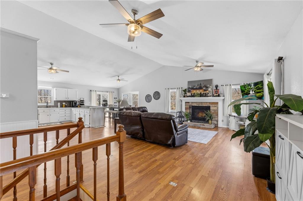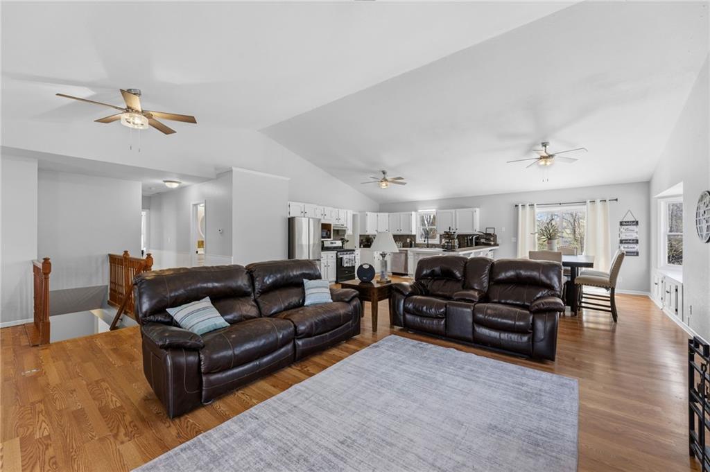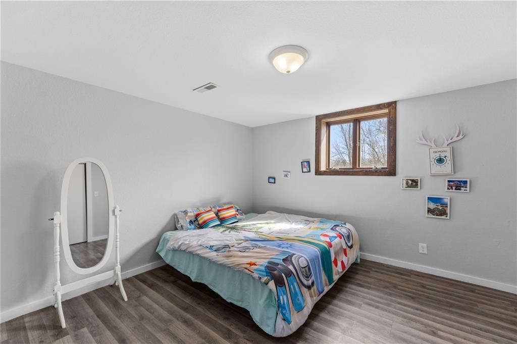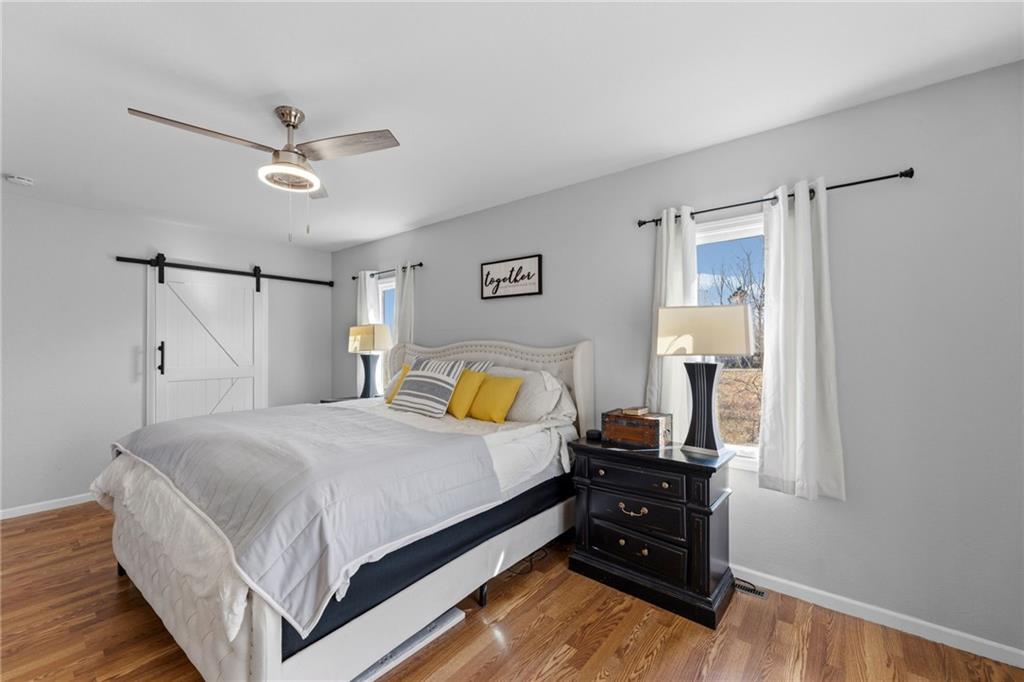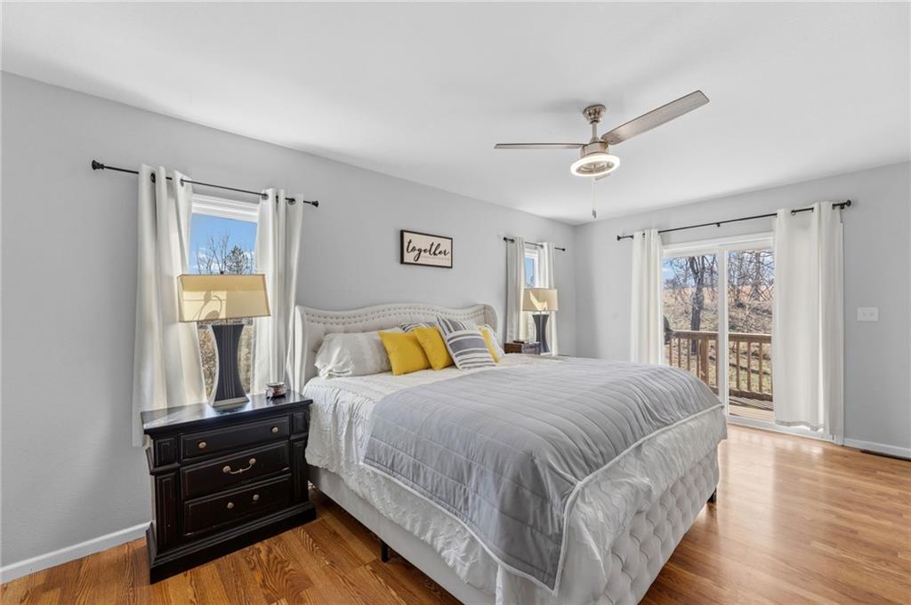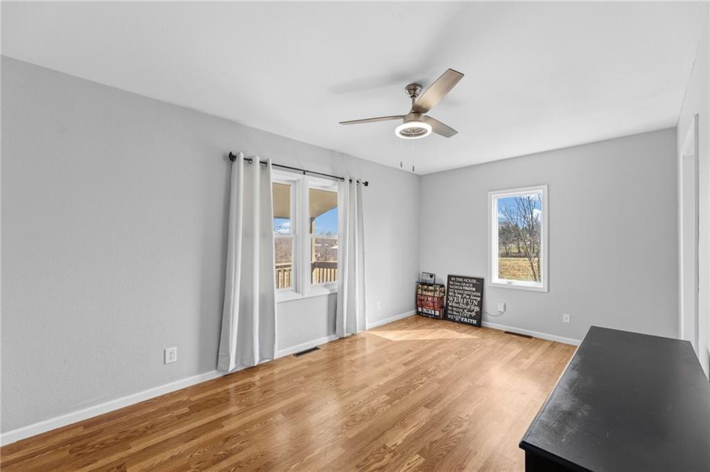 NO NEIGHBORS! NO HOA! PERFECT SPOT TO BUILD A WORKSHOP OR OUTBUILDING ON PAVED ROADS! Welcome home to your own private retreat! Tucked back in the trees- sitting on .81 acres, this peaceful property is surrounded by open farmland and shaded by mature fruit trees and berry bushes, offering both beauty and privacy. Enjoy quiet mornings on the massive covered front porch, or entertain on the expansive back deck, accessible from both the living room and the primary bedroom—perfect for relaxing, hosting gatherings, or enjoying evening sunsets. Inside, you’ll find a bright, open floor plan filled with natural light, creating a warm and inviting atmosphere throughout. The home features five generously sized bedrooms, including two on the main level and three additional bedrooms with a full bath on the lower level. The fifth bedroom offers walk-out access, making it ideal for guests, extended family, a home office, second living space, or a private studio—perfect for multi-generational living or flexible use of space. This is a rare opportunity to own a private, nature-filled retreat with room to spread out and enjoy peaceful surroundings. A brand-new driveway entrance will be installed for added convenience. INCREDIBLE LOCATION! Basehor-Linwood School District, Leavenworth County. Minutes from highway access! Country vibes- minutes from everything! Come see this hidden gem for yourself!
