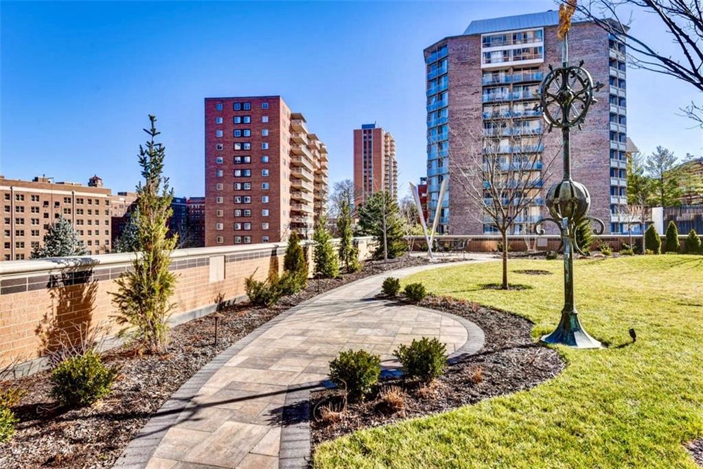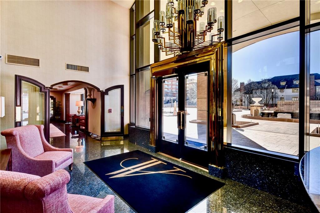 Enjoy the elevated living experience of The Alameda in this 5th floor unit. From the moment you step into the gracious entry, the home’s elevated quality and thoughtful design are immediately apparent. Wrapped along the northeast side of the building with nearly floor-to-ceiling windows, this splendid condominium is filled with natural light and showcases sparkling skyline views. Impeccable finishes are found throughout, including recently refinished hardwood floors, newly carpeted bedrooms, fresh paint, and updated lighting. Designed for both comfortable daily living and stylish entertaining, the home offers generous, well-proportioned spaces. The spacious living room is anchored by a charming fireplace, while the inviting den features substantial custom built-ins. The formal dining room includes a sophisticated built-in sideboard and beverage refrigerator that make it perfect for hosting. The well-appointed kitchen boasts a beautiful island, stainless steel gas cooktop, abundant cabinetry, and excellent workspace for cooking and gathering. The serene primary suite features a custom walk-in closet and a beautifully designed bath with double vanity and an elegant shower. The second bedroom is generously sized with a wall of closets and an adjoining bath, offering comfort and privacy for guests. Additional highlights include a laundry room, utility room, and 2 private storage rooms on the garage level. Residents enjoy exceptional service and amenities including onsite management, 24-hour doorman, and maintenance staff, along with beautifully maintained and recently refreshed community spaces such as a spacious lobby, sunroom, recently renovated gardens with grilling area, and a private pet run. This is a rare opportunity to enjoy luxury, convenience, and timeless styling at one of Kansas City’s most desirable locations, especially in this price range.