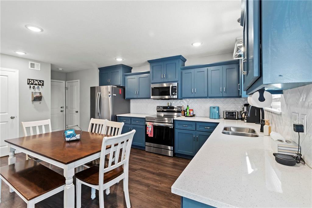 4 years young home with so many upgrades! This home features a beautiful open kitchen, huge level back yard, finished basement with bedroom and bathroom and more. Nestled perfectly in an established neighborhood with convenient highway access, nearby shopping and great schools. Don't miss the custom blue cabinets, quartz countertops, stellar floors and amazing natural light.