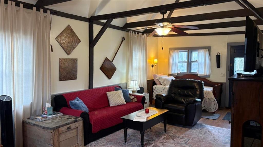 Step into the historic charm and character of small-town living at 602 High St. in historic Arrow Rock. It is nestled in one of Missouri's most picturesque villages, which is home to the Arrow Rock Lyceum Theatre. This inviting cedar-sided cottage offers timeless appeal with the comfort of everyday living. It is furnished and move-in ready, with 1 bedroom, a spacious living room with a vaulted ceiling, a fully equipped kitchen, and a full bath. Additional amenities include central air, front & back decks, a firepit & a double lot--perfect for relaxing and entertaining. Sellers state the property has been a popular vacation rental when they are not in residence. Whether you want a full-time residence, weekend getaway, or investment, this property places you right in the center of a community rich in historic character. Enjoy peaceful surroundings, walkable streets, and the unique character that makes Arrow Rock a beloved destination. The lot includes a black walnut tree and paw paw trees. Two old cornerstones near the back mark a house that burned in the early 1900's. Sellers state that this home was moved from the state park in the l970's.