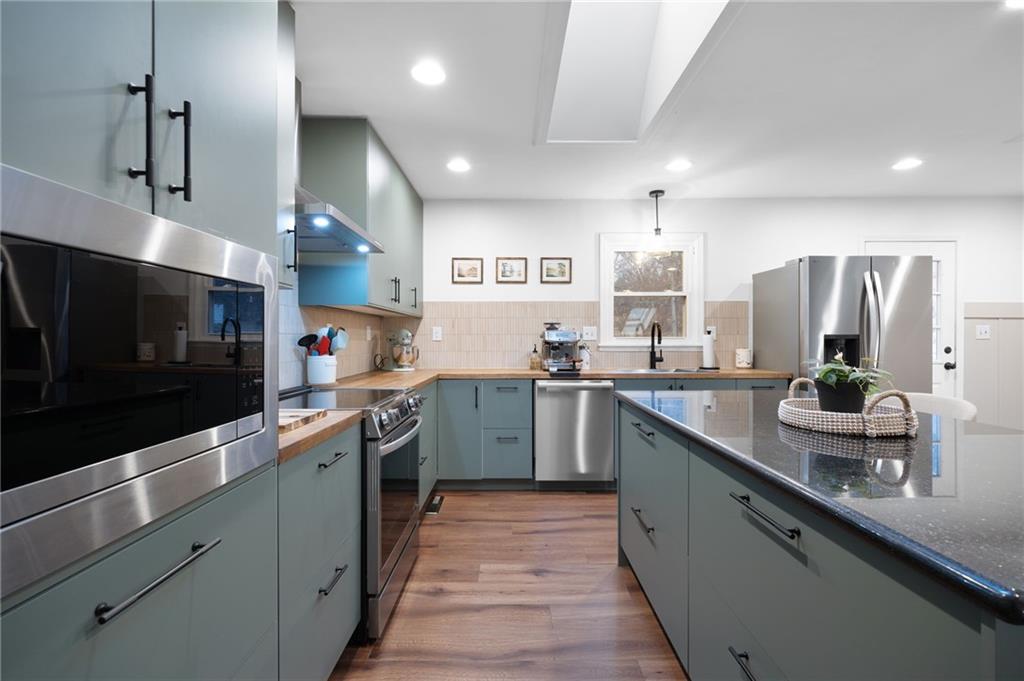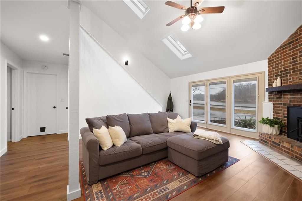 LIVE ON THE LAKE!!! 511 Southwest Drive is the kind of Warrensburg listing that actually feels different the moment you pull up—distinctive architecture, vaulted ceilings, and a wood-burning fireplace that gives the main living space real warmth and character. Set on Lyons Lake, the home captures a beautiful lake view, with a private deck off the remodeled primary suite—an ideal spot for coffee at sunrise or a quiet nightcap over the water. Inside, the kitchen has been fully updated within the last year with new cabinetry, granite countertops, an island, and all-new stainless steel appliances—fresh, functional, and ready for daily life or entertaining. The primary suite has also been remodeled and includes a walk-in closet, plus the home offers two full bathrooms. It’s a 2 bed / 2 bath layout with an additional non-conforming bedroom downstairs—perfect for an office, hobby space, guest room, or workout area. For peace of mind, the HVAC system has been fully replaced within the last five years, and the home has a new roof. Out back, you’ll find what’s hard to come by: a large fenced backyard that backs to woods for extra privacy and frequent deer sightings, along with a second deck made for grilling, lounging, and soaking up the view. And the location is a standout— steps from walking trails, a park, playground, and the golf course at Pertle Springs, plus convenient access to UCM and Whiteman AFB, all in a highly desirable neighborhood.