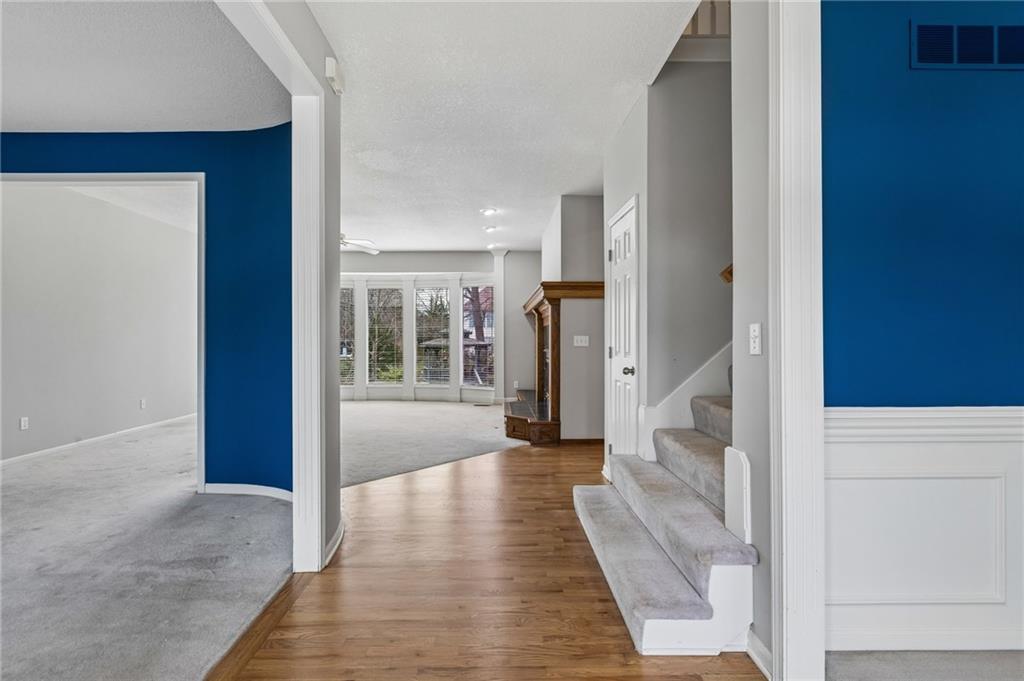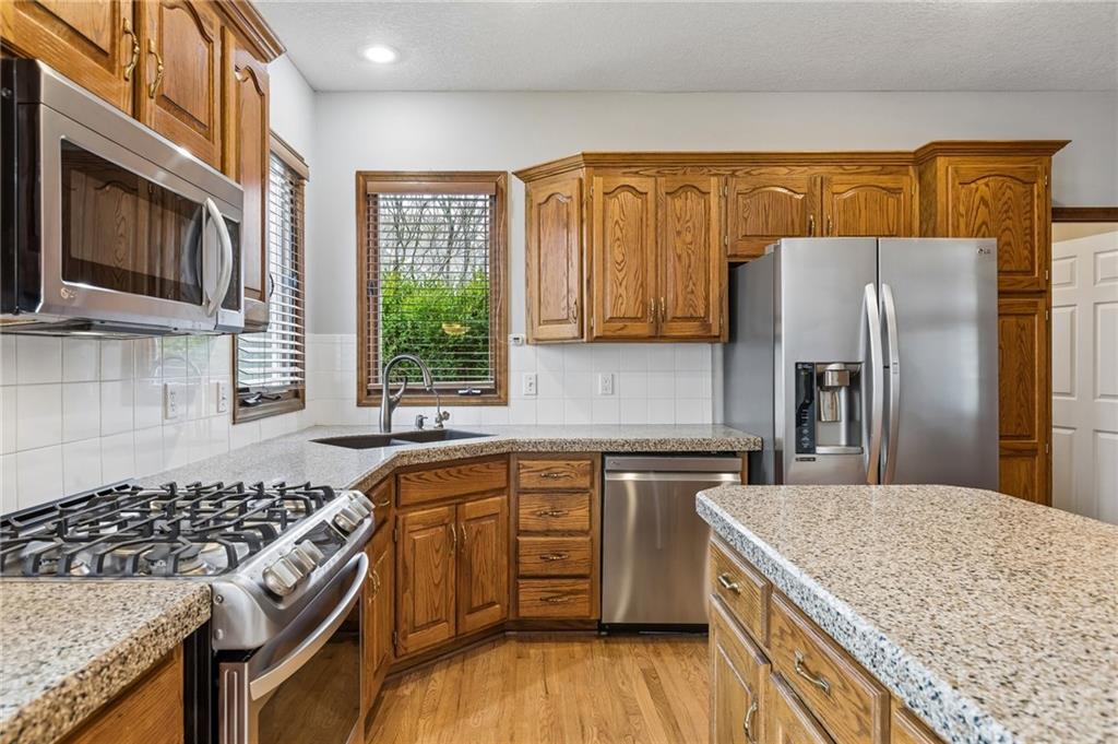 Step into this lovingly maintained, one-owner retreat in the heart of the Hills of Monticello. This traditional two-story home offers three levels of space designed for real life, starting with a main floor that balances tradition & flexibility. Host holiday meals in the formal dining room or transform the flex space into a cozy reading nook, a dedicated playroom for the kids, or a quiet home office. The heart of the home is the great room, where 5 floor-to-ceiling windows frame peaceful views of the backyard. A cozy see-through fireplace connects this space to the hearth room & an updated chef’s kitchen, complete with granite counters, a five-burner gas range, & a breakfast area that opens directly to the patio—perfect for summer BBQs. Upstairs, space is never an issue with 4 generous bedrooms. Guests will love their private suite, while the kids can enjoy the convenience of a Hollywood bath. The true showstopper is the 26x22 primary sanctuary, featuring 13-foot soaring ceilings & a spa-like bath with 2 rainfall showerheads, a jetted tub, and a double-sided fireplace for ultimate relaxation. Lower-level living gets an upgrade with a finished walk-out basement featuring a family room and bar. Step outside to your private oasis: a black-iron-fenced backyard complete with a tranquil waterfall, pond & gazebo—imagine the summer evenings here! Zoned HVAC keeps all levels comfortable. New Roof! Located on a quiet corner lot with a 3 car garage, you’ll enjoy the safety of a one-way-in neighborhood with a pool & playground & a community calendar full of homeowner activities. Best of all, you can walk the kids to school at English Landing, Lakeview or St. Therese. This property is located in unincorporated Platte County, and residents pay no E-tax. Traveling for business or pleasure? Your commute to the Airport is less than 15 minutes. Quick access to Downtown Parkville, Burlington Creek & Zona Rosa for all of your shopping, amenities & community activities.
