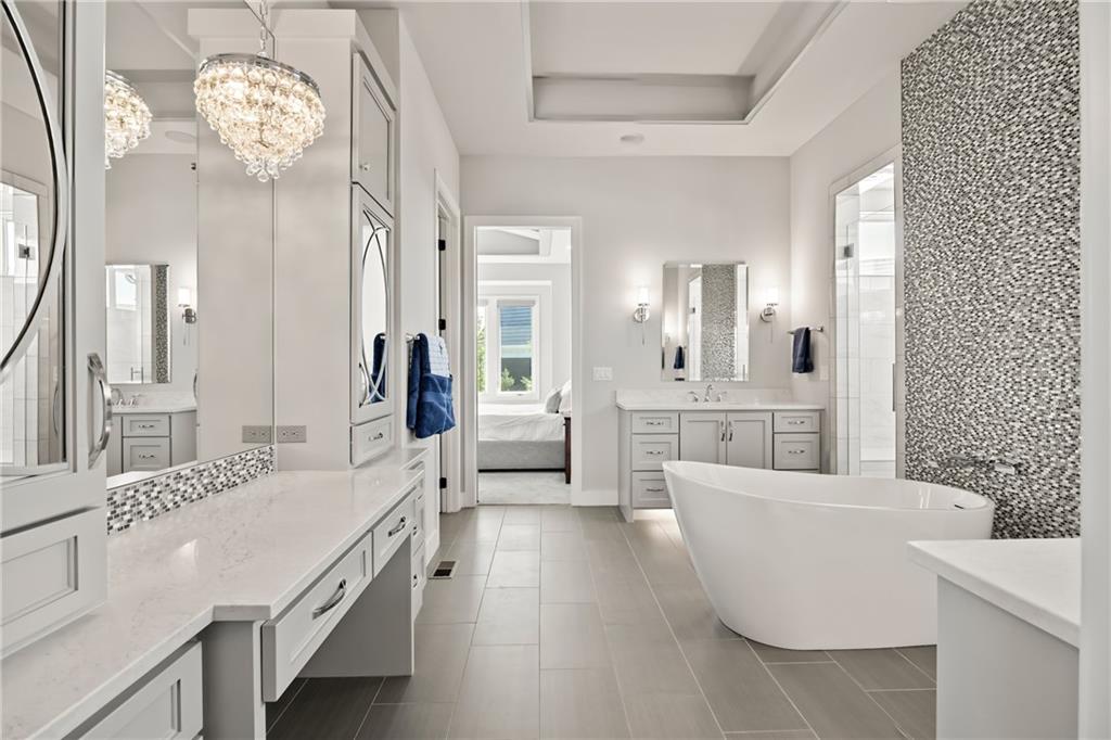 Amazing one and a half story home with a full finished walkout basement in Mills Ranch ready for quick move-in. This nearly new, 3 year old Willis Custom Built home is a stunner with a spacious vaulted main floor living space, impressive curved staircase, arched doorway to the great room, unique 2nd bar, theater room, screened in lanai sun porch, walk in double shower with freestanding tub, huge 4 car split garage with high lift doors, dog wash, pocket office, premium sound system and smart tech package. So many unexpected extras in this home around every corner. This 1.5 Story floor plan features a main floor primary suite with luxurious spa bath with with white quartz and mini tiles. Must see! Upper level offers private spaces with loft, second laundry and two premium bedrooms loaded with extra features and upgraded baths. You'll love the fully finished walkout lower level with LVT flooring, movie room, wet bar and 4th bedroom. This upscale home sits on a corner lot with a side entry four car garage and a front circle drive. Beautiful landscaped and fully fenced unique backyard allows for you to access from the main level and walkout on the side. Move right in to this amazing home located in Mills Ranch with a new neighborhood pool, and easy access to the Johnson County walking trails and quick access to Highway 69. All the luxuries of a new home are already added including premium window coverings, fenced yard, water bottle filler, built in side-by-side refrigerator and premium sound system. Why build when you can move right into this award-winning Willis Custom Home. Blue Valley School District