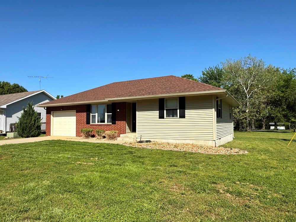 Perfect locations do exist! Check out this low maintenance property nestled into a cul-de-sac on the south side of El Dorado Springs. This 2 bed, 1 ¾ bath home is ready for its new owner. The home features 1,116 square feet, built in 1995, in a super-efficient floor plan design. The kitchen-dining-living room space is open and roomy. The kitchen has been updated with painted cabinets and stainless steel, Samsung appliances including the refrigerator, oven/range, dishwasher, and microwave. The entire home has vinyl or LVP flooring, so any clean-up is easy and quick. The bedrooms and bathrooms have ADA compliant doors and give plenty of space for maneuverability. The two bedrooms sit at the end of the hallway, and the master bedroom has its own private bathroom including a walk-in shower unit. A utility room/mudroom sits just off the kitchen and gives access to the single-car garage or the back patio area with a comfortable back yard. Locations like this are difficult to find, so act quickly on this fantastic property!