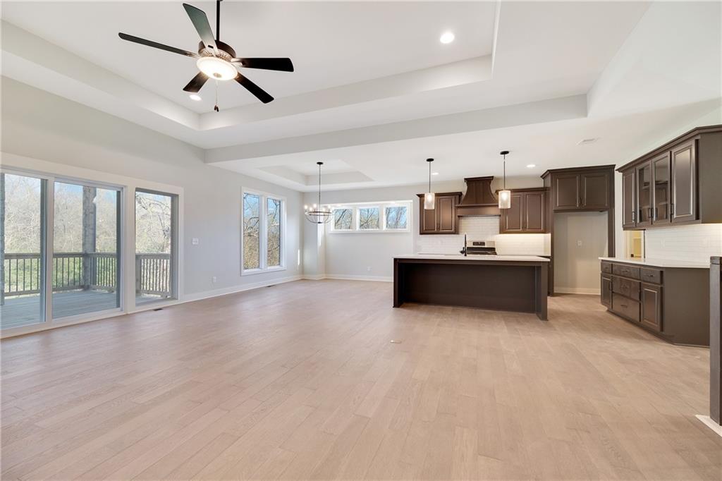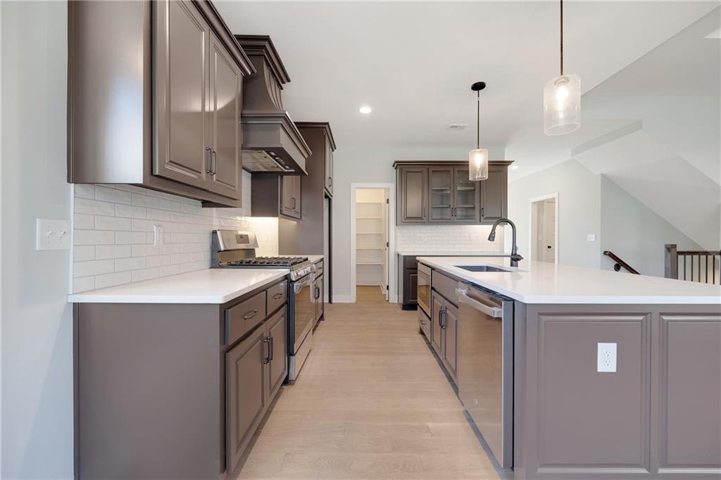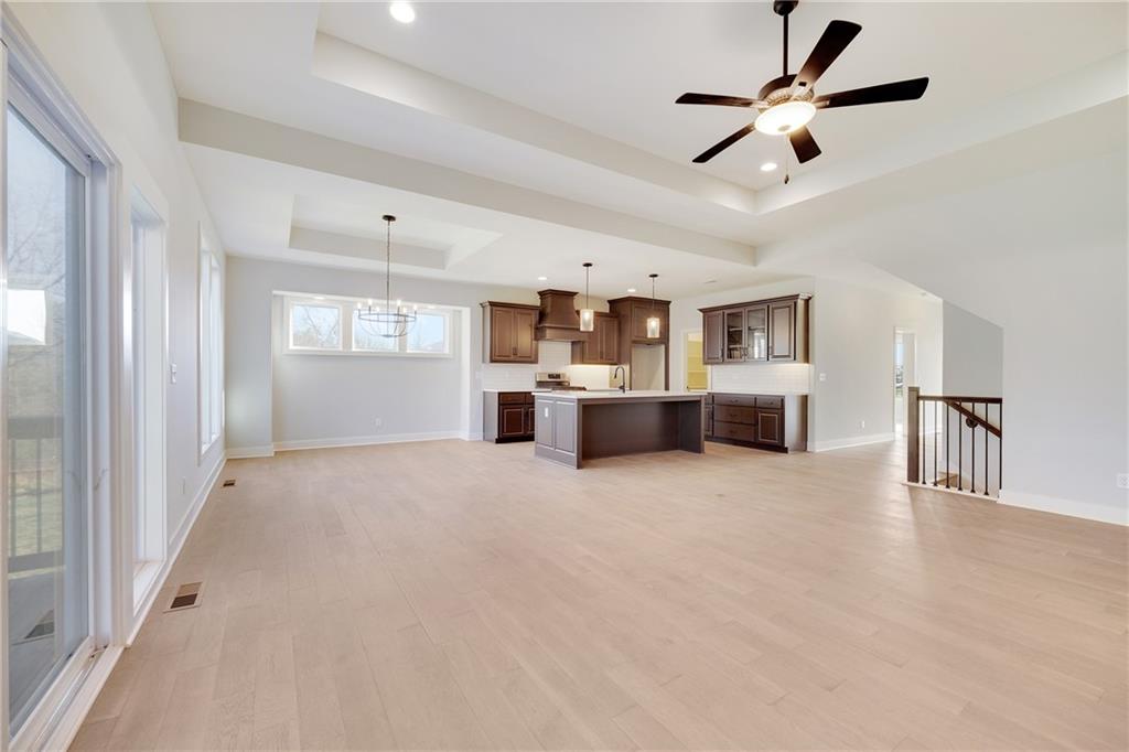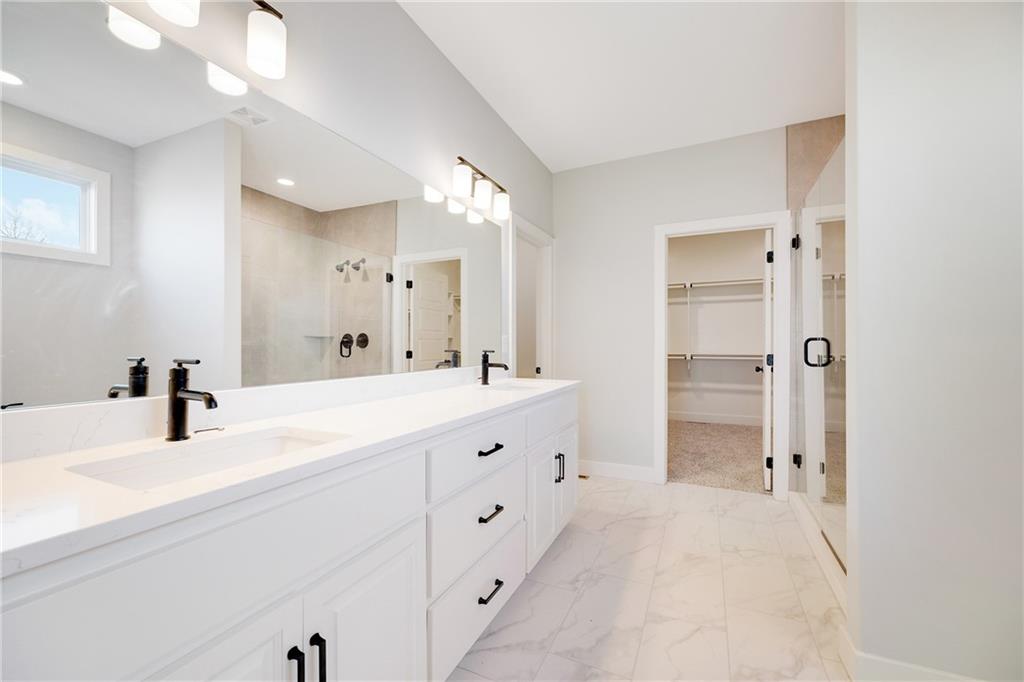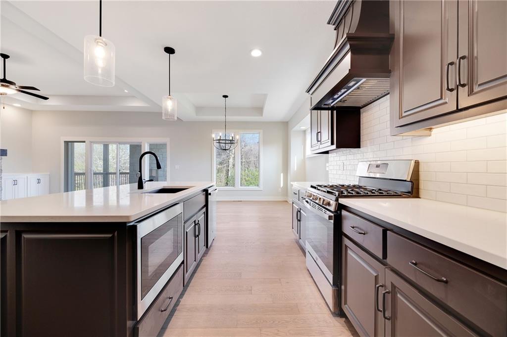 This stunning 1.5-story home blends luxury, comfort, and thoughtful design throughout. Offering 5 bedrooms and 4.5 bathrooms, the home provides the perfect layout for both everyday living and entertaining. The main level features a spacious primary suite with a spa-like bathroom retreat, along with an additional bedroom ideal for guests, a home office, or flexible living space. The open-concept living area showcases soaring ceilings, a dramatic floor-to-ceiling stone fireplace, and expansive windows that fill the home with natural light. The chef’s kitchen is the heart of the home, featuring rich cabinetry, granite countertops, stainless steel appliances, a large island with seating, and an oversized walk-in pantry. Upstairs, two additional bedrooms provide privacy and comfortable accommodations for family or guests. The finished lower level offers even more living space with a large recreation room, fifth bedroom, full bathroom, and generous storage—perfect for a guest suite, media space, or teen retreat. Step outside to enjoy the covered deck complete with a beautiful stone fireplace, creating the perfect setting for relaxing or entertaining while overlooking the peaceful wooded backyard. With a spacious three-car garage, modern finishes throughout, and a versatile layout designed for today’s lifestyle, this home truly offers the perfect blend of elegance and functionality.
