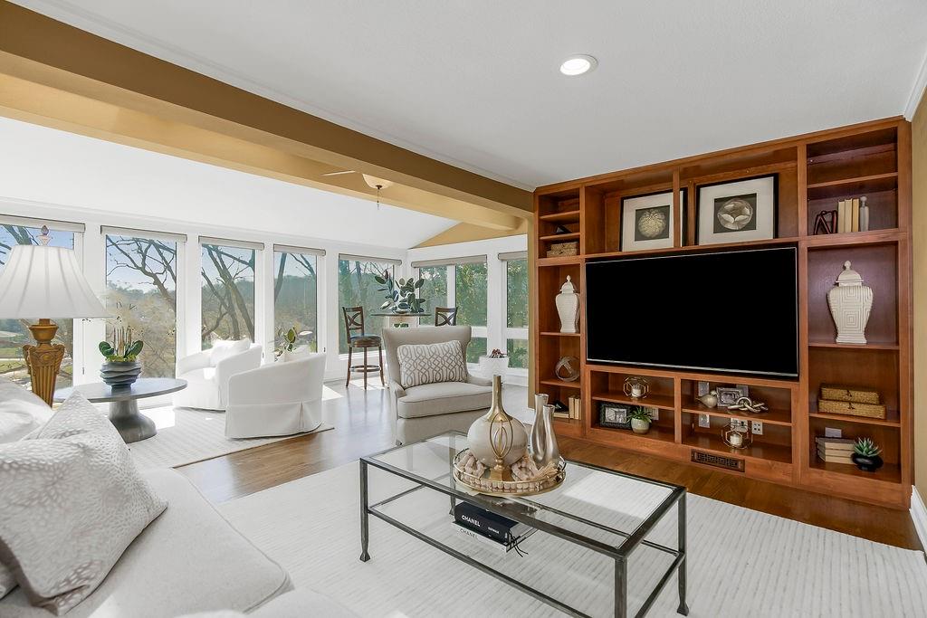 Located on a quiet cul-de-sac, this incredible home is designed for entertaining & everyday living. You are welcomed by a front entry that flows seamlessly into an exceptional great room featuring a dramatic wall of newly updated windows showcasing breathtaking lake views. The space is filled with natural light & includes a wet bar, making it perfect for hosting gatherings. The oversized dining area is ideal for large family dinners or entertaining friends. The beautifully updated kitchen is truly a chef’s dream, complete w/quartz countertops, a farmhouse sink, a warm hearth sitting area around the fireplace. If you love natural light & windows, you will fall in love with this home. Enjoy peaceful mornings on the screened porch while watching the sunrise over the lake. The main floor also includes a guest bedroom & full bath, providing convenience & flexibility. An open staircase leads to the impressive primary suite, where the views will absolutely take your breath away. This stunning retreat features new windows, a gas fireplace, hardwood floors, vaulted ceilings, and a private coffee bar area. An attached office or hobby room offers additional space within the suite. The primary bath includes 2 separate private vanity areas & walk-in closets, w/the shower & toilet area centrally located. The finished walkout lower level offers additional living space w/a family room, bedroom, full bath, and an unfinished storage area. Dock site #190 for all your water fun. Lake Quivira offers 24/7 professional security and an unmatched lifestyle with unlimited access to the pristine lake for boating, sailing, fishing, swimming, and hiking. Residents also enjoy a championship golf course with a state-of-the-art practice facility and golf simulator, tennis courts, indoor tennis facilities, pickleball courts, swimming pool, sauna, and horse stables. The community center and clubhouse provide wonderful gathering spaces for events and social activities. Live where you play