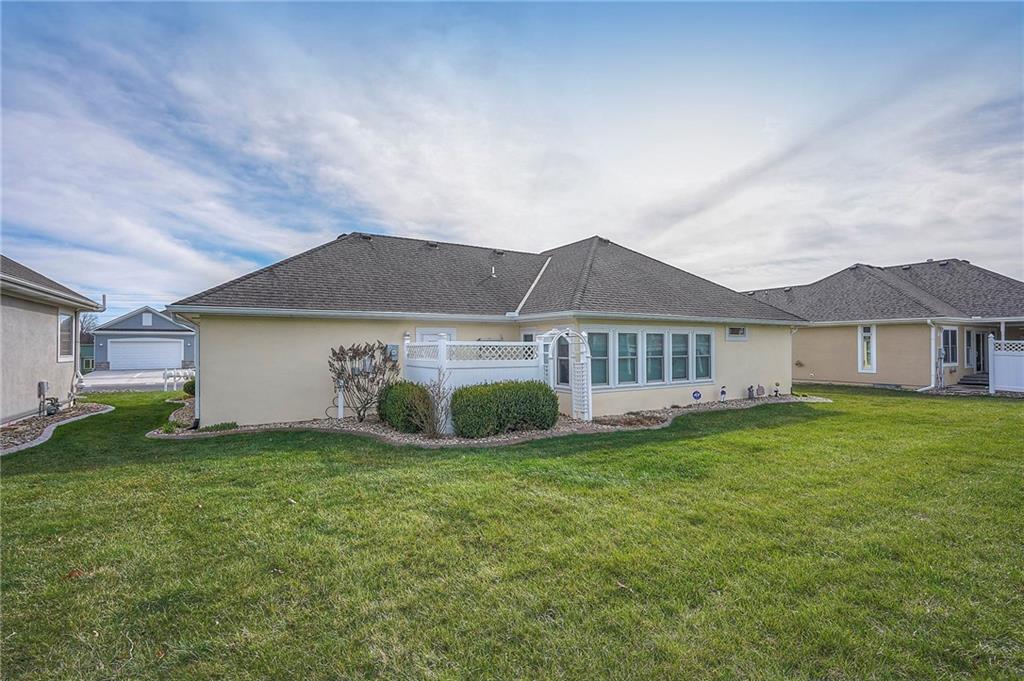 Great 55 and older community. The front of the home has a nice covered front porch. Beautiful oak woodwork thru out this neat wheel chair accessible home. Unique open floor plan. Cozy fireplace in great room, open to nice size kitchen, stainless steel appliances, lots of cabinets, island bar, large hidden walk-in pantry & laundry area, leads out to the large 2 car garage. The master bedroom is nice size with over size shower. Bedroom 2 is also a nice size with a bay window and large closet. The sunroom has a lot of newer windows that provide a lot of comfort and light, and underneath the rug covering there is tile. It leads out to a nice patio area.