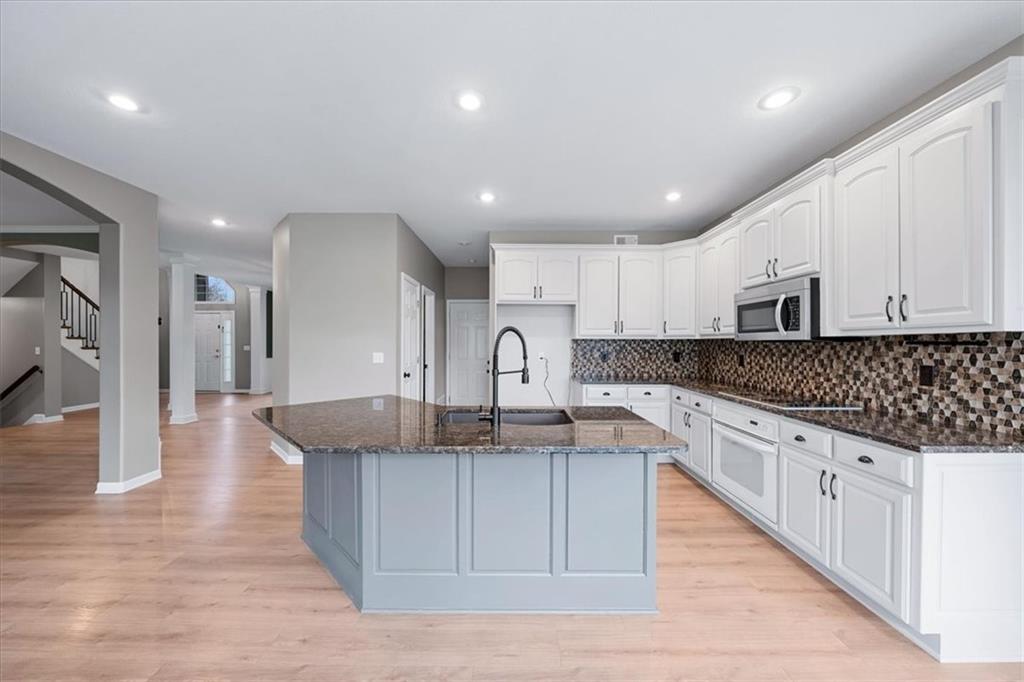 Hurry to see this beautifully updated home with 3-car garage, 4 bedrooms & 3-full bathrooms upstairs, conveniently located near Lee’s Summit and Blue Springs! From the moment you enter, you’ll notice the newer engineered wood floors, stunning arched doorways, and the updated fireplace wall in the family room. The home feels open and airy with a dramatic two-story entry and floor-to-ceiling windows that fill the space with natural light. All bedrooms are generously sized and feature private bathrooms and walk-in closets, offering comfort and privacy for everyone. The spacious kitchen includes an island, informal dining area, and pantry—perfect for everyday living and entertaining. A major bonus is the natural gas–powered automatic whole-home generator, providing peace of mind year-round. The finished lower level features unique stained concrete flooring, solid maple cabinetry, solid surface countertops, a half bath, and a large living area ideal for recreation, entertaining, or relaxing. Step outside to an extra-large fenced yard located on a quiet cul-de-sac. Enjoy the covered patio, firepit, and one of the largest and most beautiful yards in the neighborhood—perfect for outdoor gatherings and summer evenings. Residents also enjoy access to the neighborhood pool, making this home the perfect place to relax and enjoy the seasons.