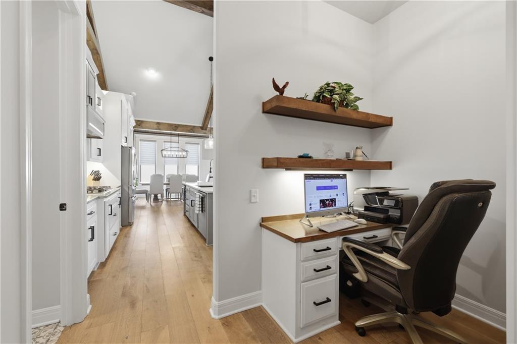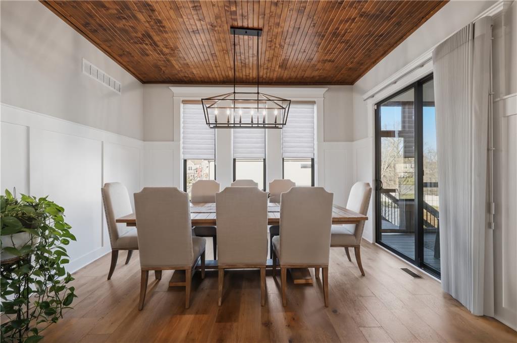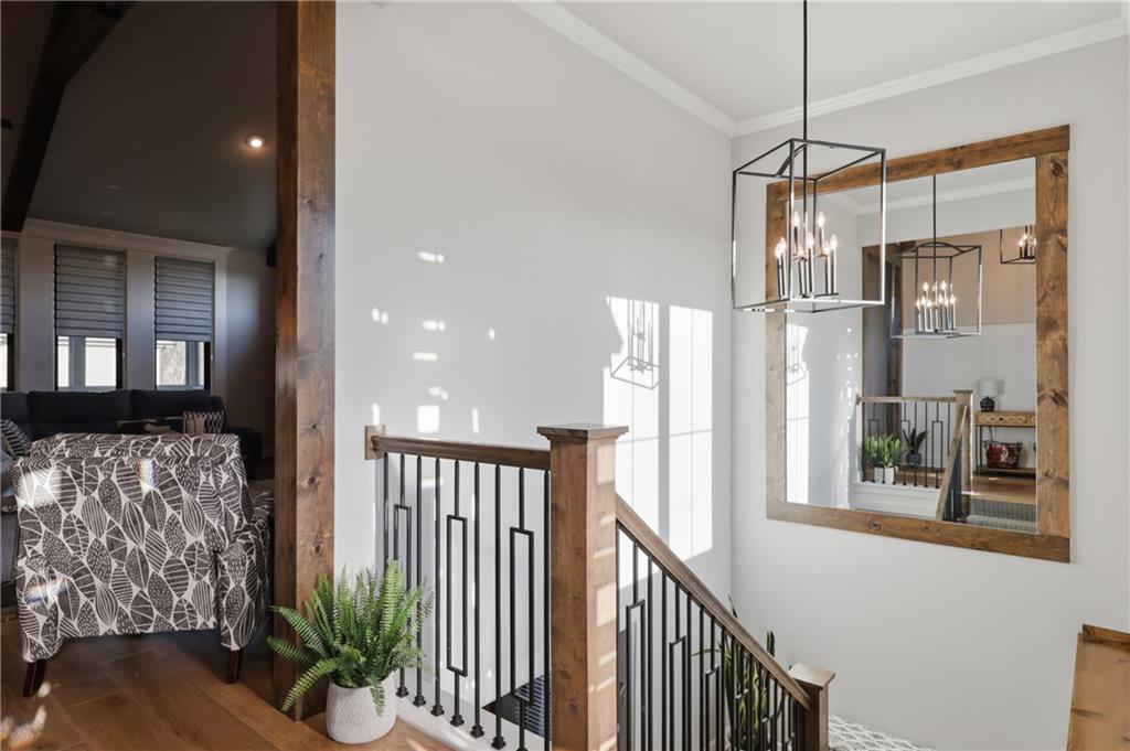 Beautiful custom-built, one-owner reverse 1.5 story offering quality craftsmanship and thoughtful upgrades throughout. This stunning home features soaring ceilings with exposed beams, creating a warm and inviting open floor plan. The spacious kitchen is equipped with high-end KitchenAid appliances, ample cabinetry, and flows seamlessly to an enclosed deck just off the kitchen—perfect for relaxing or entertaining. Enjoy the comfort of heated floors, custom blinds, tankless hot water, and dual-zoned HVAC for year-round efficiency. The main level offers generous living space while the finished walkout basement expands the home with additional living areas, bar, and plenty of room for guests or entertaining. This home includes 3 bedrooms and 4 bathrooms, providing space and privacy for everyone. You will appreciate the oversized 3-car garage featuring durable epoxy floors. Enjoy a lush, well maintained lawn made easy with a full ground sprinkler system. A rare opportunity to own a beautifully maintained custom home with premium upgrades and exceptional attention to detail.