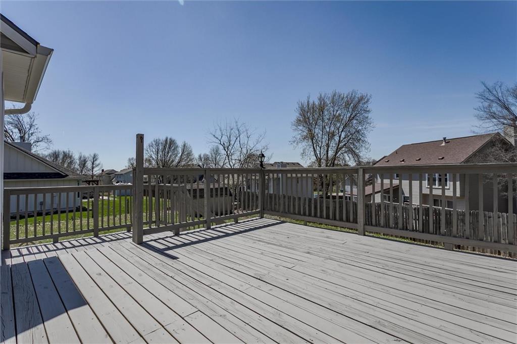 Welcome to this updated 2-story home in Bonner Springs offering a functional layout, natural light, and flexible living spaces. The main level features a spacious living room with a beautiful stone fireplace and built-in shelving, creating a warm and inviting gathering space. The open kitchen showcases vaulted ceilings, ample cabinet storage, built-in desk, and great window light, with easy access to the newly repaired and painted back deck—perfect for outdoor dining or entertaining. A separate dining area sits just off the entry, and the main-level laundry adds everyday convenience. Recent updates include fresh interior paint, knock down ceilings, new carpet in living room and primary bedroom, luxury vinyl plank flooring, new remote control LED ceiling fans, and new LED can lights, giving the home a clean, modern feel. Upstairs, the primary suite features a tray ceiling, double vanity, soaking tub, separate shower, and skylight for additional natural light. Three additional bedrooms and a full bath complete the upper level. The unfinished lower level with an egress window provides flexible space to make your own. Step outside to the elevated deck overlooking a spacious yard with plenty of room for your outdoor needs. NEW roof and gutters-2025. New siding and windows installed in 2018. Additional highlights include a two-car attached garage with sandwich panel insulated garage doors, neutral interior palette, and convenient access to nearby amenities. *Since the original list date, the seller has painted the garage doors, added new exterior lighting in front, painted the shed, and added a beautiful decorative tile to the front of the jetted tub. Located near parks, retail, restaurants, and with easy highway access via K-7 to I-70 and the greater Kansas City area. This property offers space, updates, and a great location—ready for its next owner to call home!