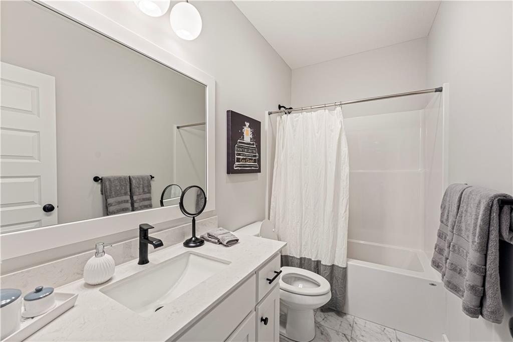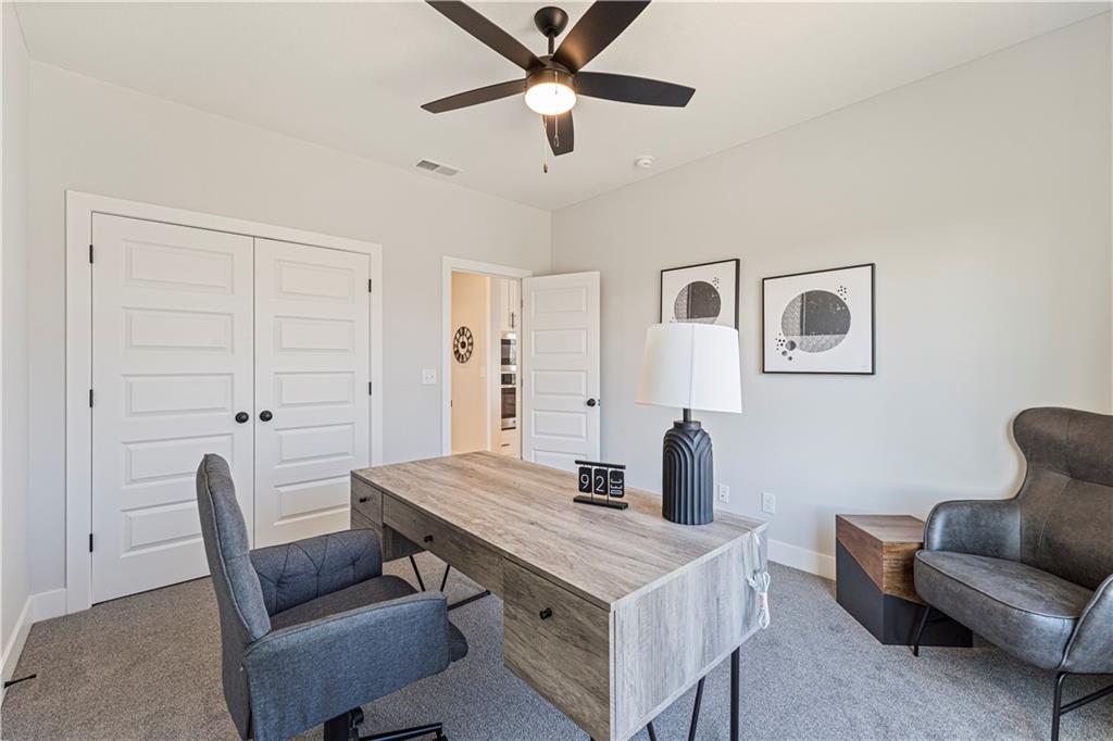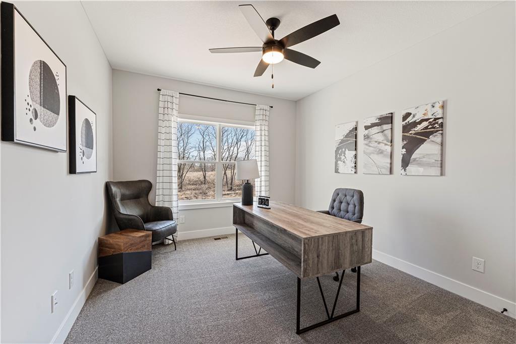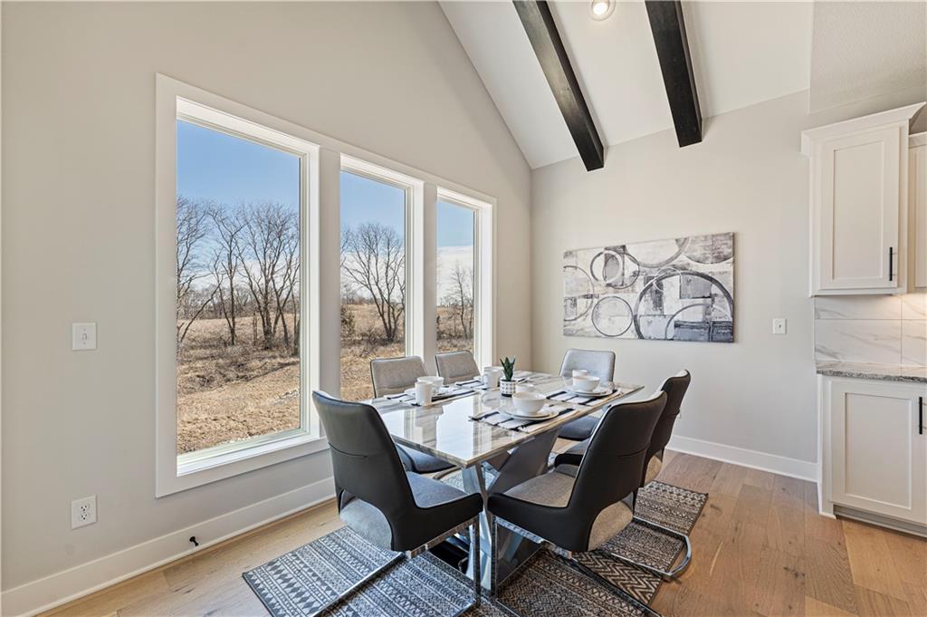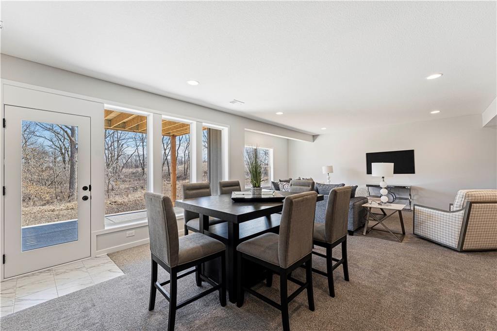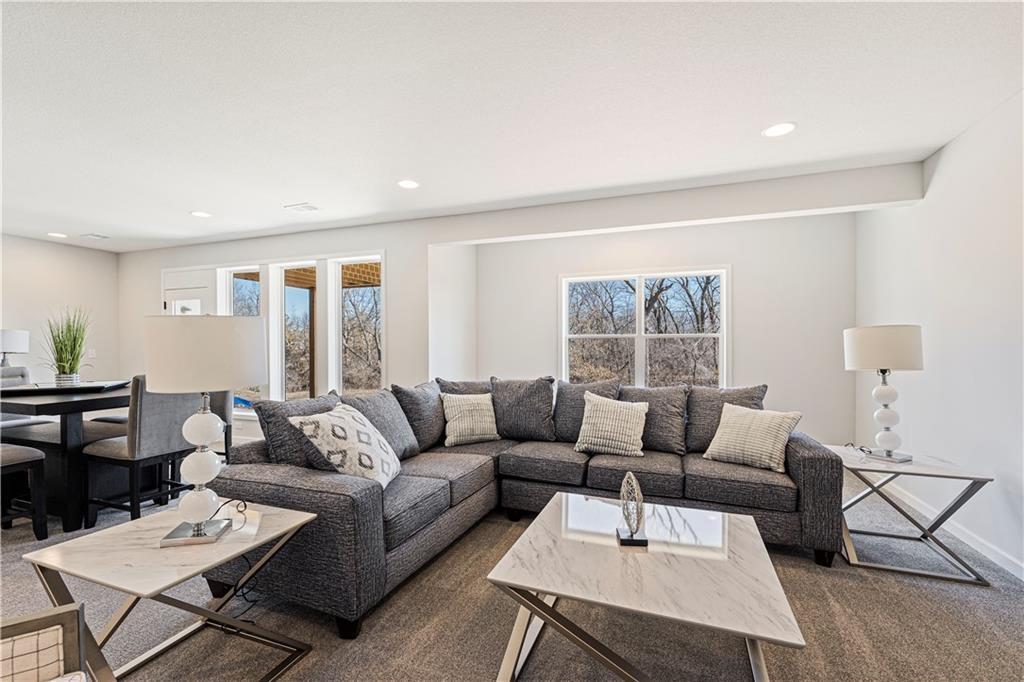 Welcome to the Timberland Reverse by New Mark Homes, a beautifully designed reverse 1.5-story offering approximately 2,736 square feet of finished living space in the highly desirable Cadence community! This thoughtfully crafted home highlights true main-level living with a light-filled, open layout designed for both everyday comfort and entertaining. The great room, kitchen, and breakfast area flow seamlessly together, creating an inviting central gathering space. The chef’s kitchen features a large island, gas cooktop, quartz surfaces, and abundant custom built cabinetry, while the great room showcases a stunning fireplace and elegant finishes. The main-level primary suite offers a peaceful retreat with a freestanding soaking tub, walk-in closet, and spa-inspired bath. The laundry room, secondary bedroom, full bath, and convenient mudroom with built-in boot bench complete the main level, making daily living effortless and functional. The finished walkout lower level expands the home with a spacious recreation room, custom bar area, two additional bedrooms, and a full bath—perfect for hosting guests or creating flexible living space! Enjoy outdoor living from the covered deck and walkout patio, ideal for relaxing evenings or entertaining! Located in the vibrant Cadence community, residents enjoy neighborhood walking trails, swimming pool, and green space, plus quick access to Platte Purchase Park! Situated within the Staley High School attendance area, this home offers an exceptional Northland lifestyle! Home is Under Construction at this time with an estimated completion date of Late July/Early August. Taxes & sqft estimated. Simulated photos of a previous model. Some selections & details may vary from this actual home. Home is pre-sheetrock stage as of 3/16/2026.
