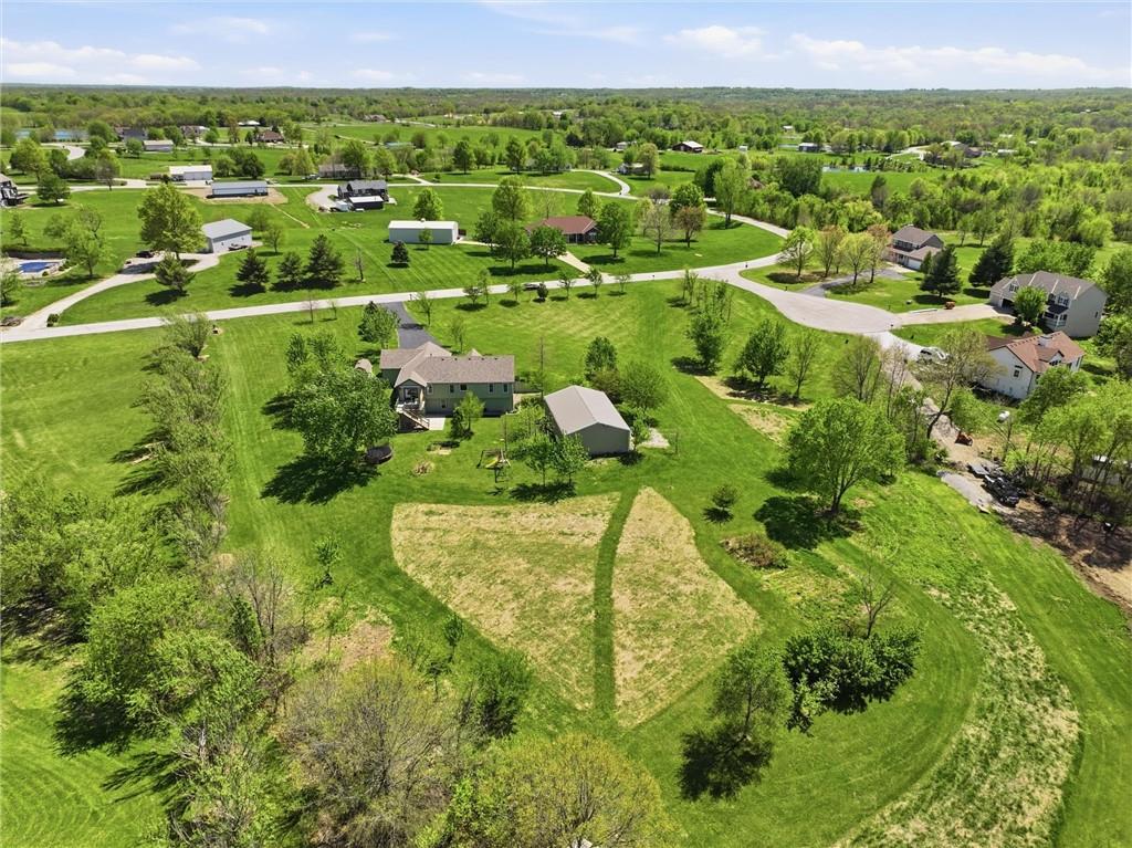 Welcome to your private retreat w WORKSHOP & shed on 3.68 acres—where modern efficiency meets peaceful, nature-filled living. This immaculately maintained ranch home offers 5 bedrooms and 3 full baths, with 3 bedrooms on the main level and 2 additional bedrooms downstairs—perfect for flexible living or multi-generational needs. The home features two spacious living areas and a partially open floor plan with a cozy fireplace, creating an inviting space for both everyday living and entertaining. The home is ALL electric and equipped with a highly efficient Bosch geothermal HVAC system, delivering impressively low utility costs—often less than a townhome. Major updates include a new roof (2019), gutters and flashing, fresh exterior paint (2020), beautifully refinished hardwood floors, new appliances (November), main lvl popcorn ceiling removal (2023), and fresh interior paint throughout. The property also features an impressive 30x48 outbuilding built by QSI, complete with 200-amp service, concrete floors, 8’ doors, and 10’ eaves—ideal for a workshop, storage, or hobby space. Step outside and experience what truly sets this property apart. Thoughtfully & organically maintained, the land has been cared for without harsh chemicals—supporting healthy soil, pollinators, & wildlife. The grounds are rich with established plantings and mature trees, including 8 apple trees, approximately 20 producing blueberry bushes, pear, plum, pecan, walnut, oak, multiple maple varieties, redbud, pine, and more. You’ll also find established asparagus, garlic, bunch onions, mint, lemon mint, & strawberry patches. Nature lovers will appreciate the abundant wildlife—frequent sightings of birds, rabbits, foxes, squirrels, tree frogs, & more—along with a partial creek area on the north side complete with a charming treehouse. This one-of-a-kind property offers space, sustainability, and serenity—paired with modern updates, efficiency, and a layout designed for comfortable living.